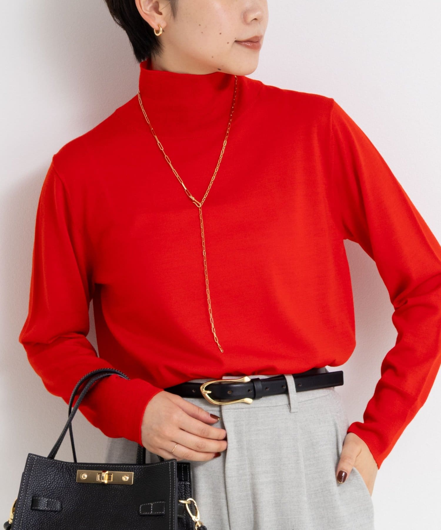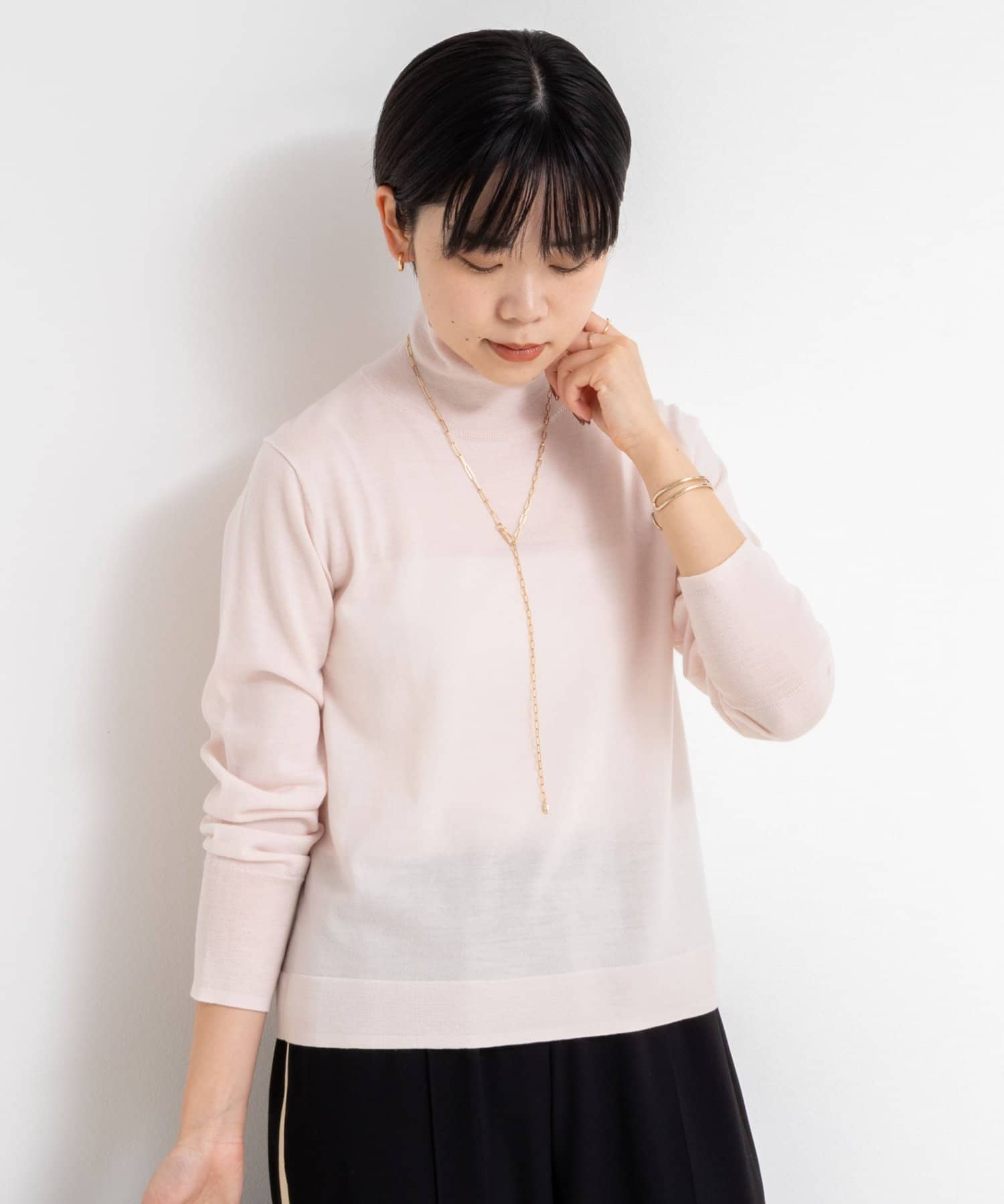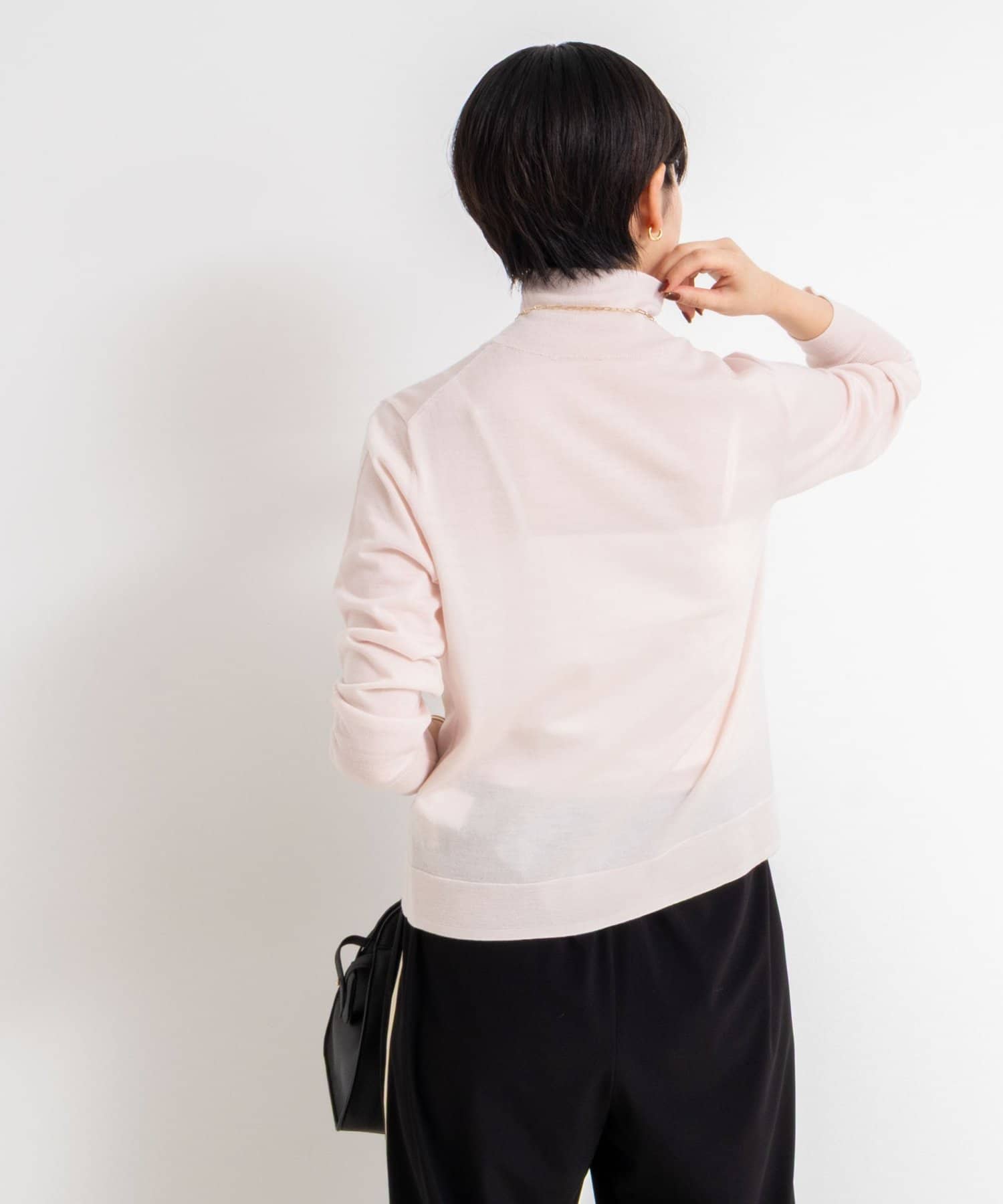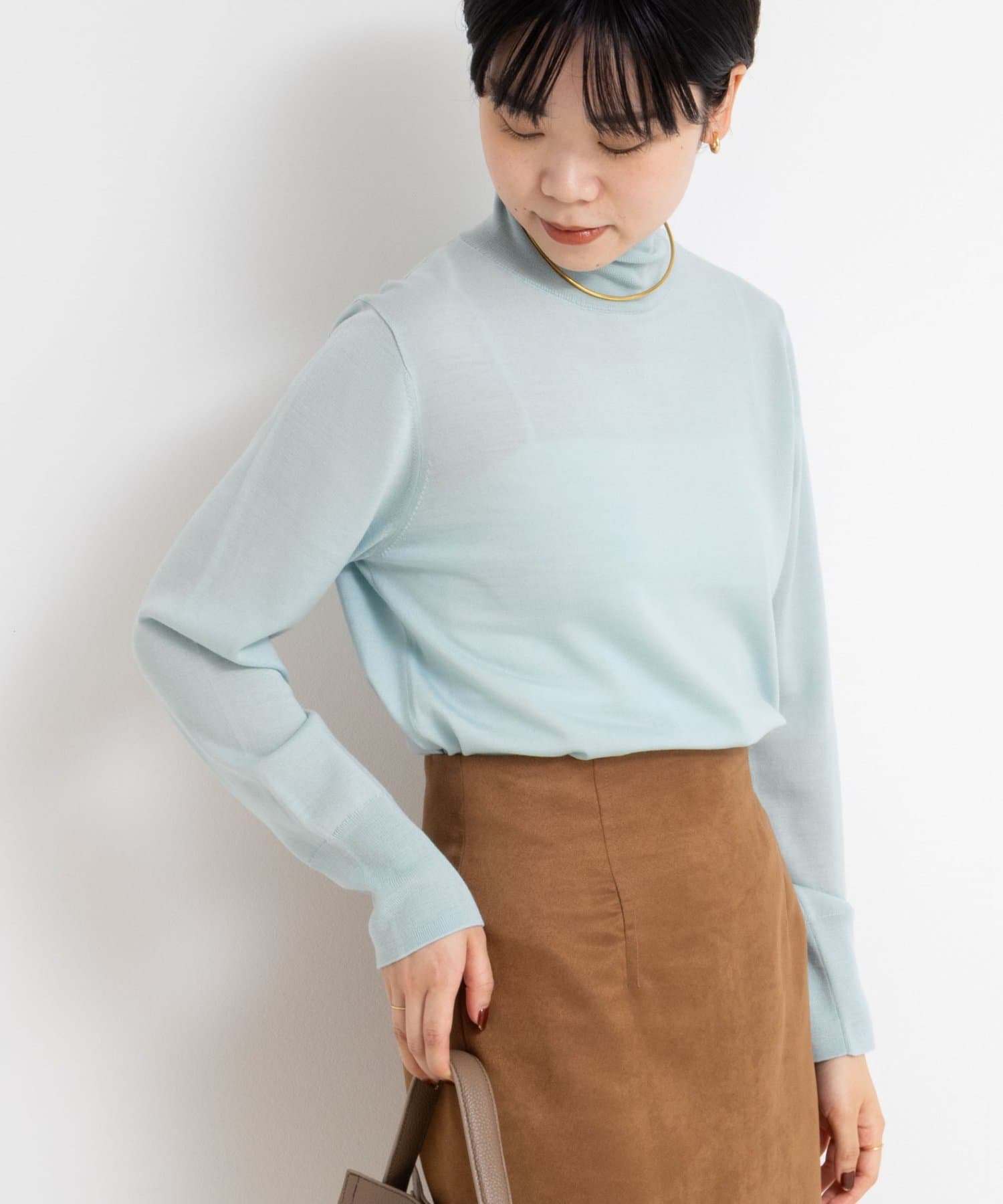 ・18Gで編んだ薄くてサラッとしたシンプルハイネック一枚着ニット