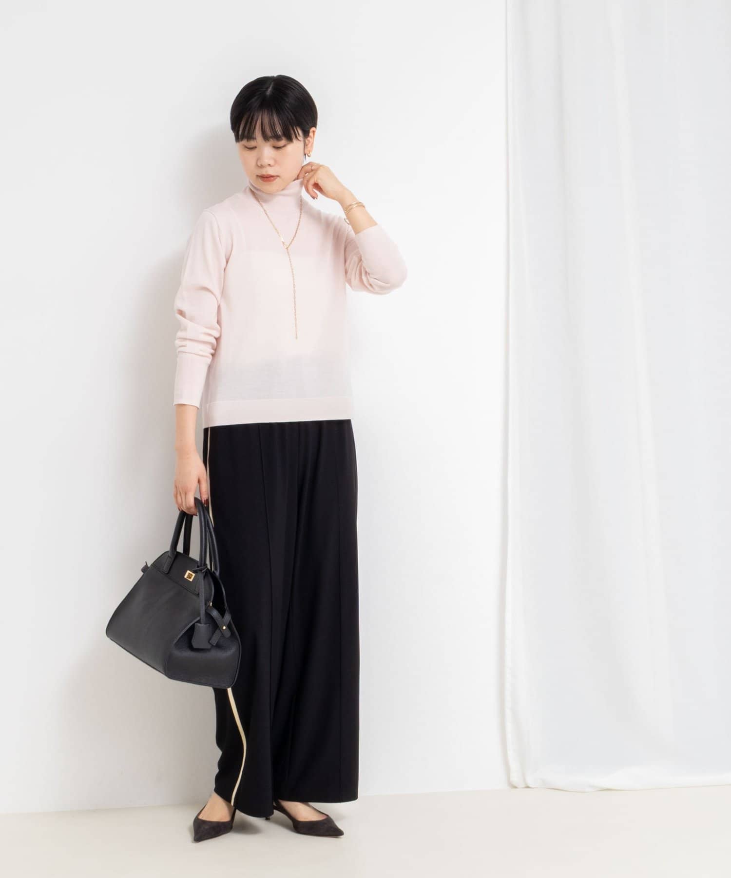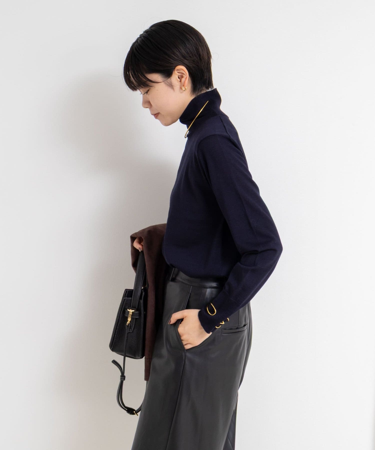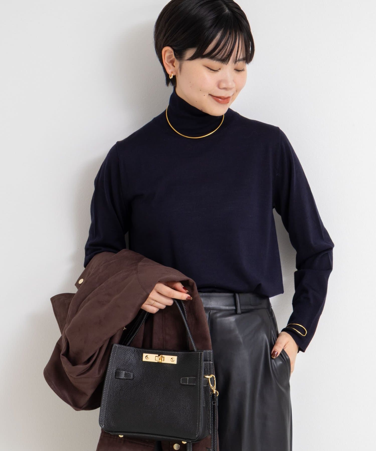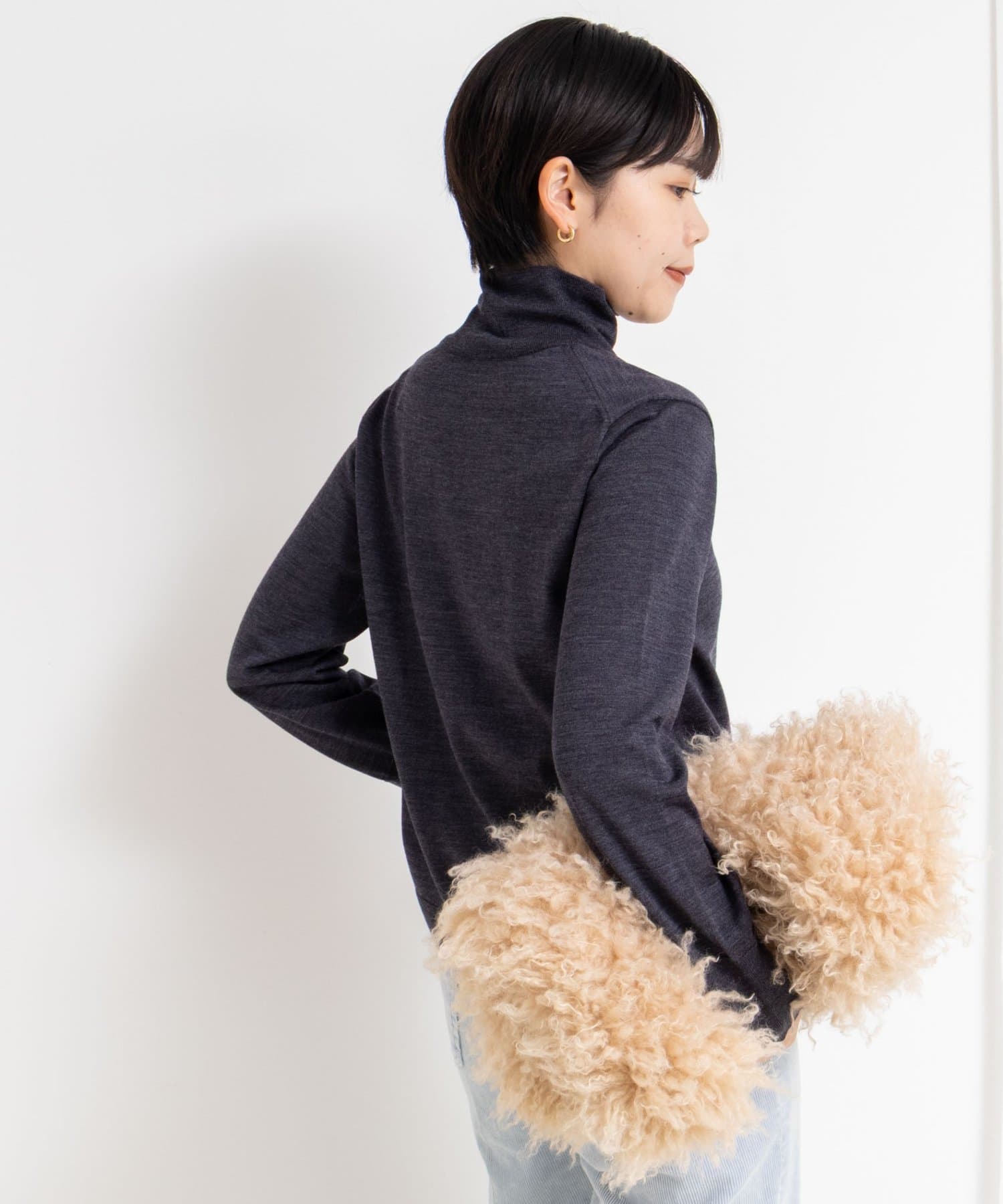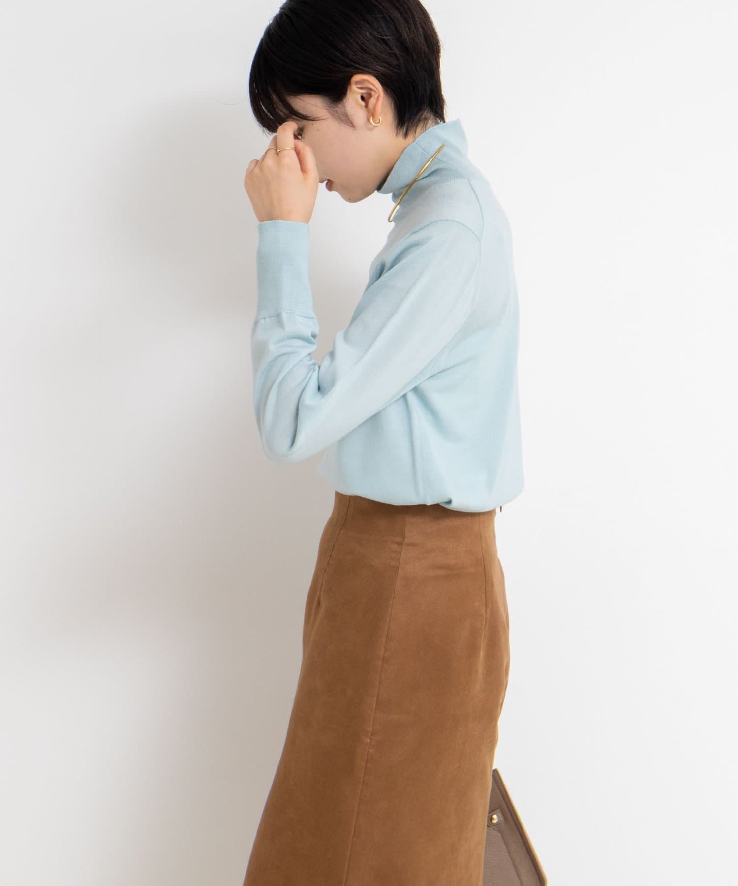 ・18Gで編んだ薄くてサラッとしたシンプルハイネック一枚着ニット