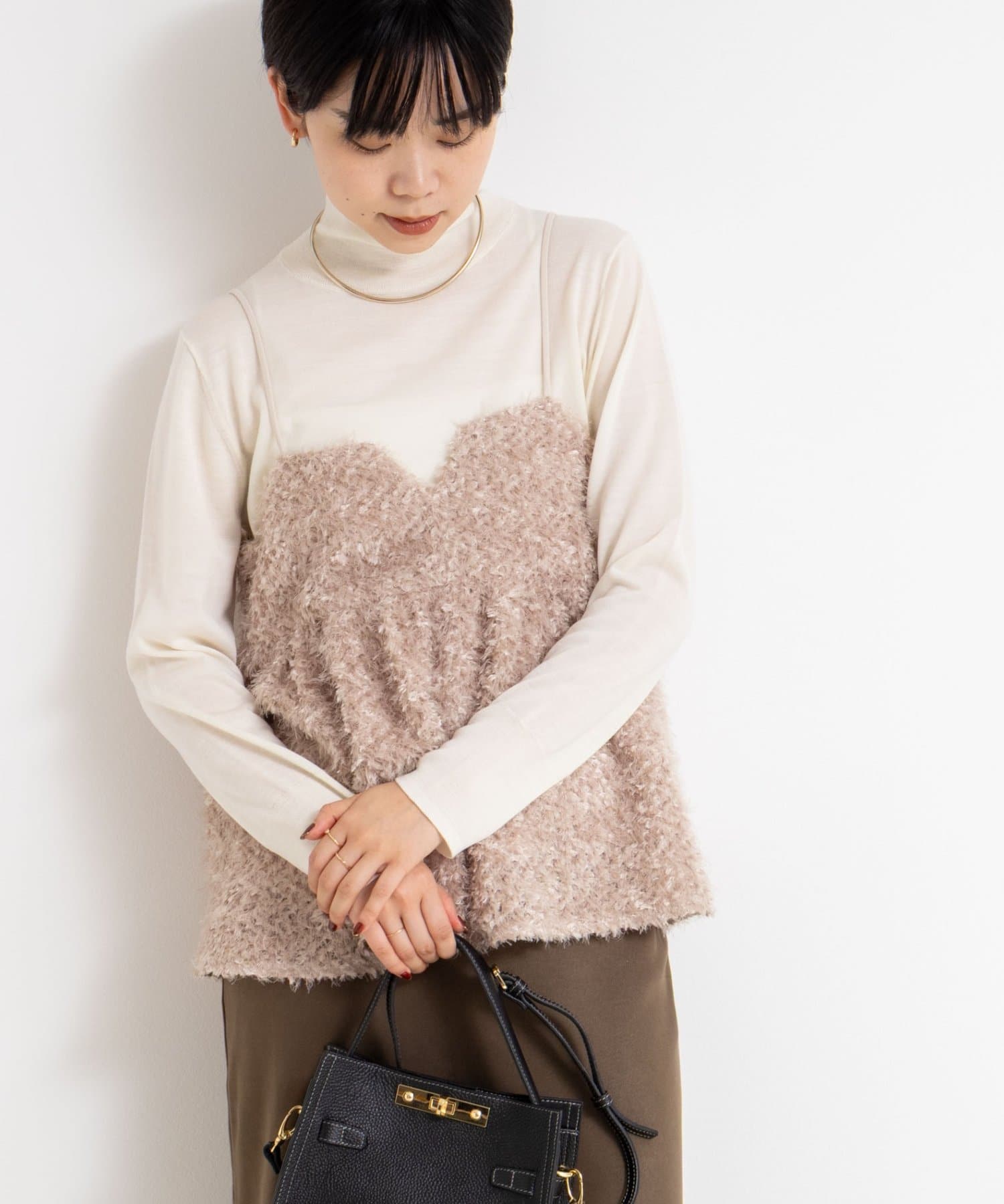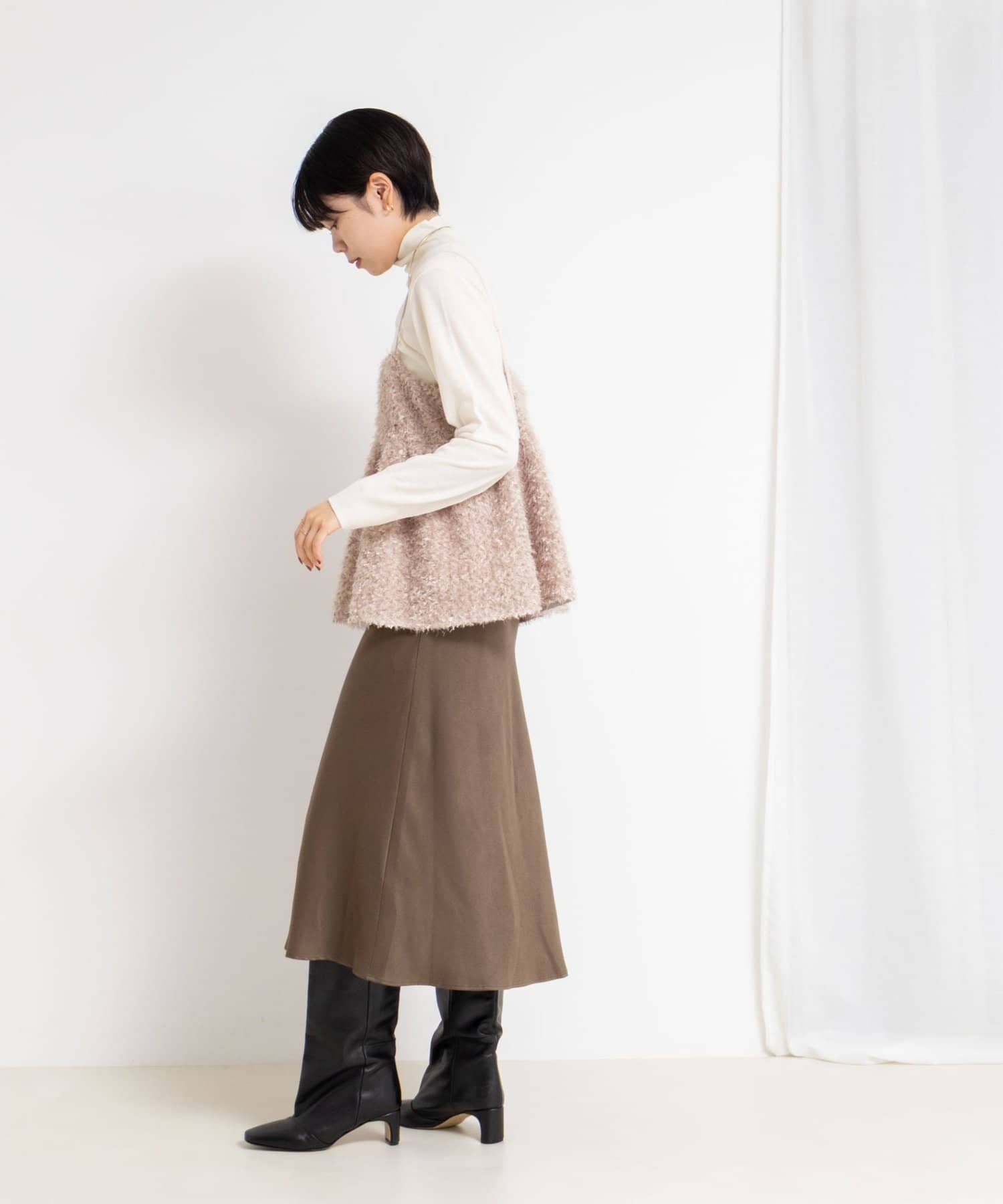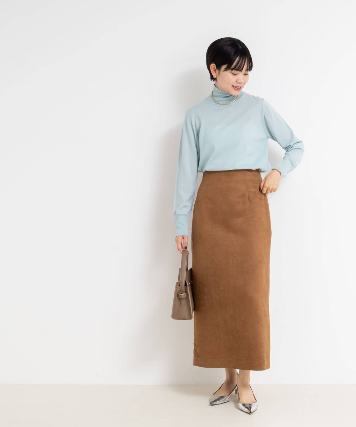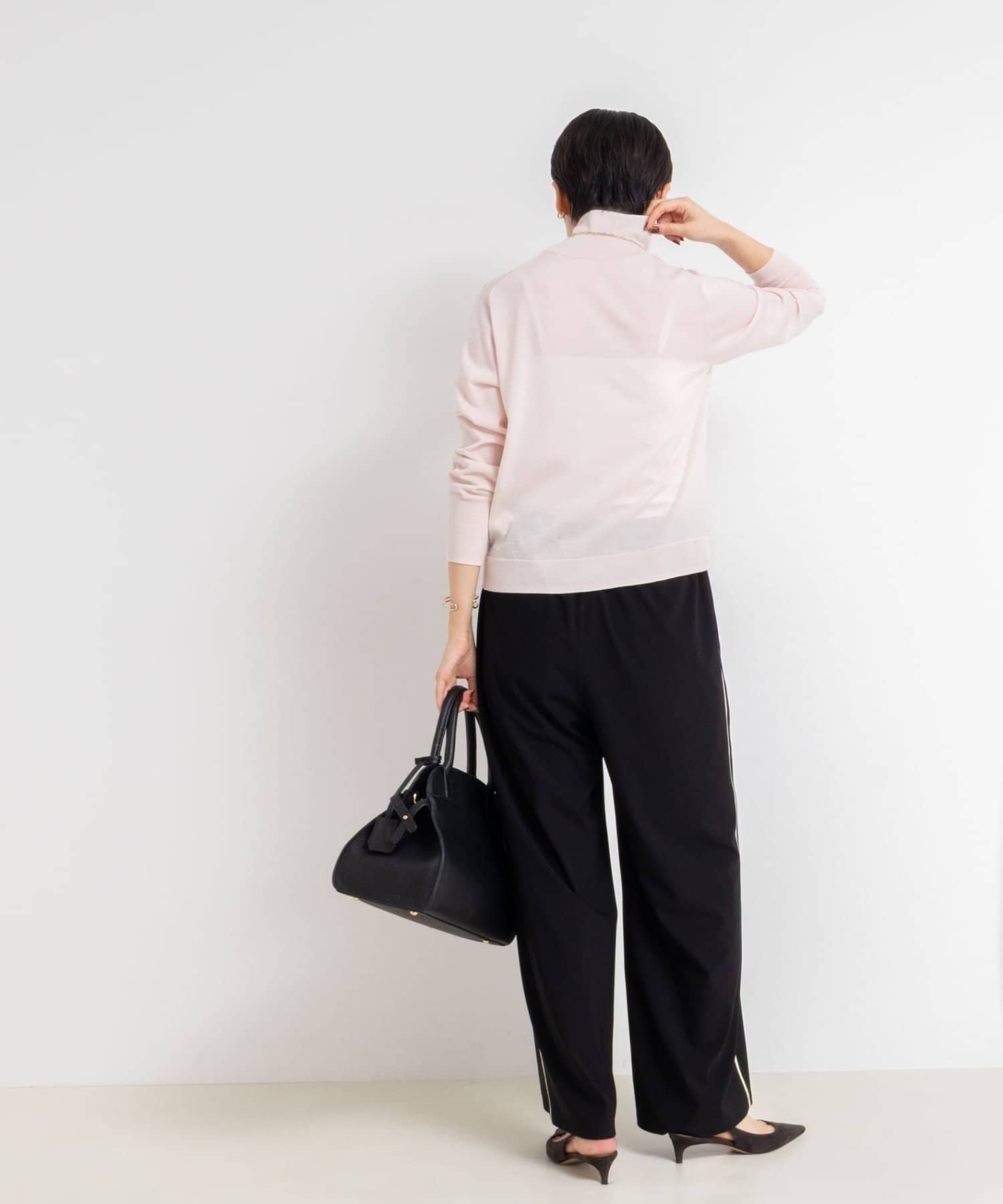 ・18Gで編んだ薄くてサラッとしたシンプルハイネック一枚着ニット