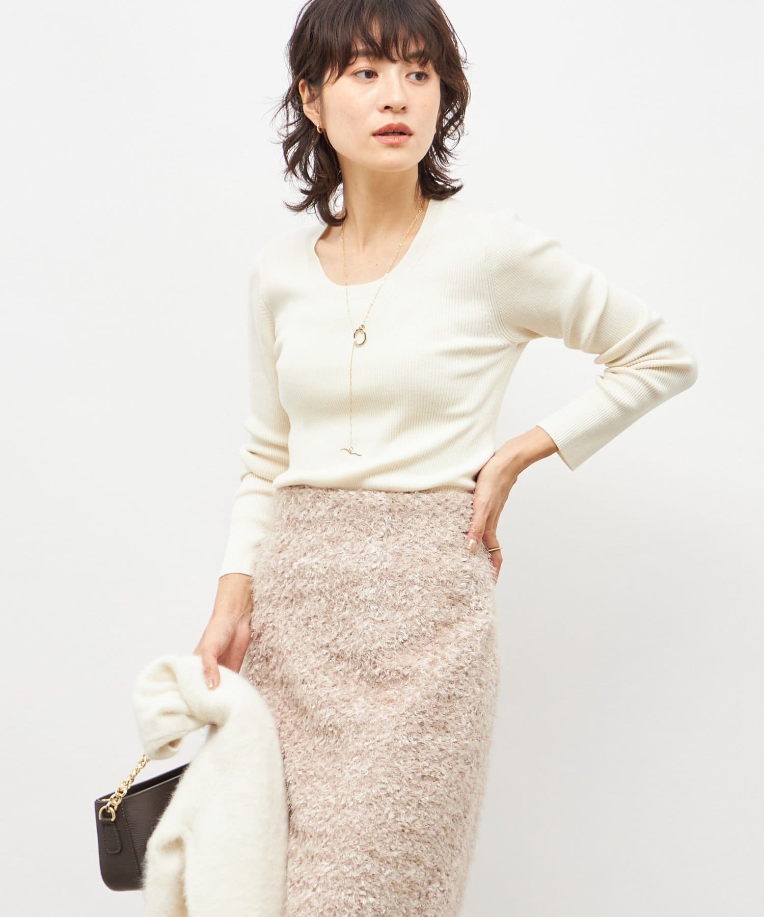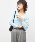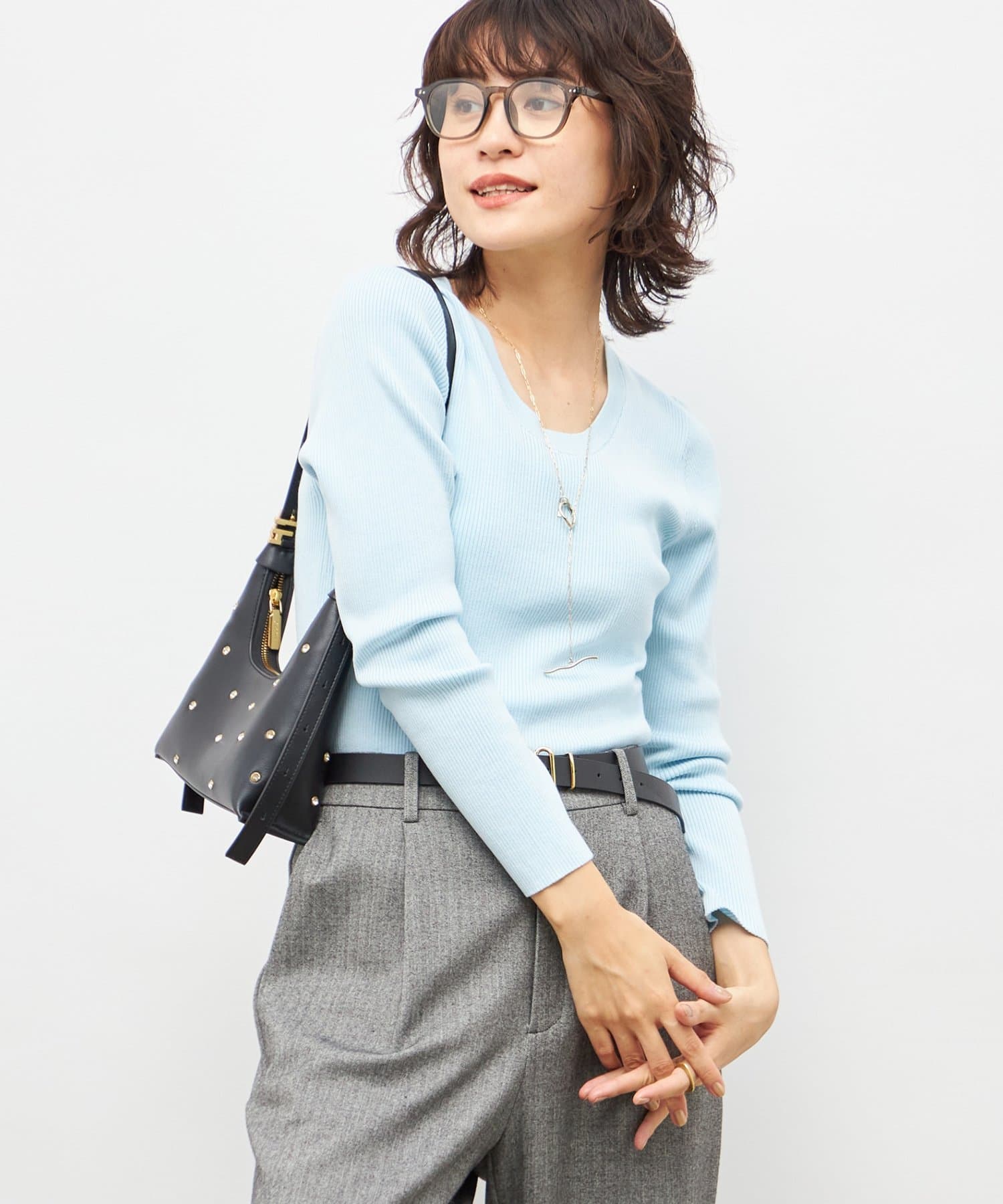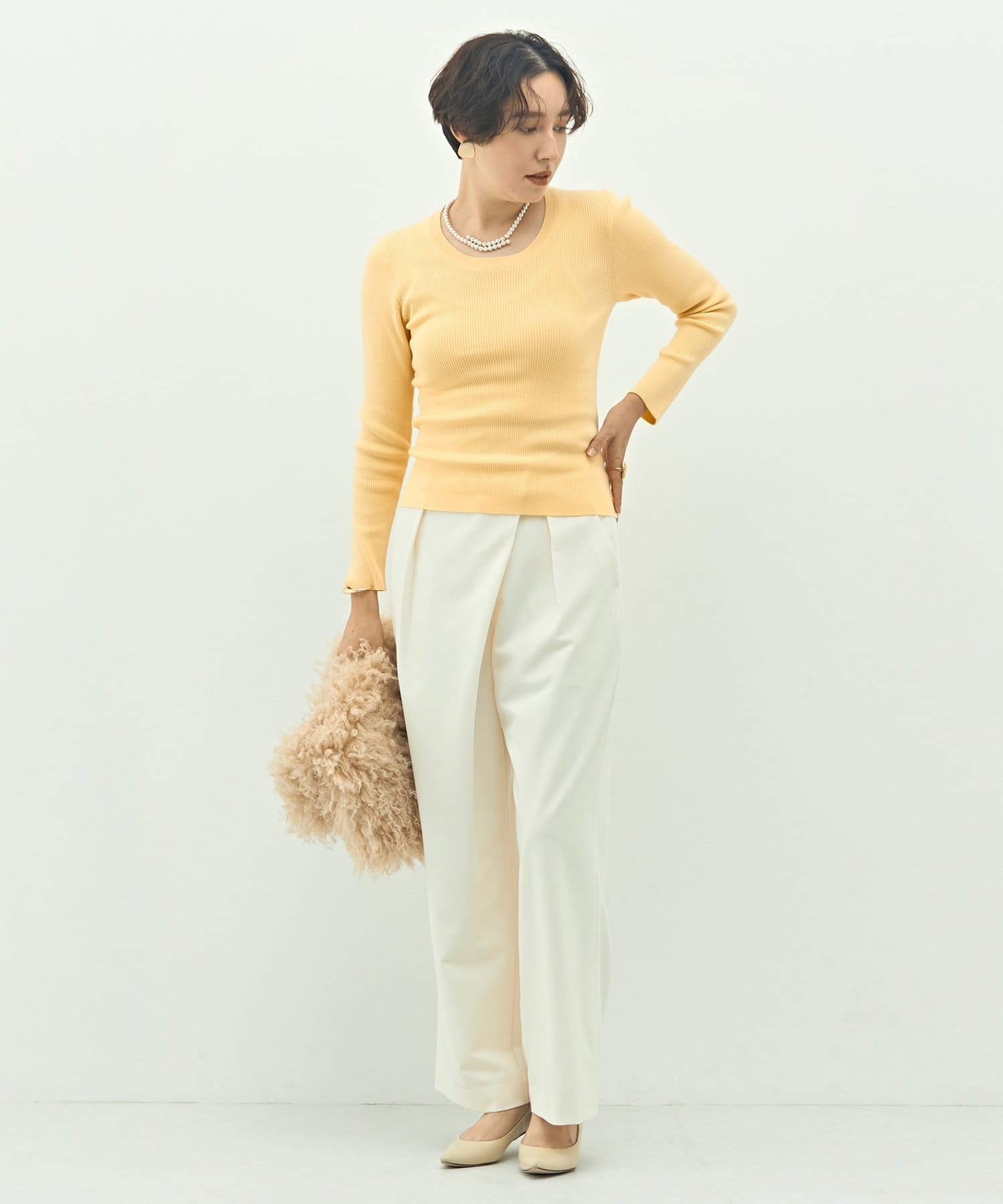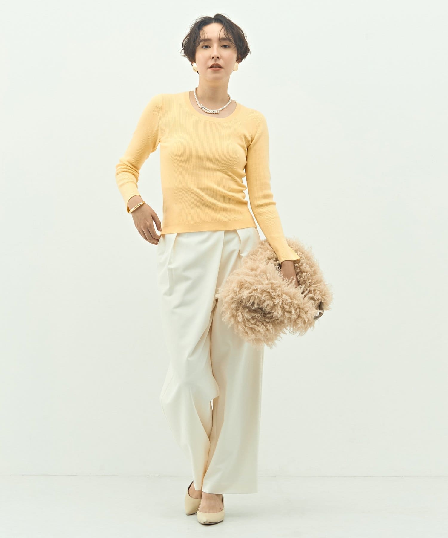 《アンサンブル対応》《手洗い可能》カシミヤ混リブUネックプルオーバー