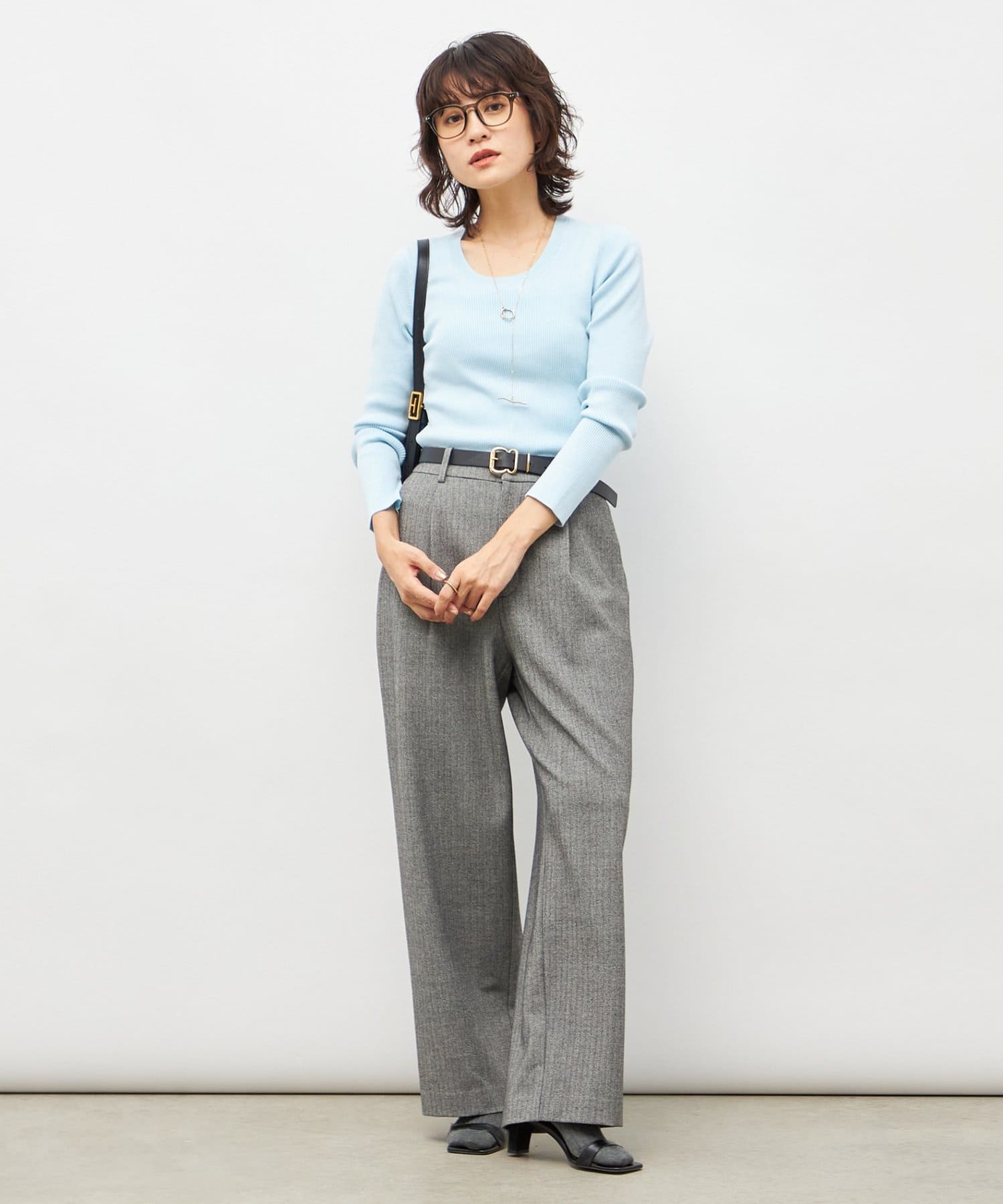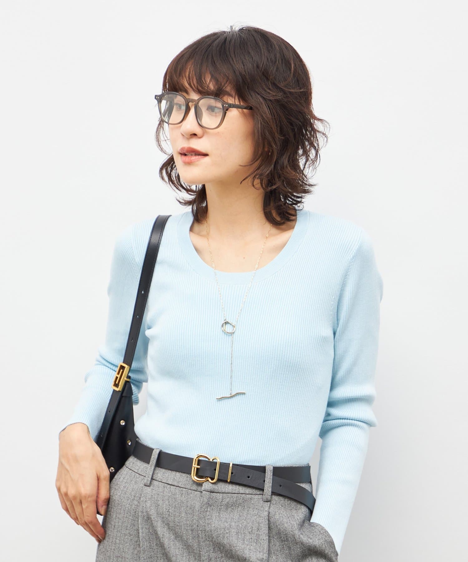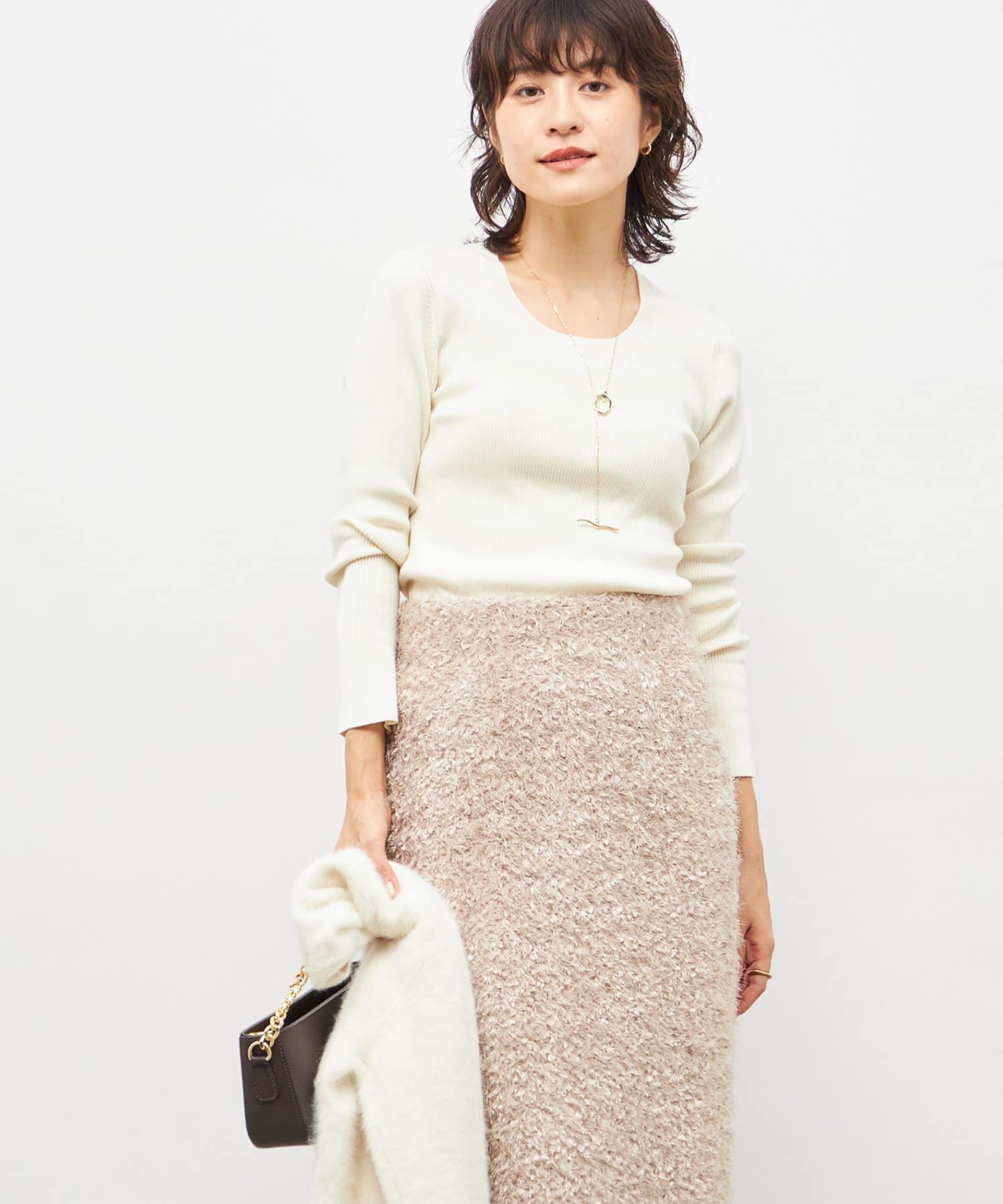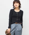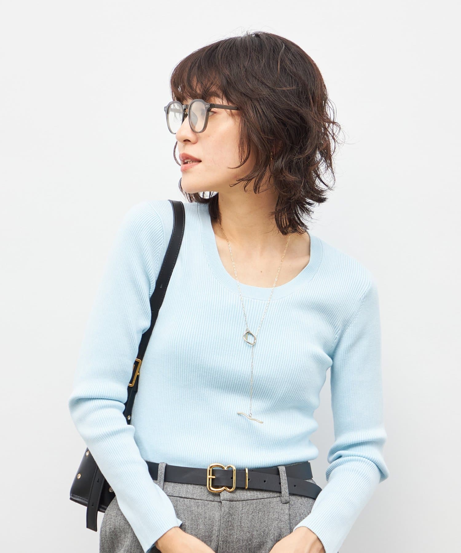 《アンサンブル対応》《手洗い可能》カシミヤ混リブUネックプルオーバー