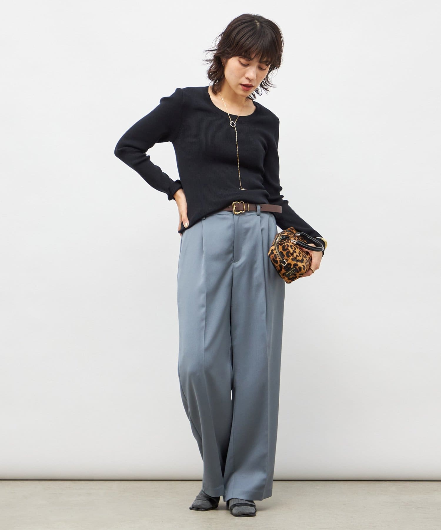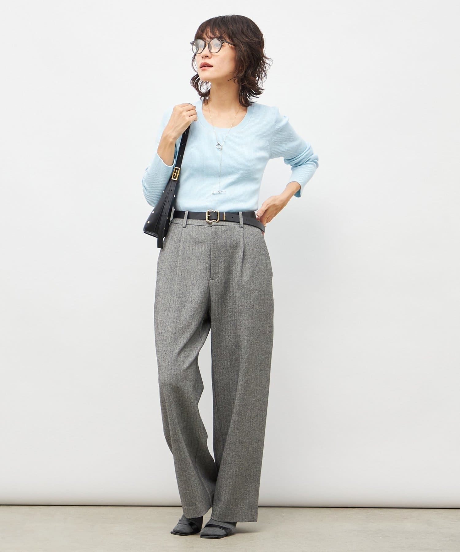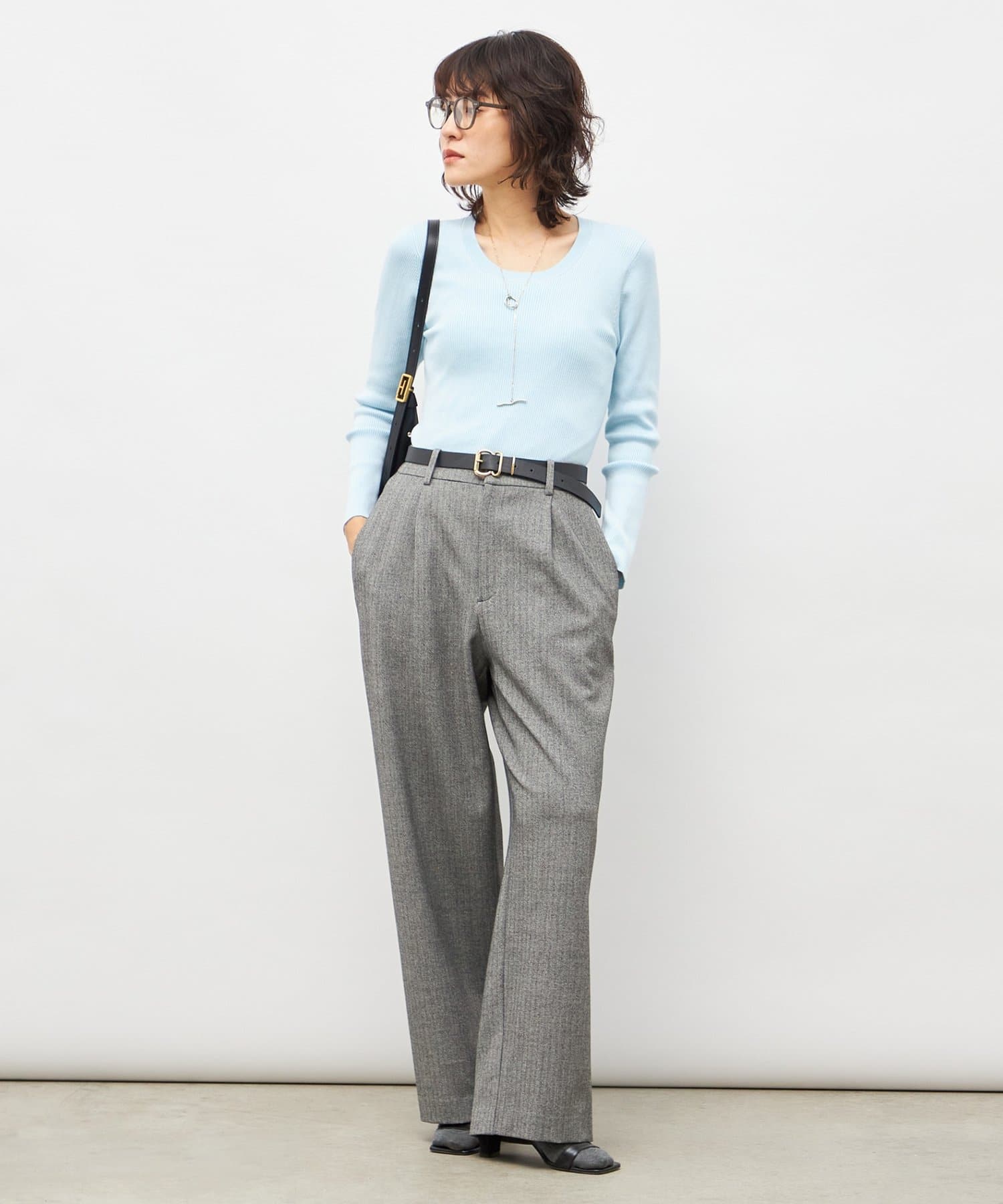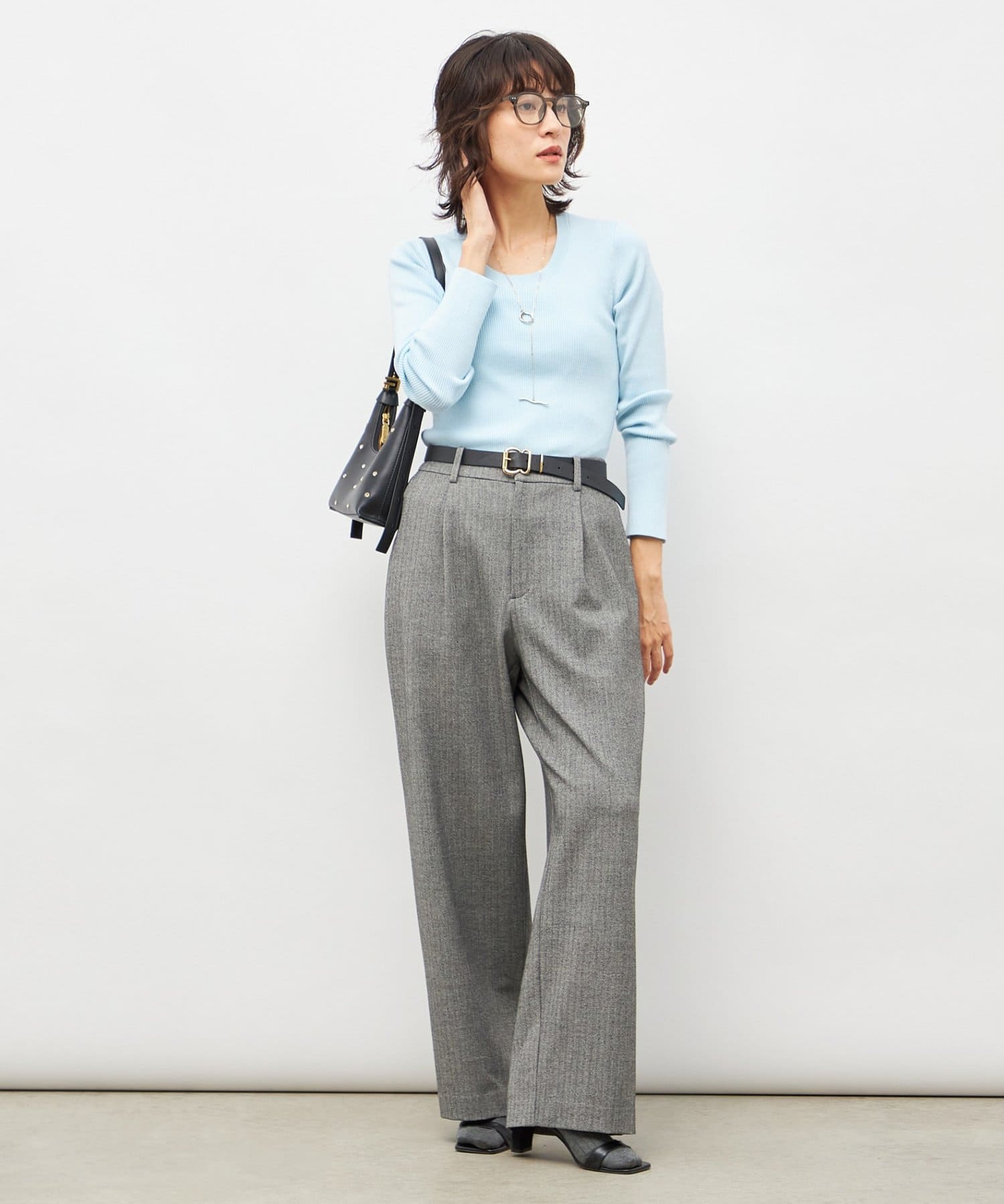 《アンサンブル対応》《手洗い可能》カシミヤ混リブUネックプルオーバー