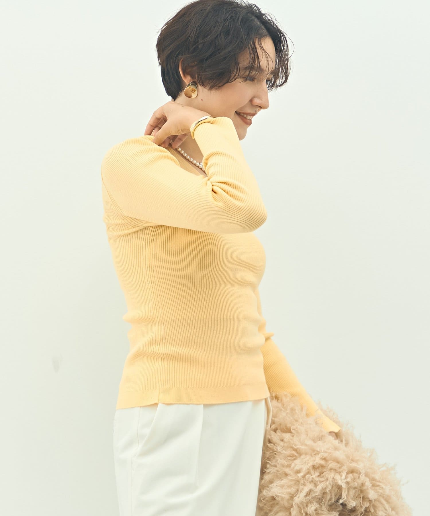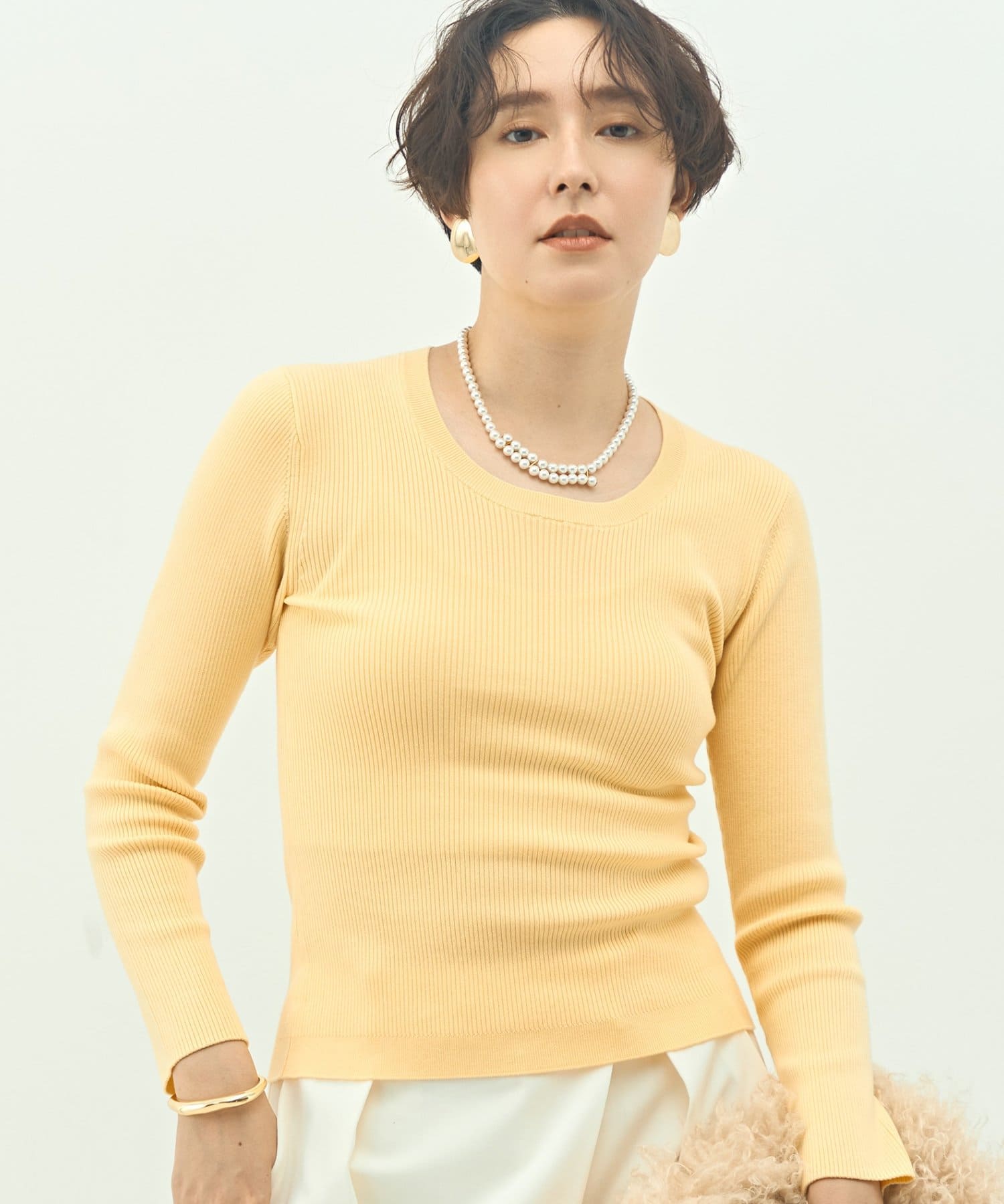 ・衿開きはいつものクルーネックより縦長のUネックにして今までのリブシリーズとは違った印象に
