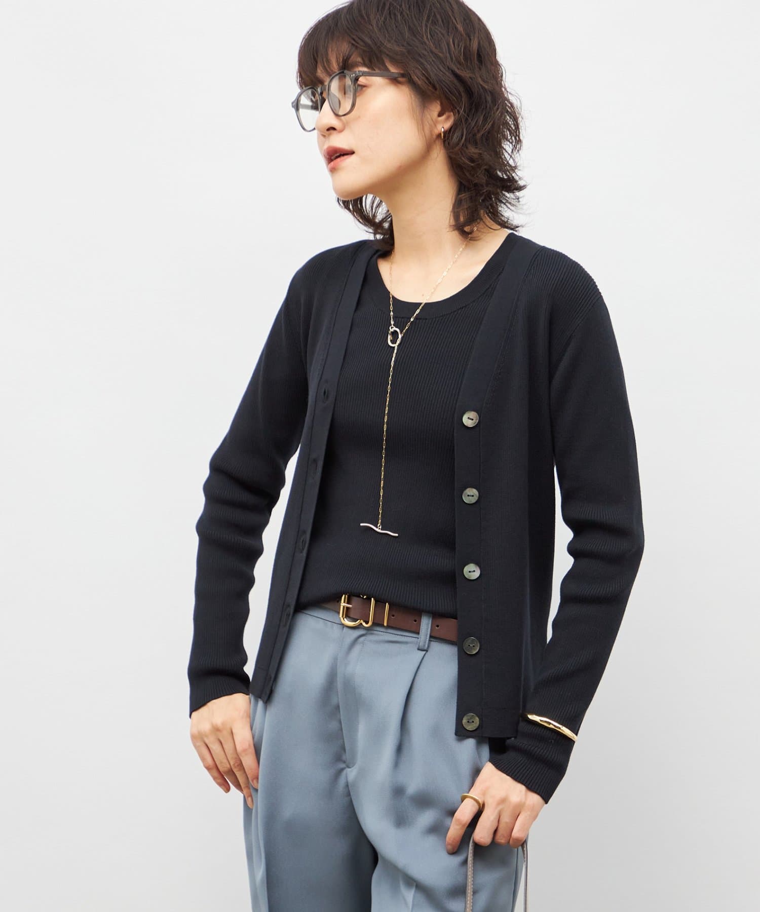 《アンサンブル対応》《手洗い可能》カシミヤ混リブVネックカーディガン
