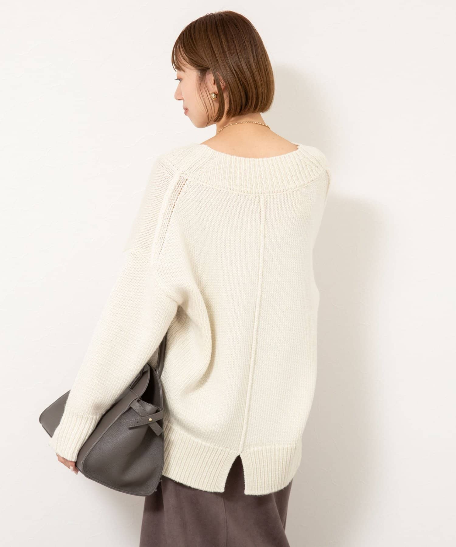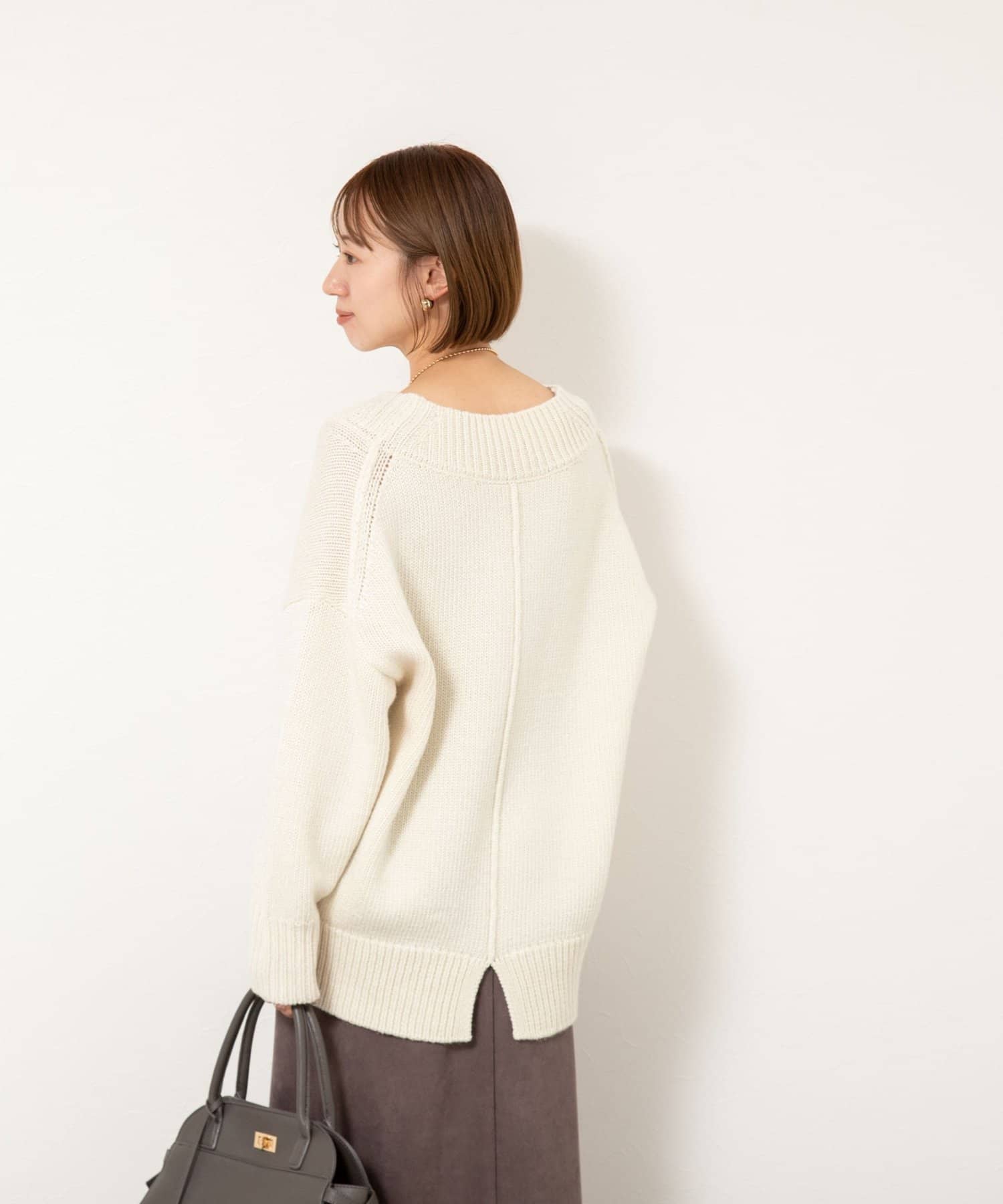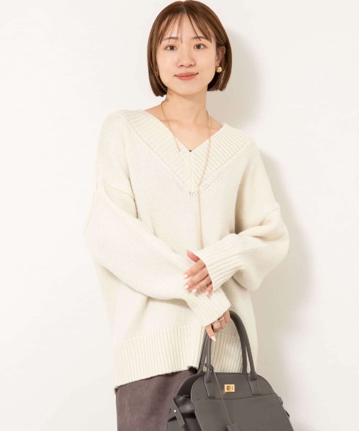 ・カジュアル感、ナチュラル感を抑えたゆったりしたサイズ感のVネックプルオーバーニット