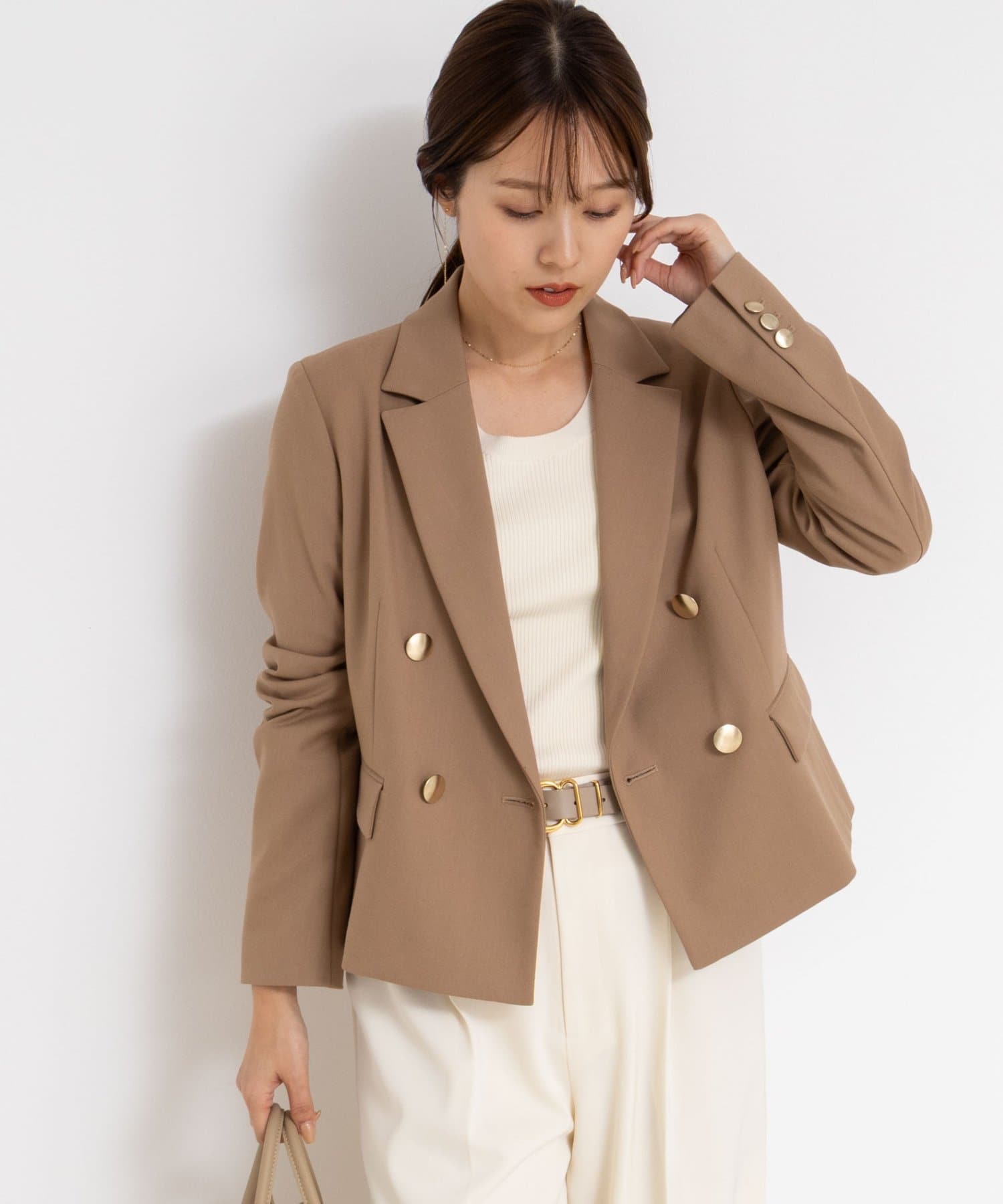 品番 5-0030-6-05-003 素材 キャメル:(表地)ポリエステル74%,レーヨン18%,再生繊維,(セルロース)3%,ウール2%,ポリウレタン2%,アセテート1%,(裏地)ポリエステル100%