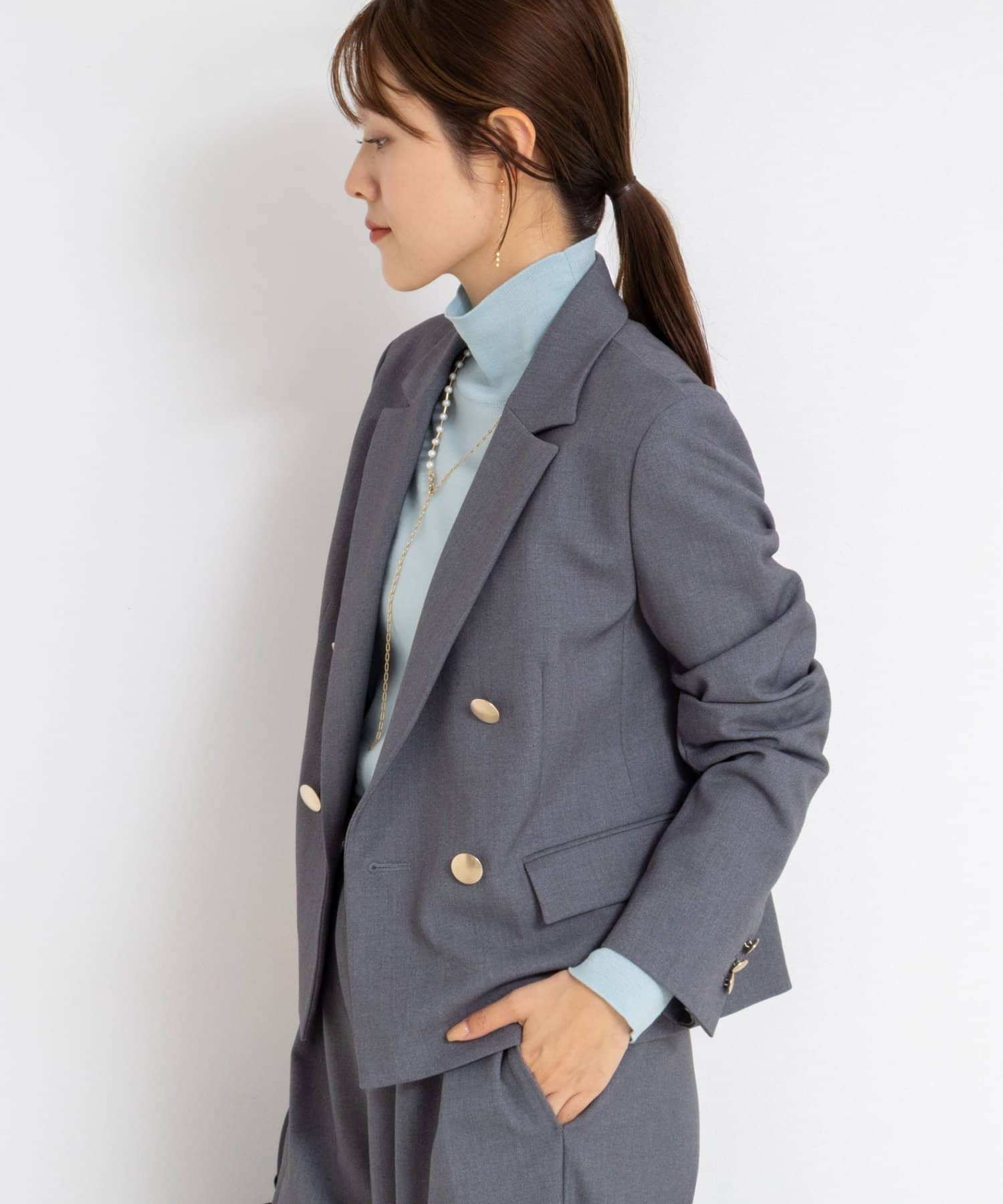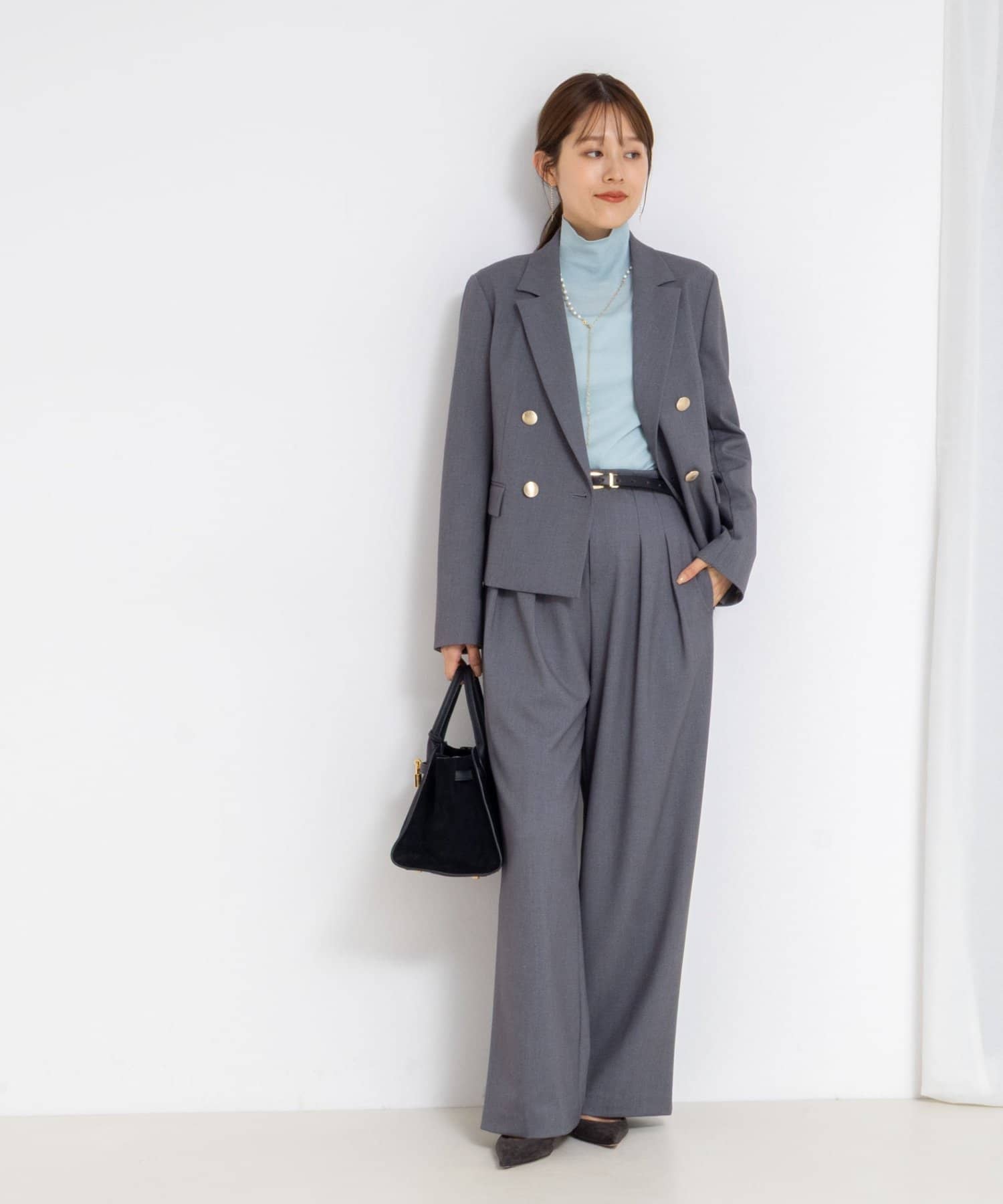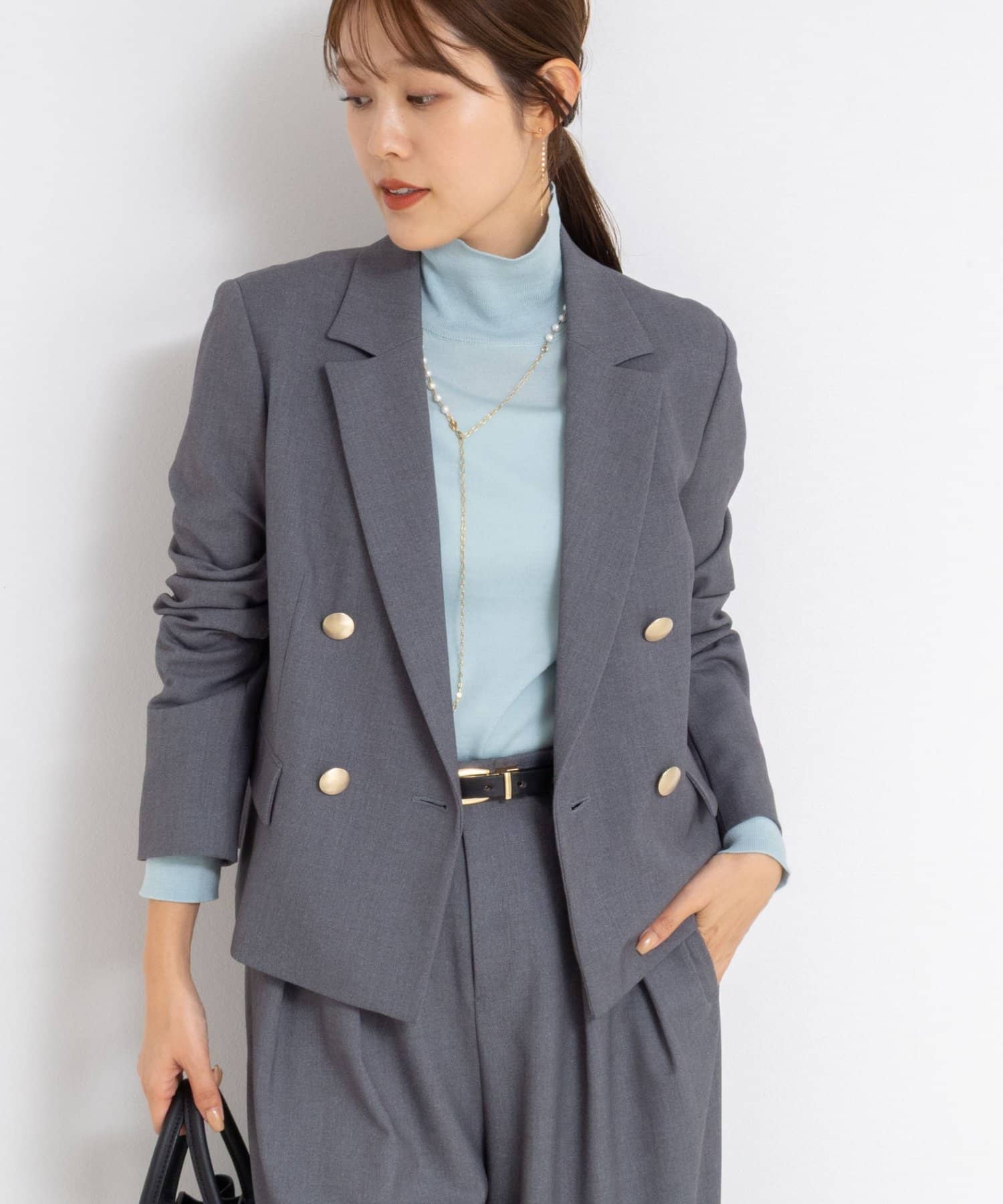 ・ウール混のウォーム感のあるストレッチツイル素材を使用したセットアップ