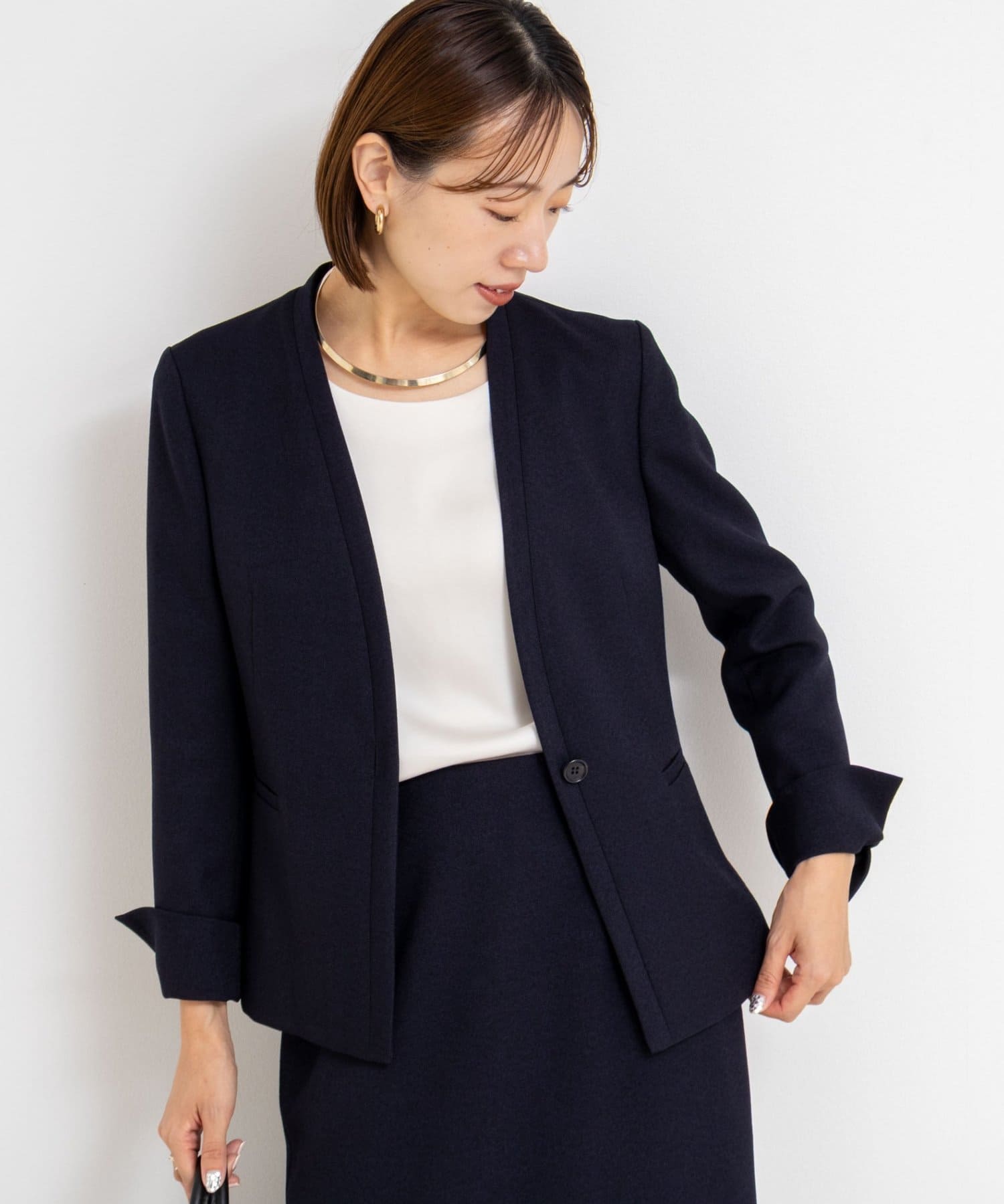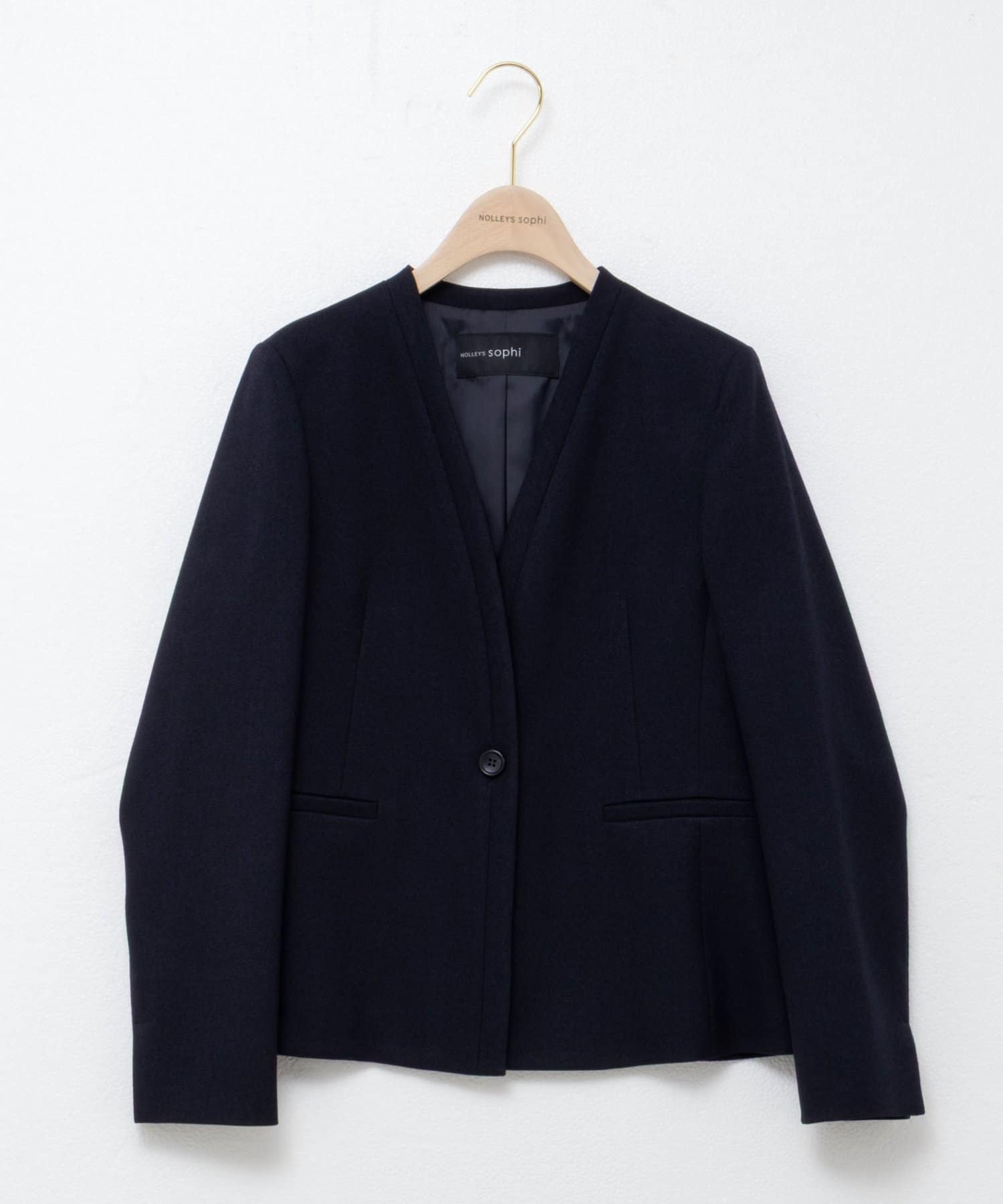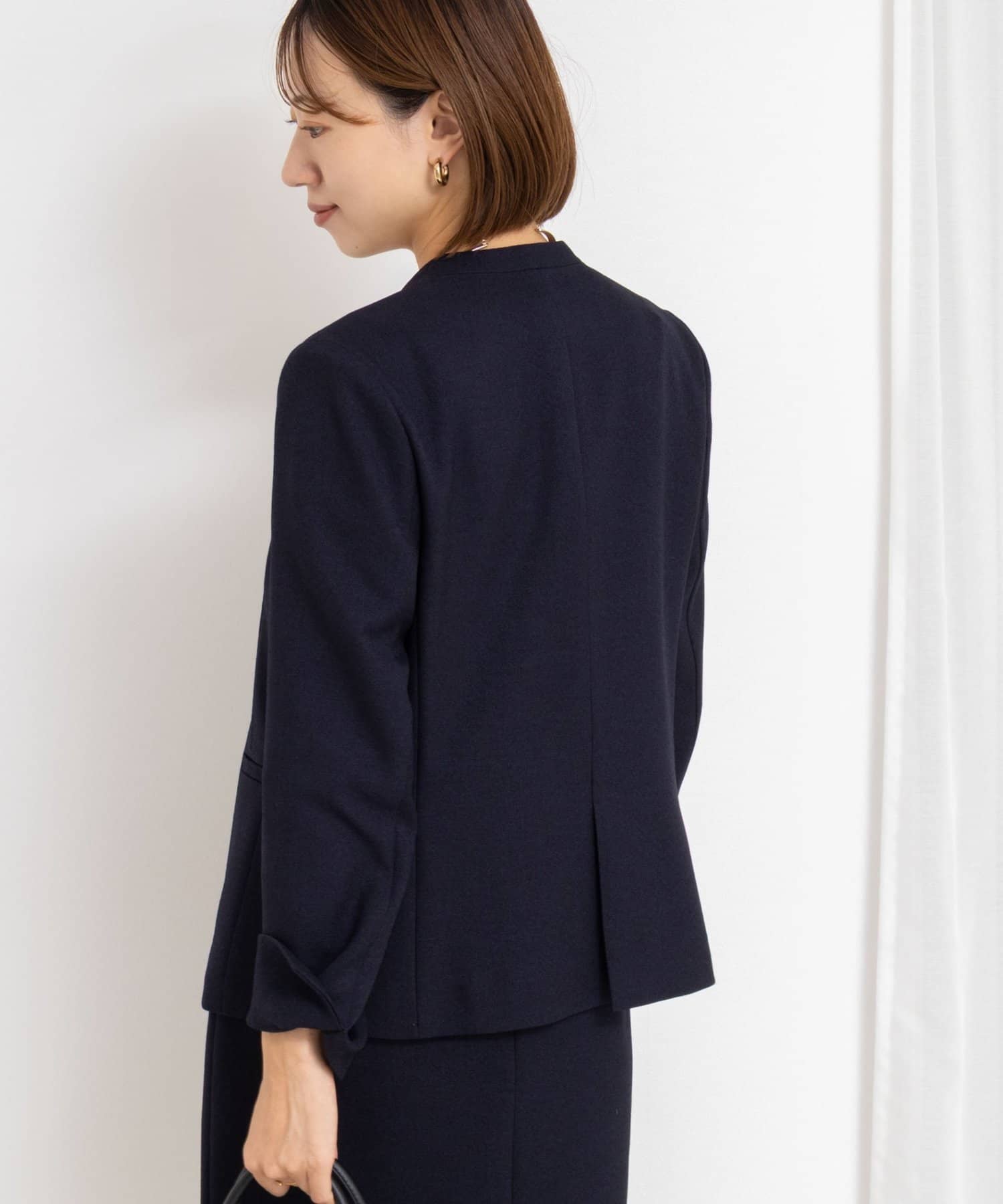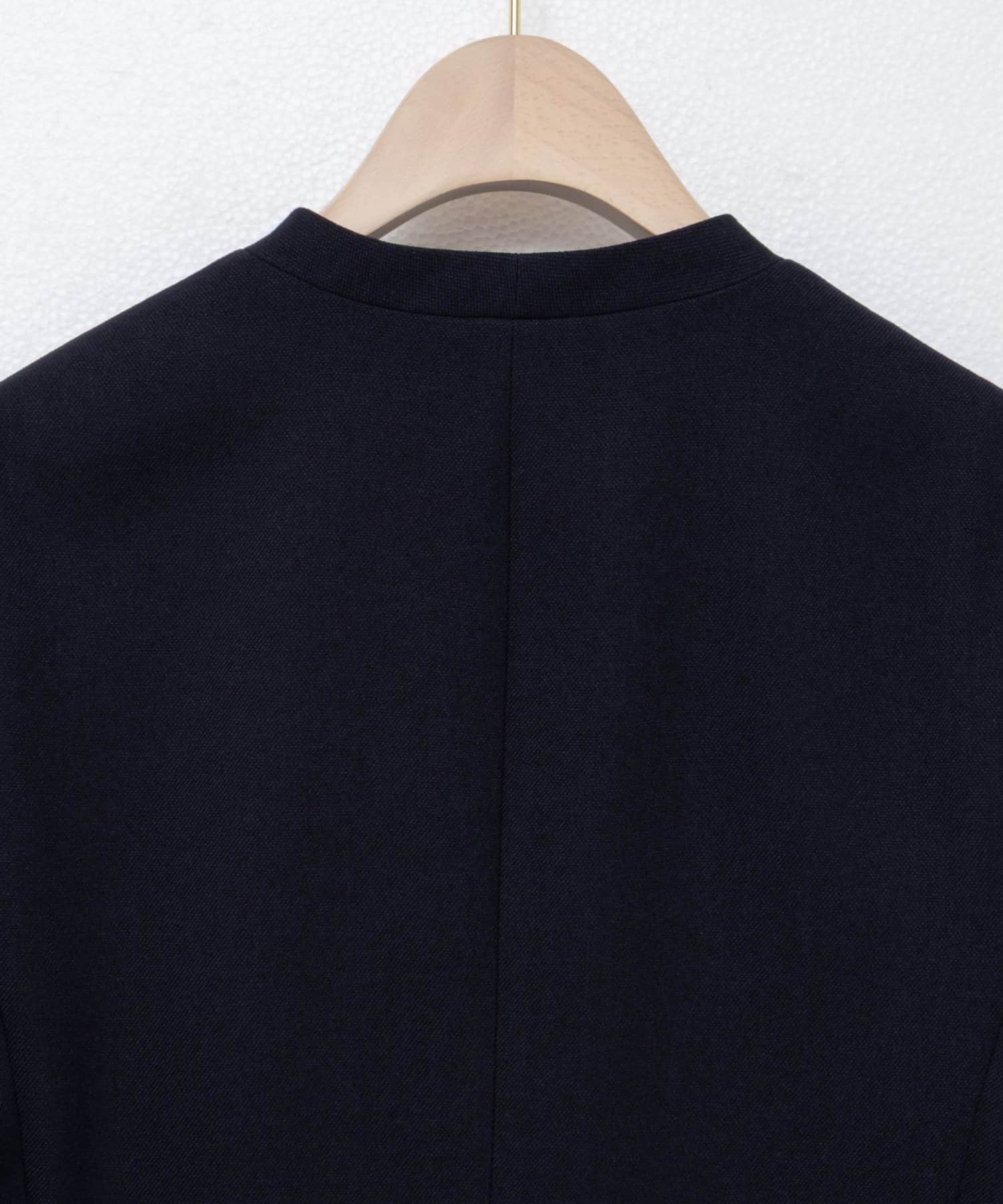 ・合繊素材ながらウールタッチな素材を使用したノーカラージャケット