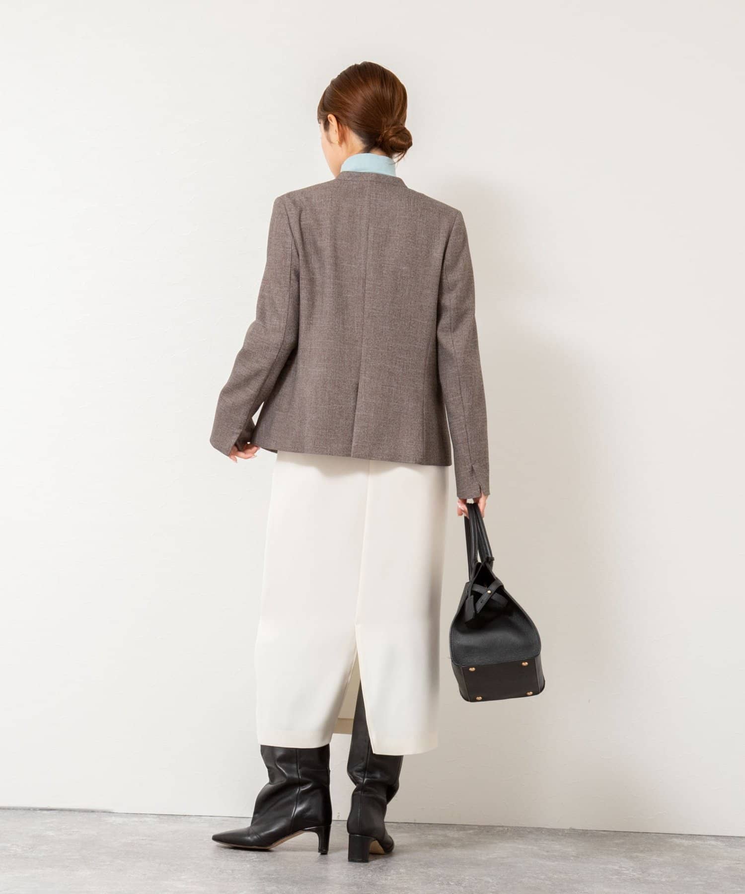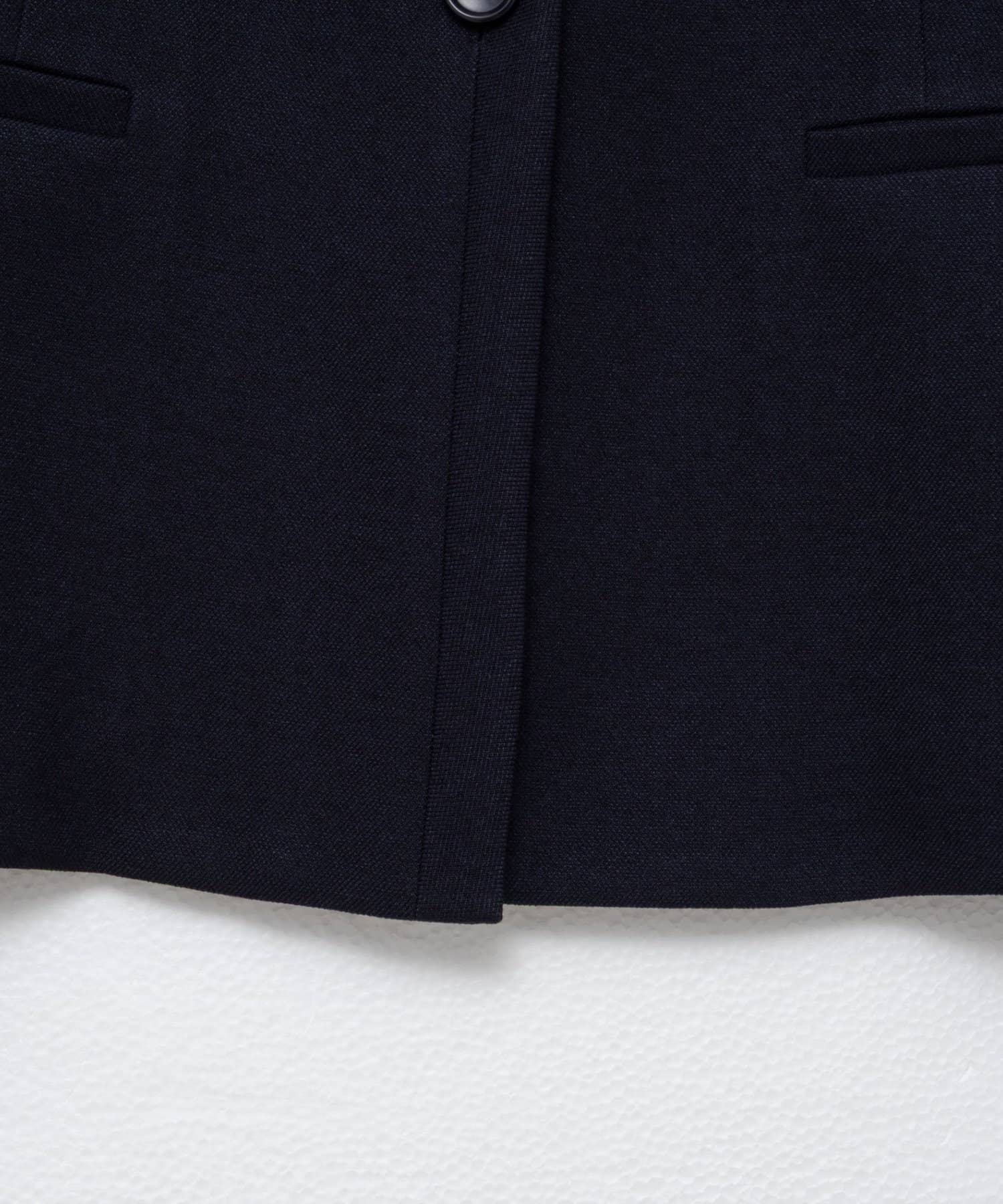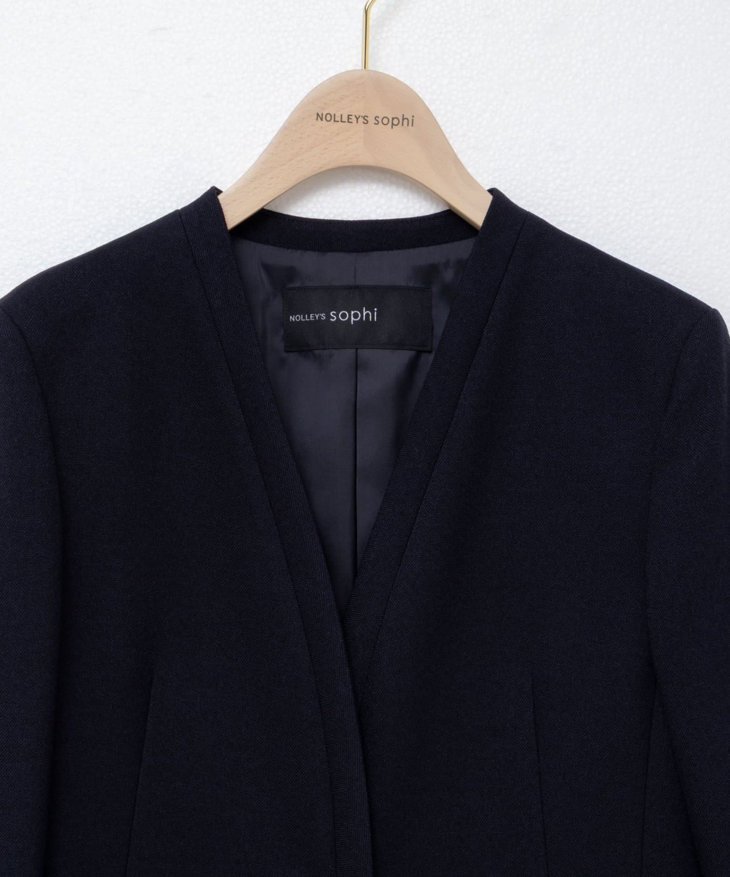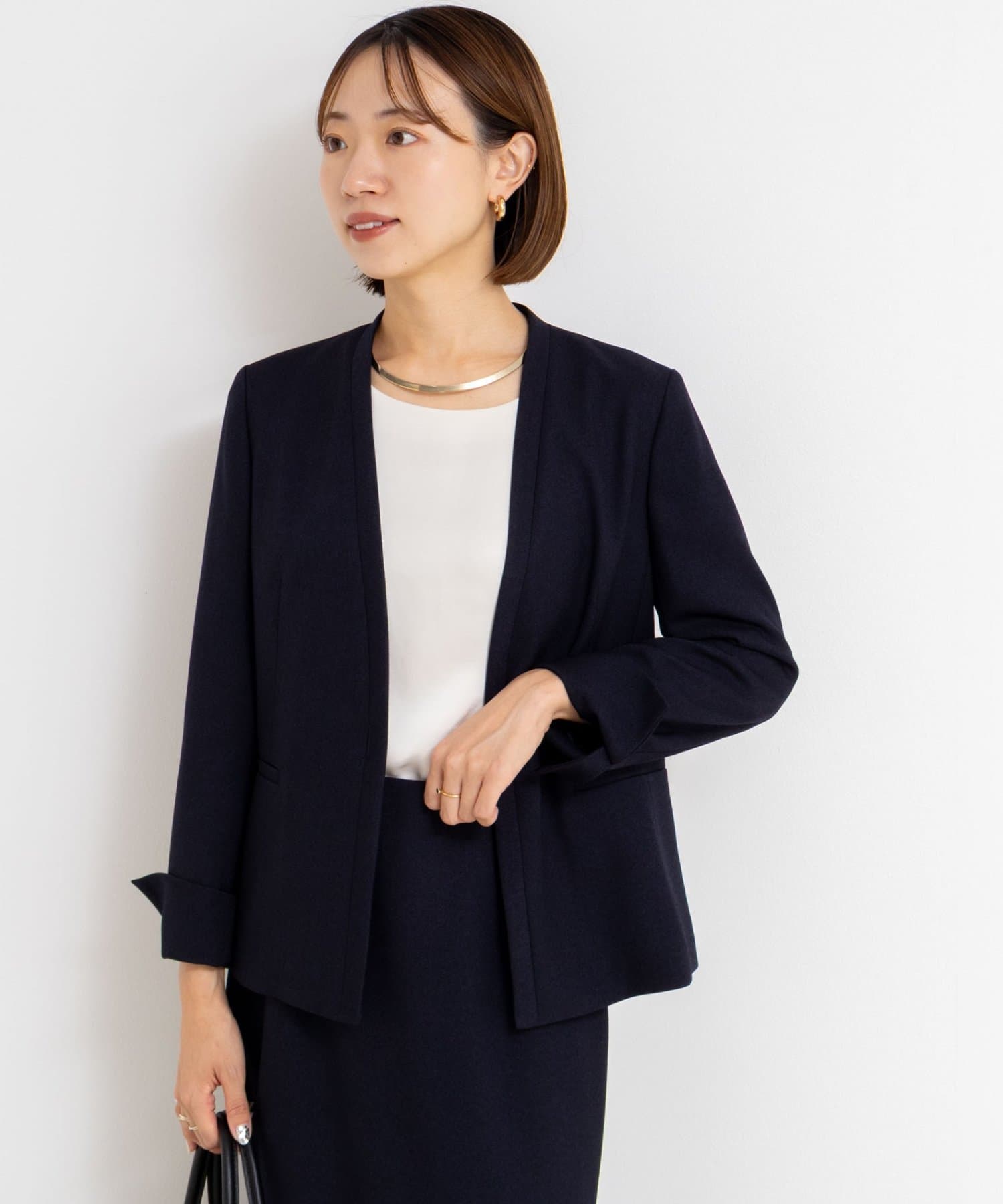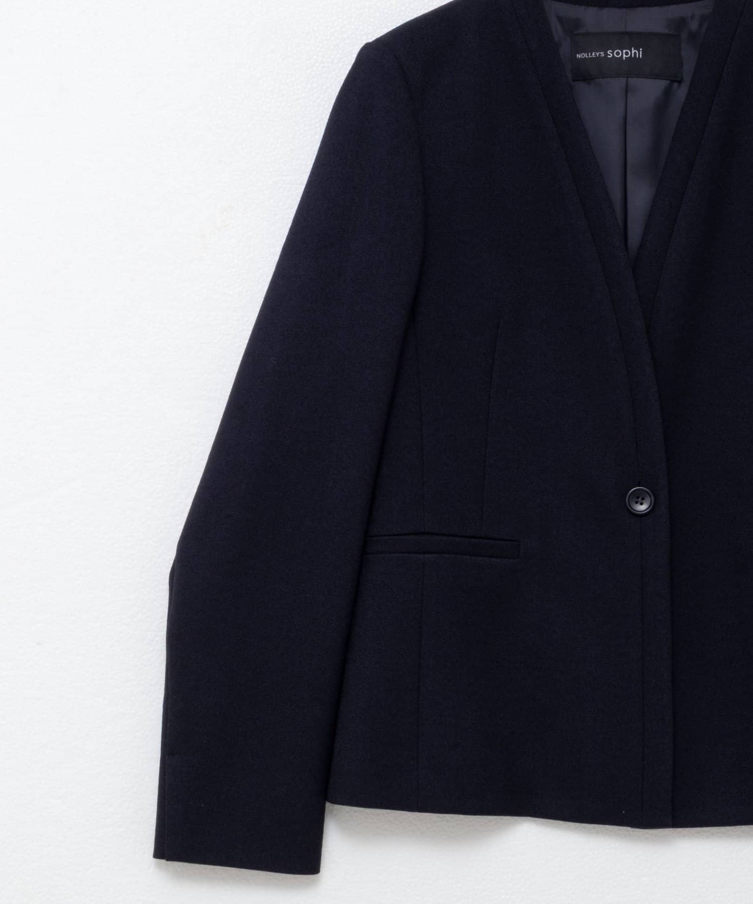 ・合繊素材ながらウールタッチな素材を使用したノーカラージャケット