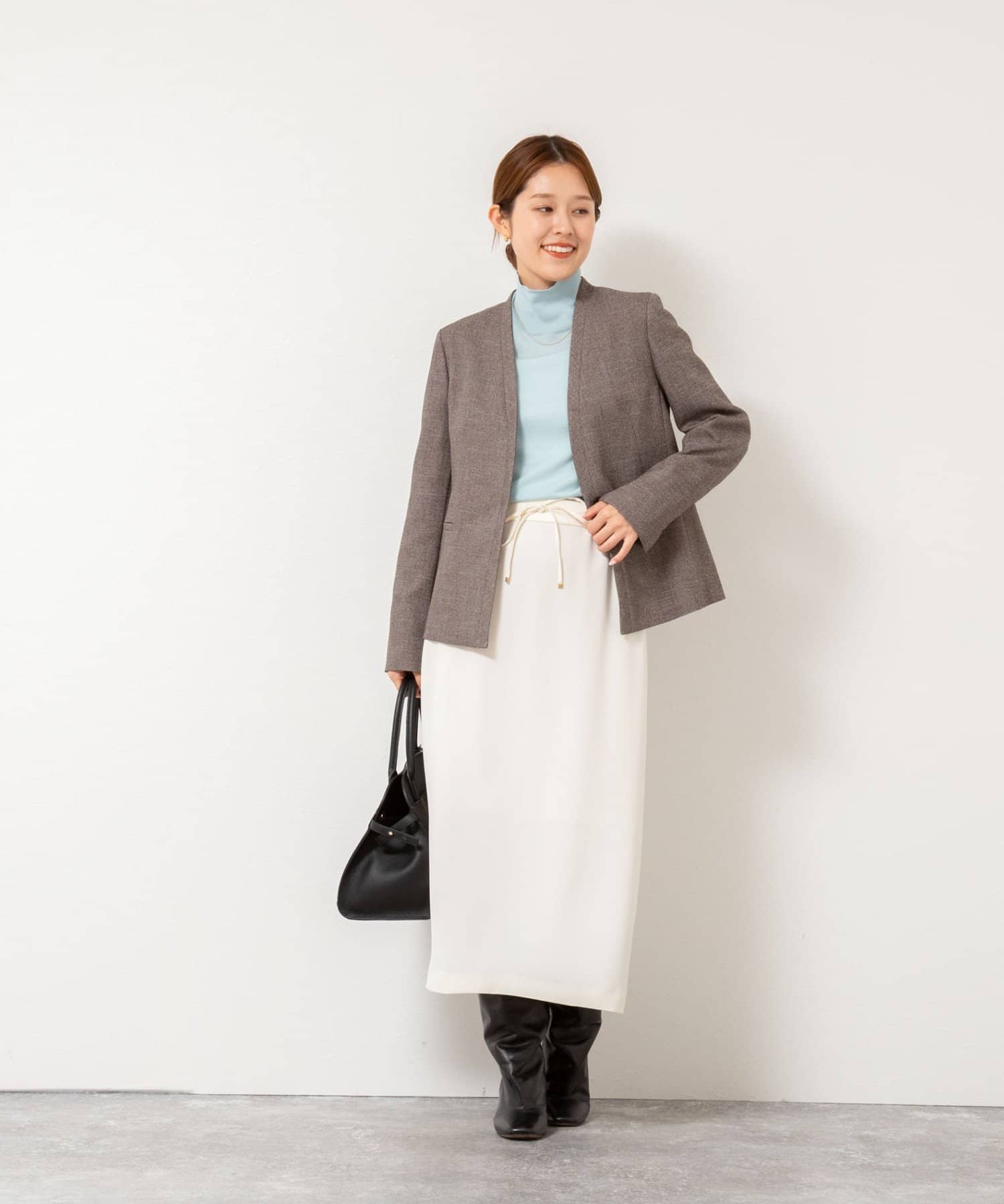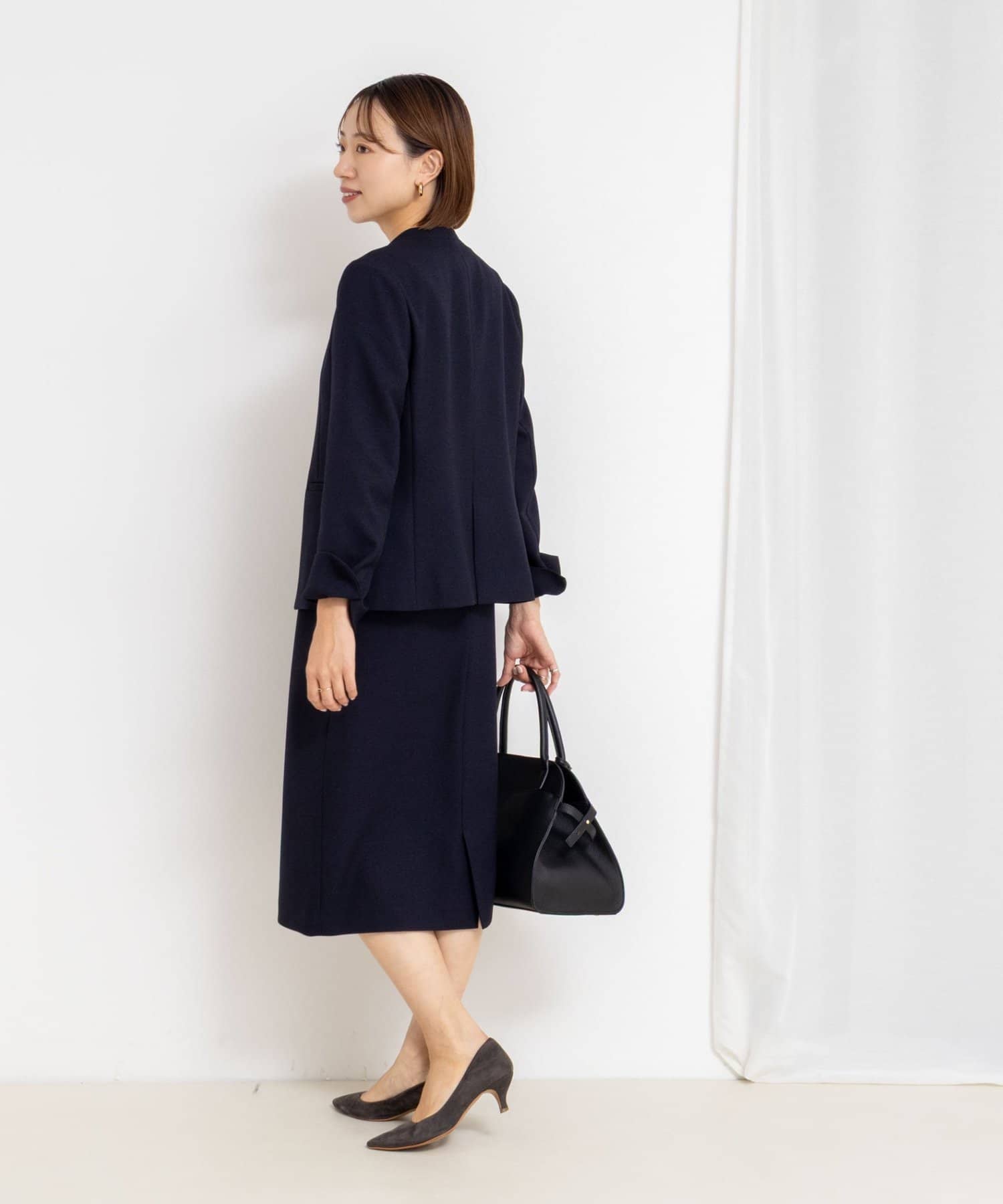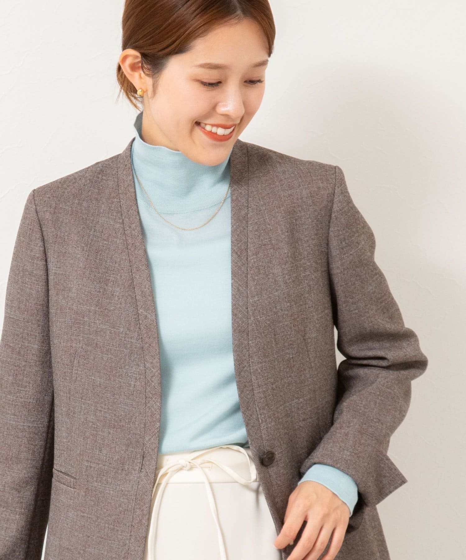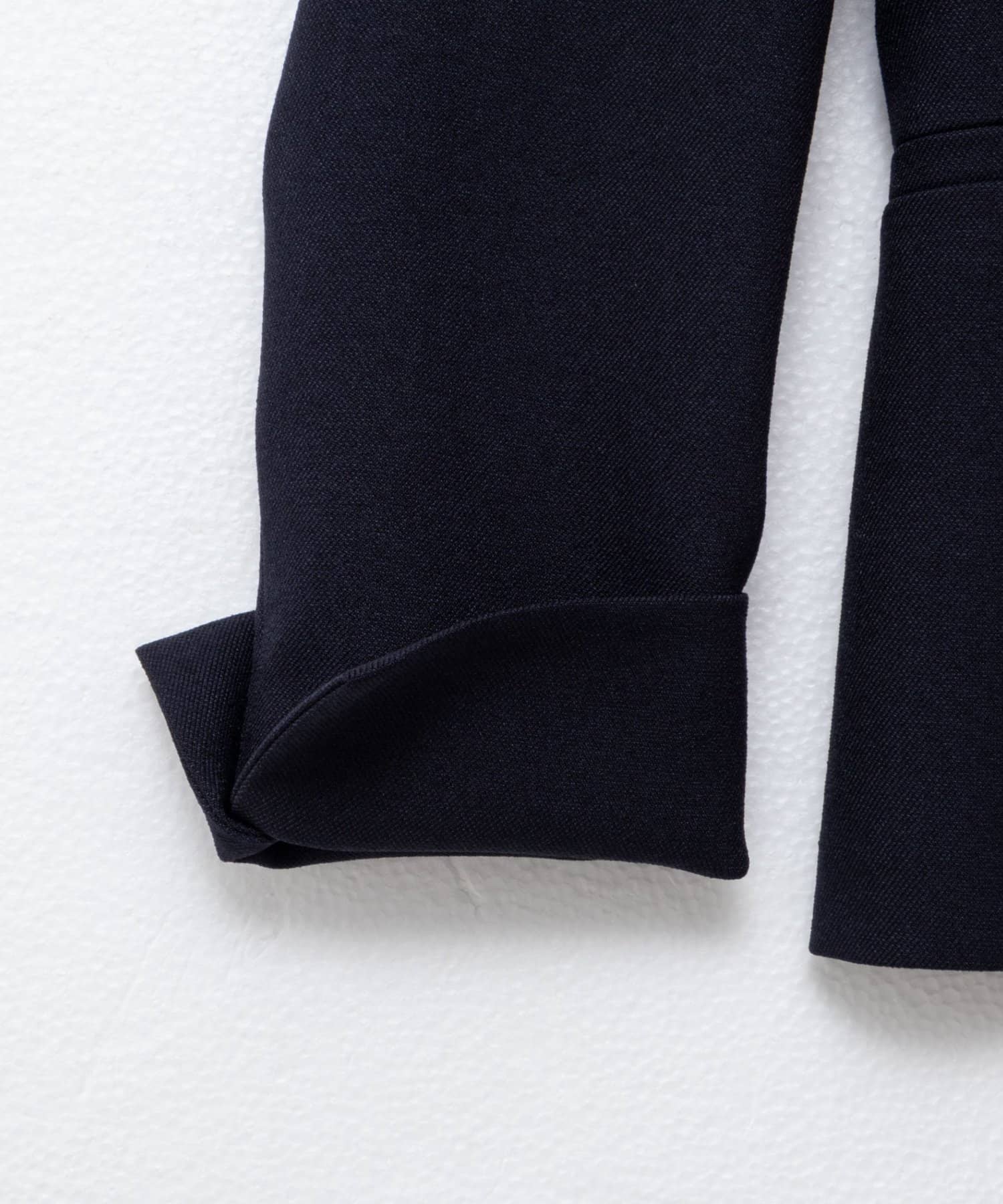 ・合繊素材ながらウールタッチな素材を使用したノーカラージャケット