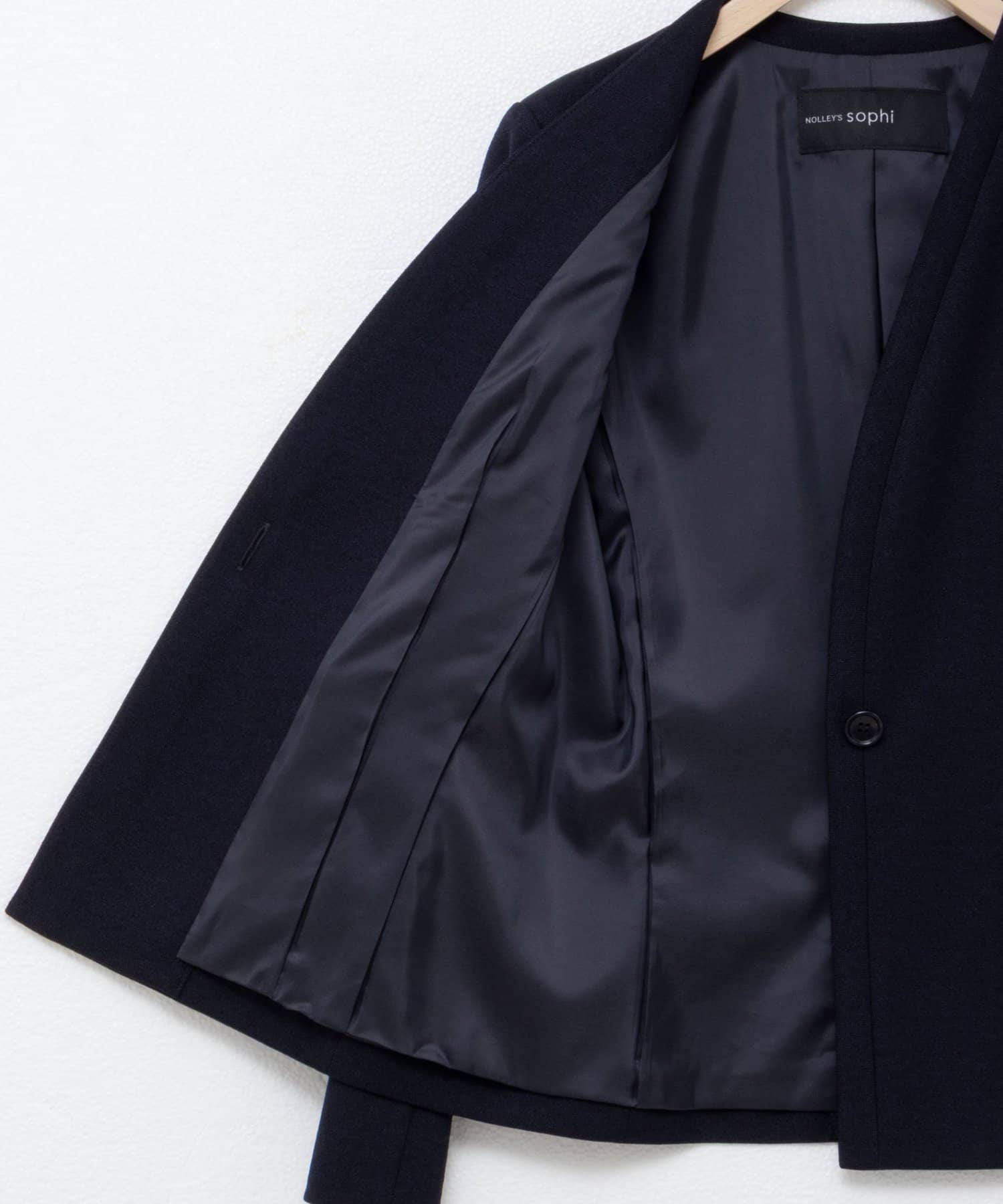 《セットアップ対応》ウォッシャブルウール調ノーカラージャケット