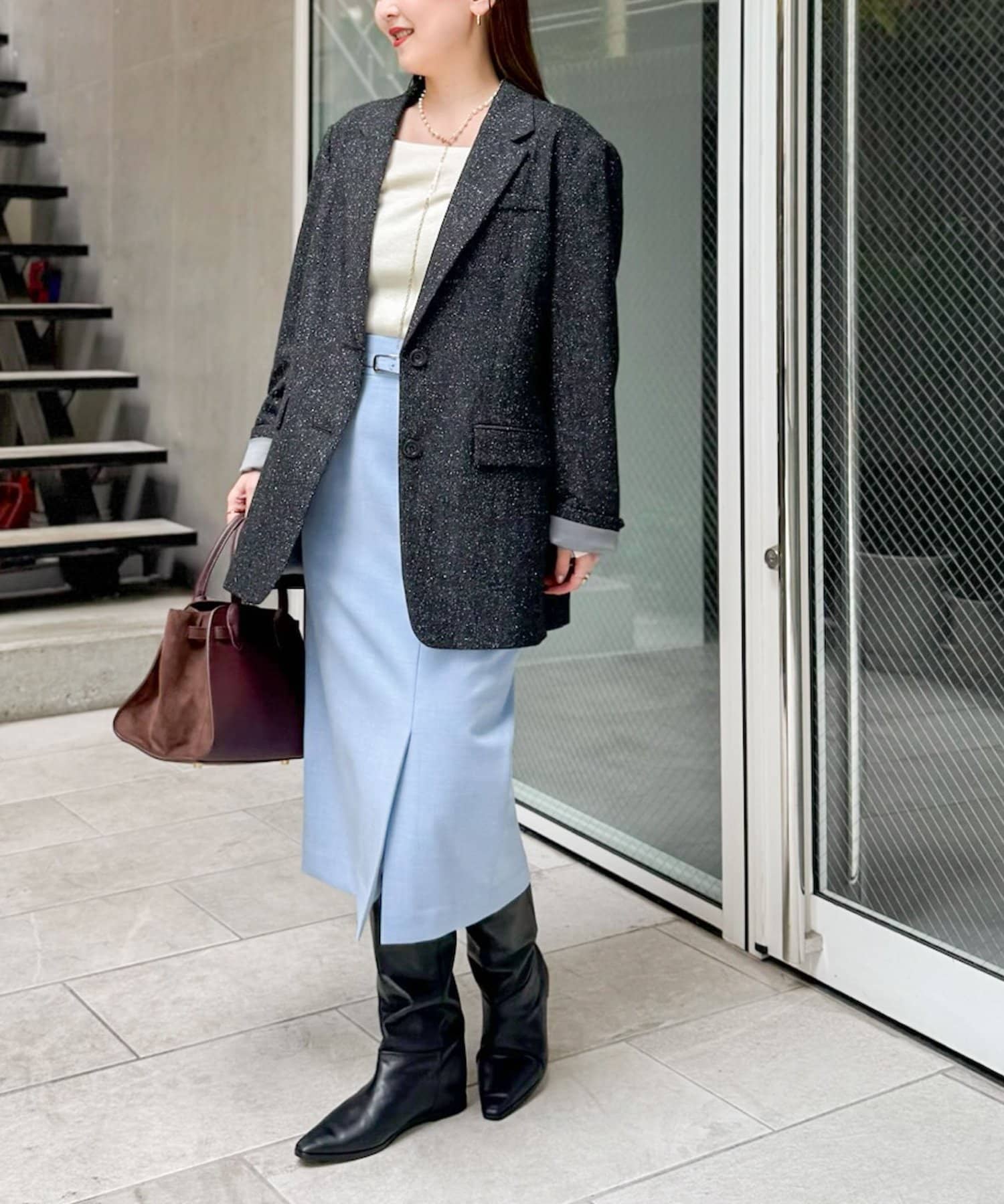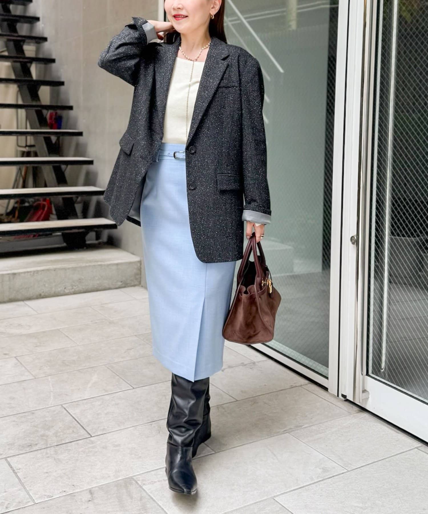 ・膨らみがあり滑らかなタッチのダブルクロス素材を使用したタイトスカート