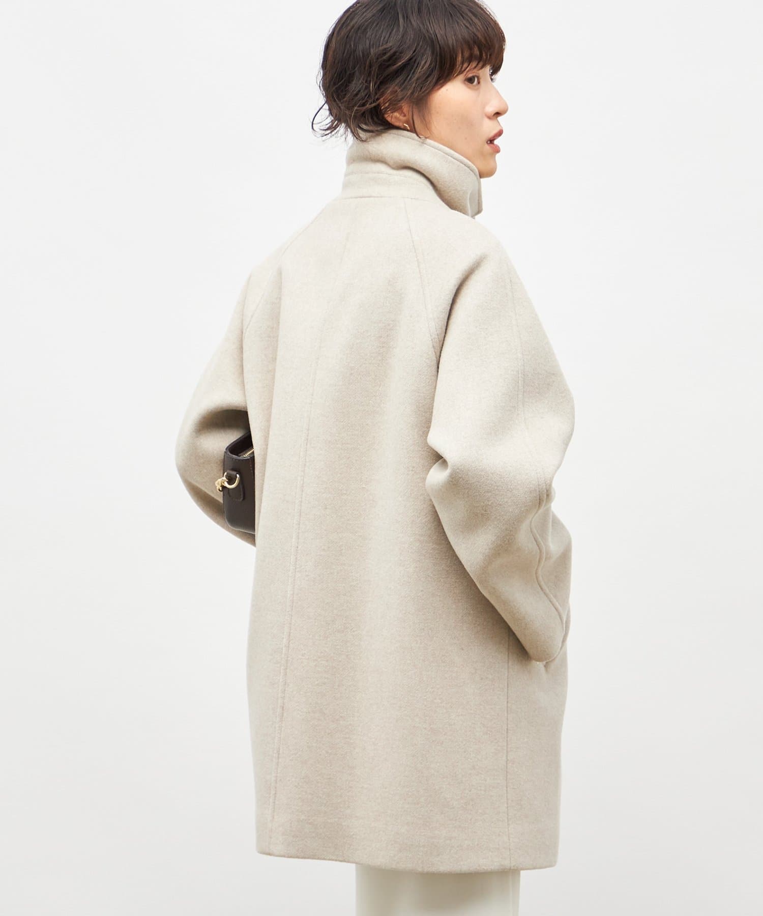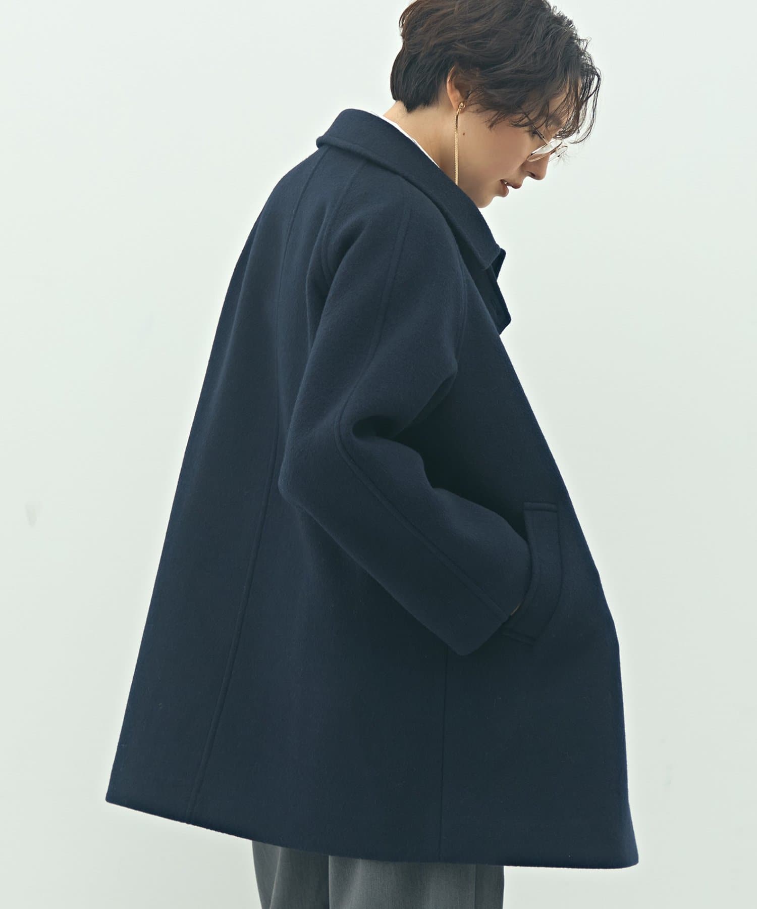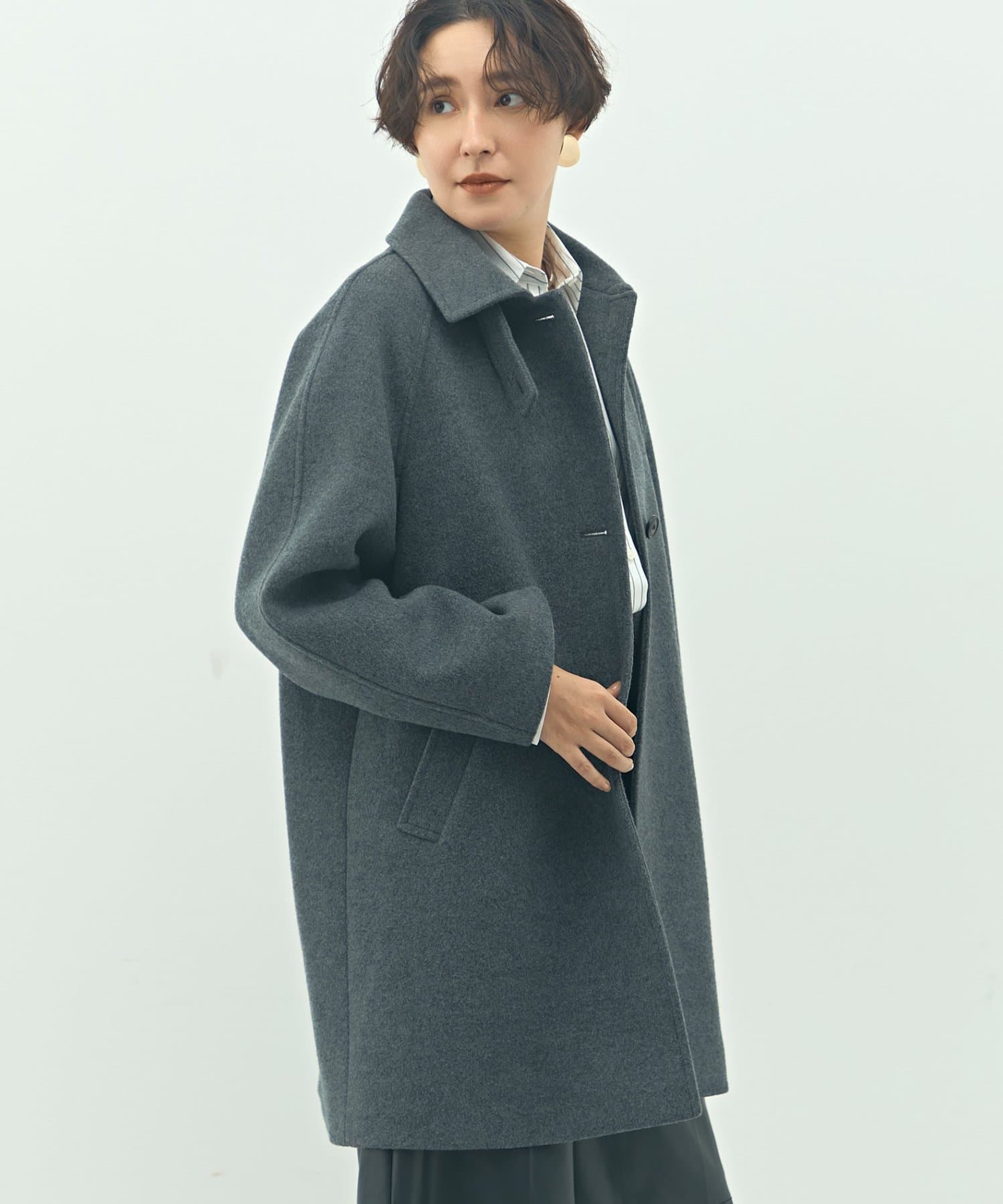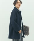 ・高品質なサスティナブルウール素材(リサイクル原料)を使用した二重織のハーフ丈のウールコート