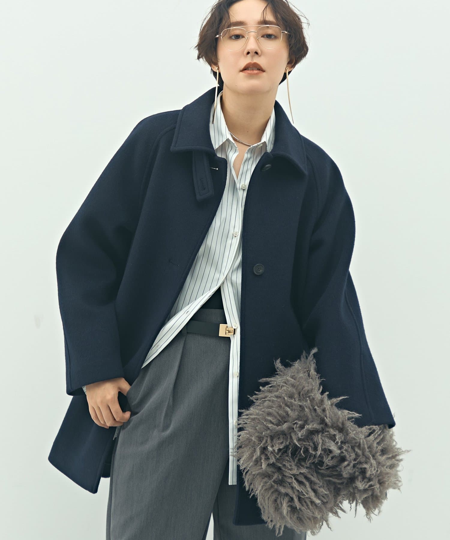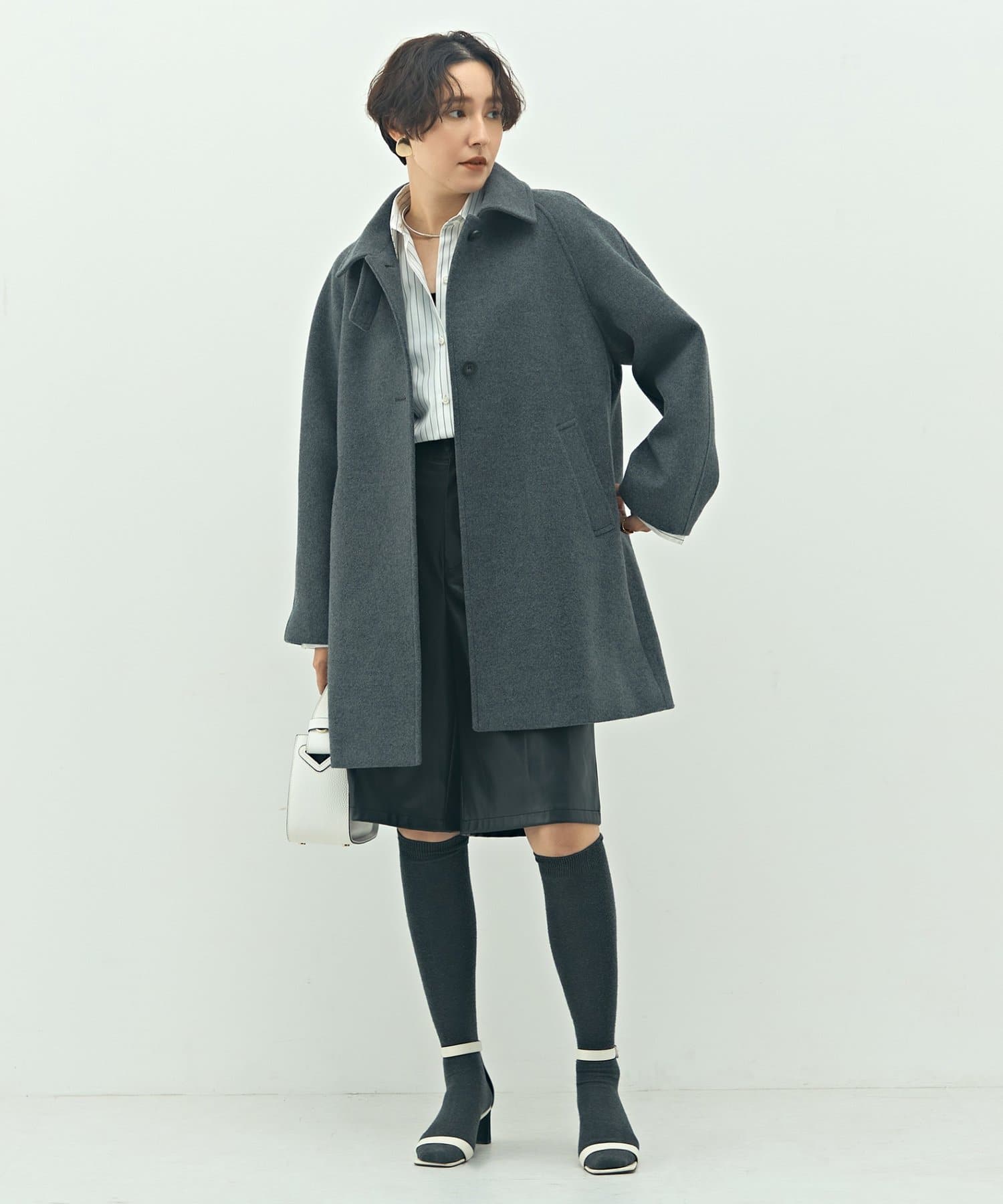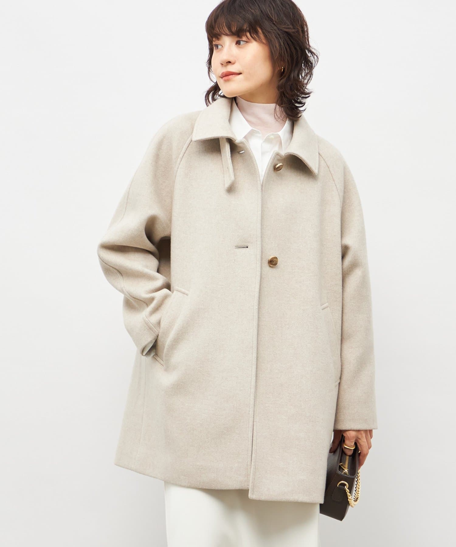 ・高品質なサスティナブルウール素材(リサイクル原料)を使用した二重織のハーフ丈のウールコート