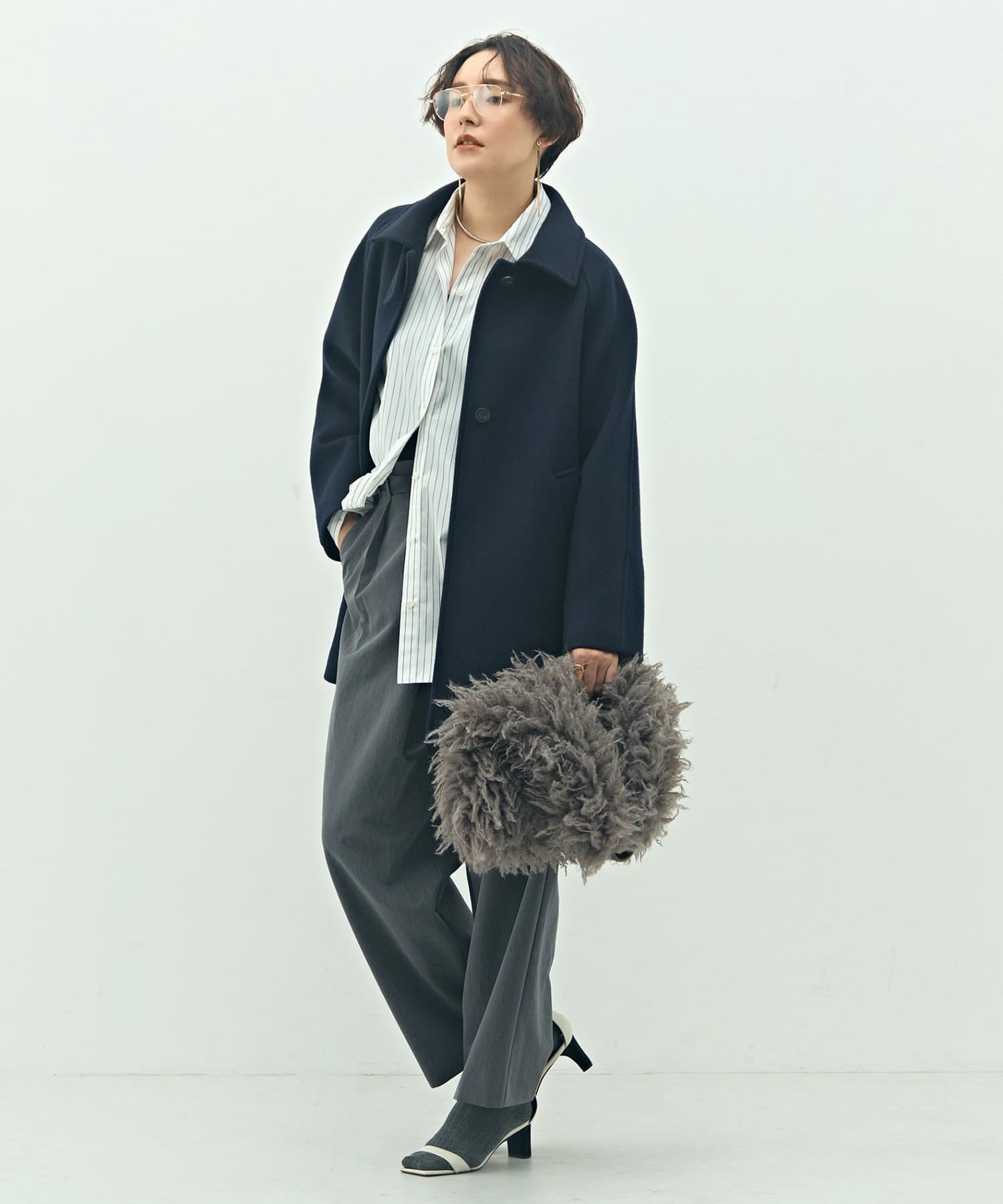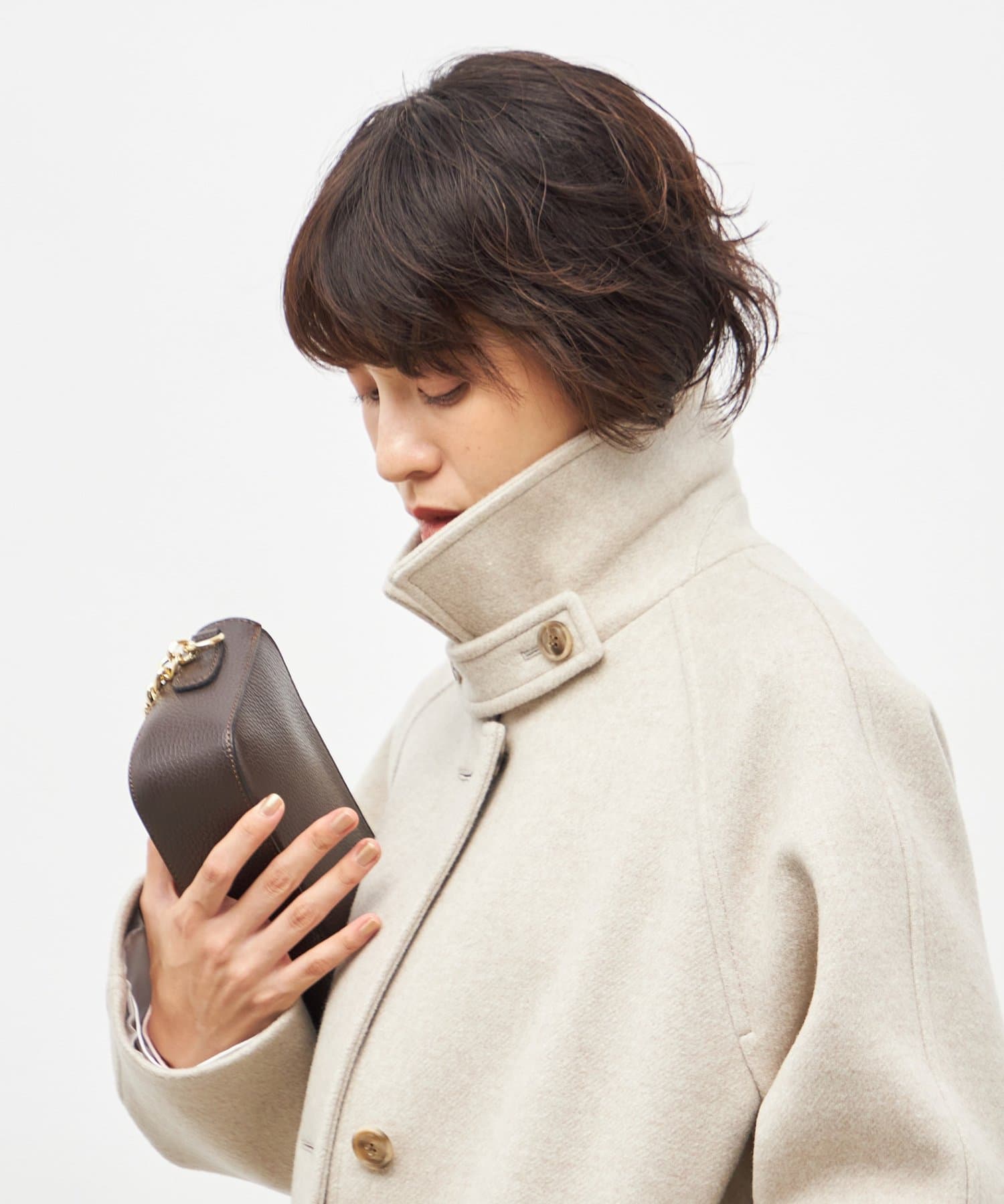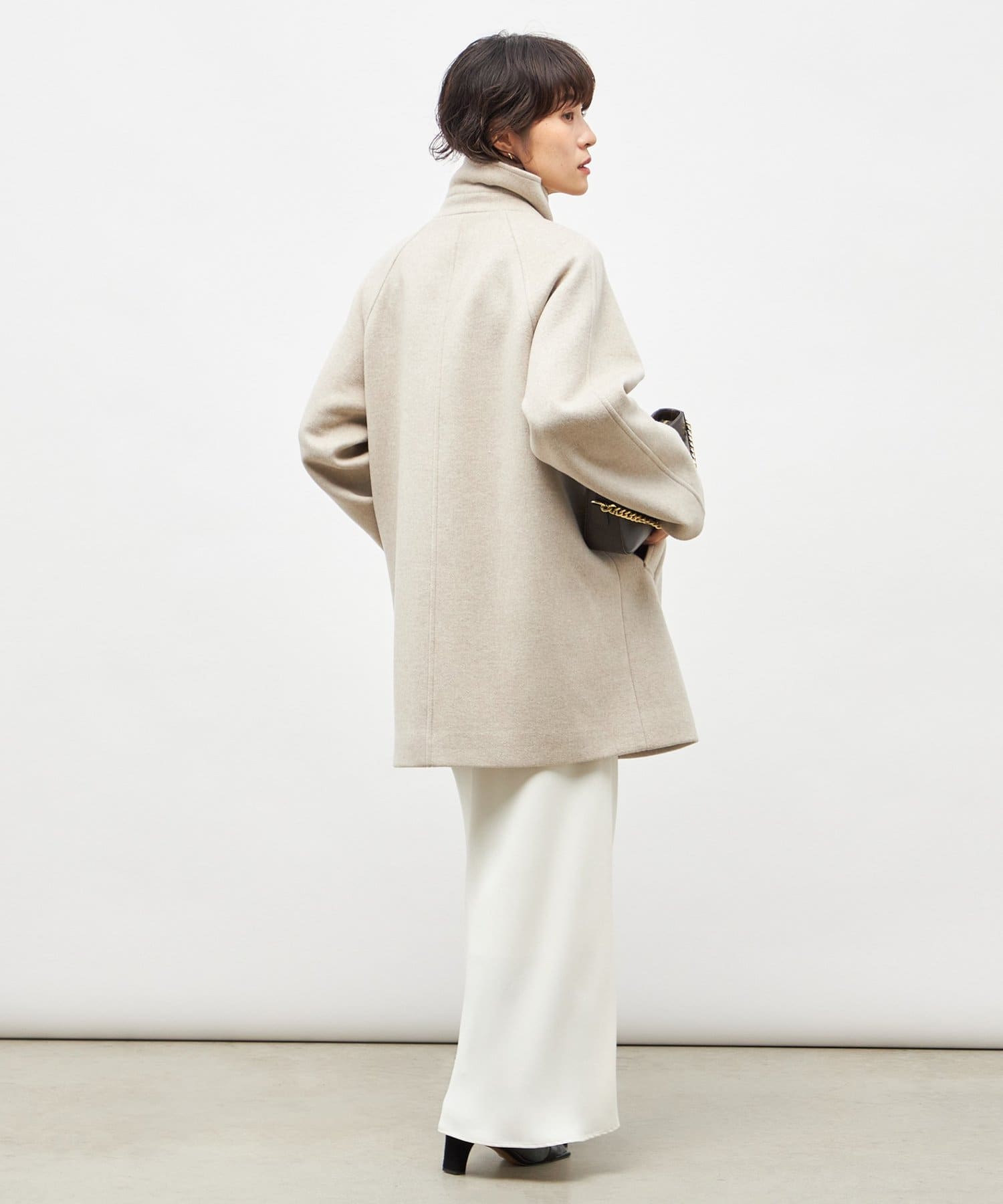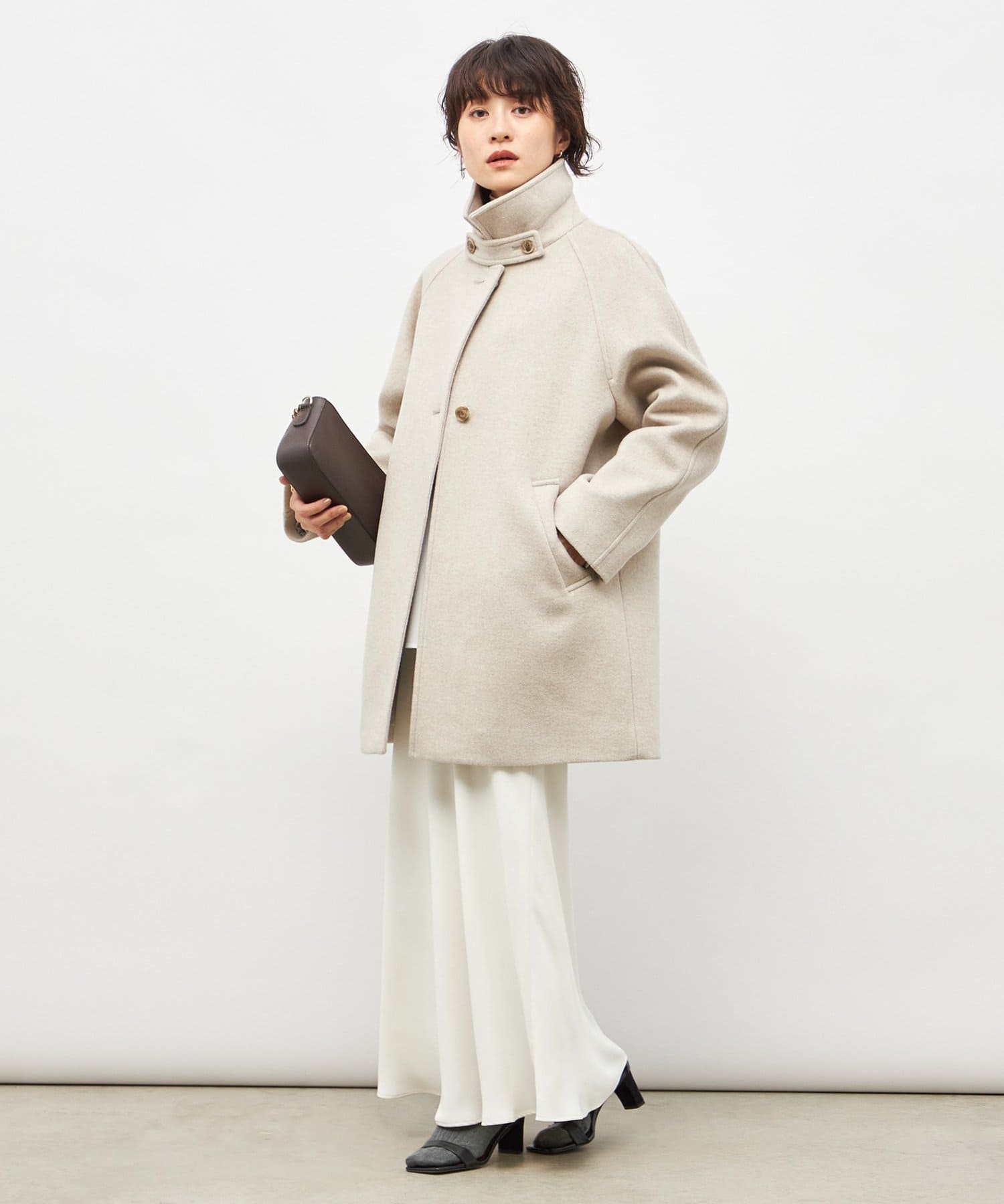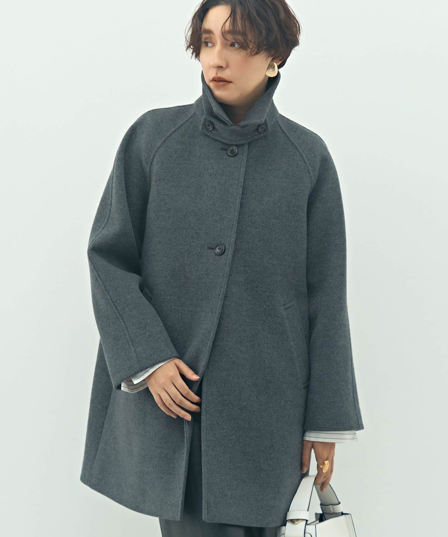 ・スタンドカラーにもなる2WAYの衿デザインで、スタンダードでありながら、こなれ感もある1着