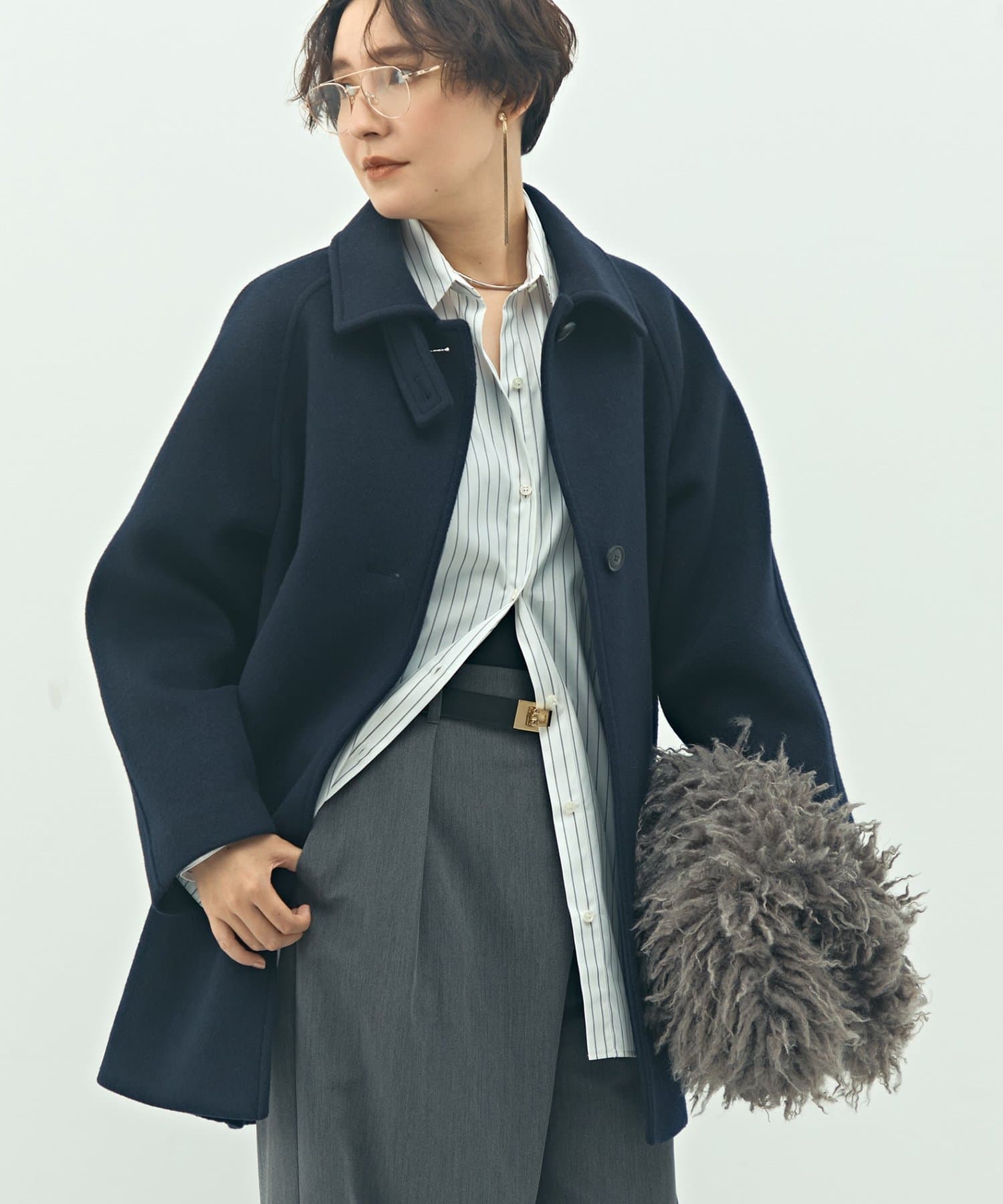 ・今季も主流のワイドパンツやロングスカートとバランスがとりやすく、軽やかに見えるこだわりの着丈バランス
