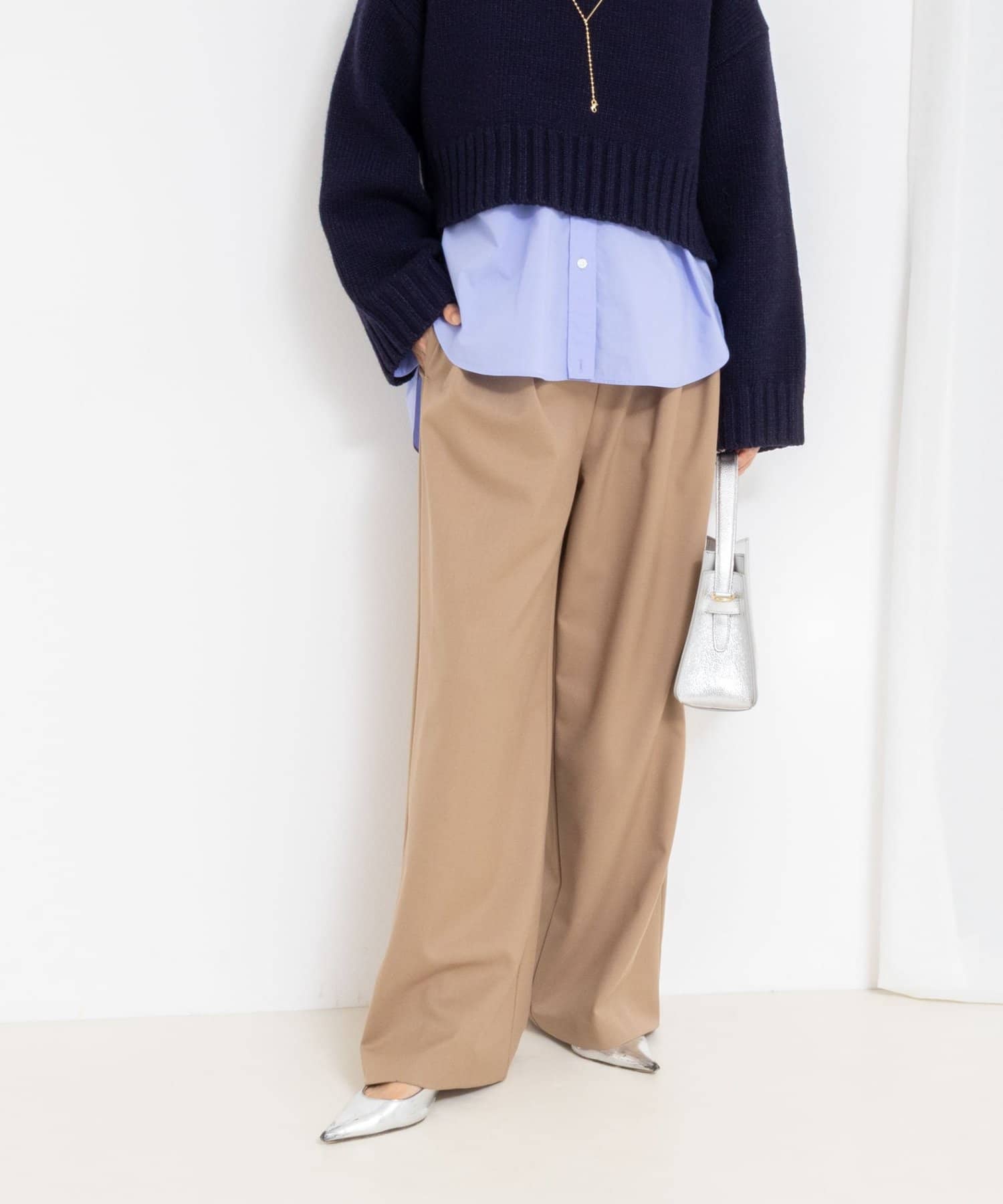 ・ウール混のウォーム感のあるストレッチツイル素材を使用したワイドパンツ
