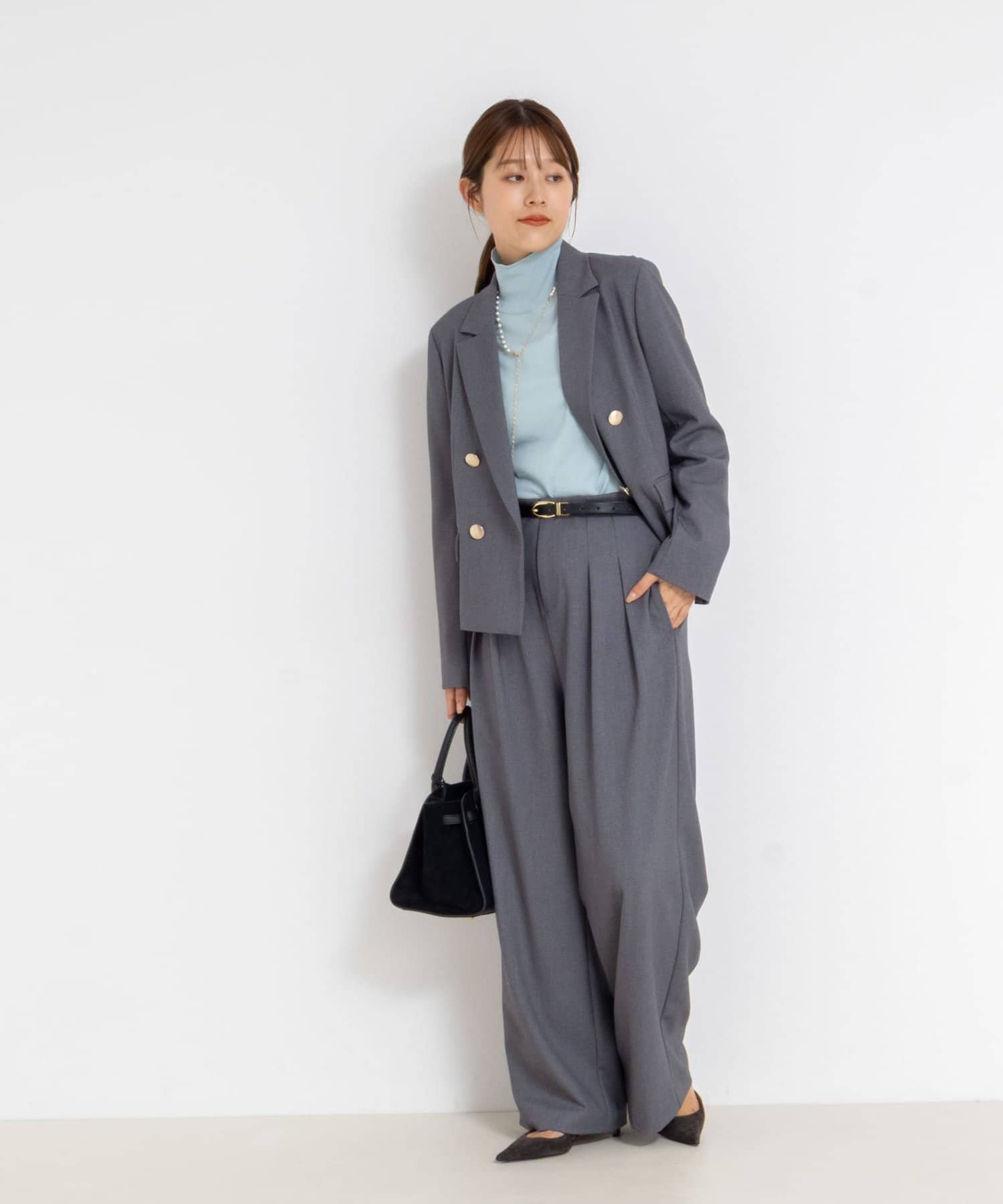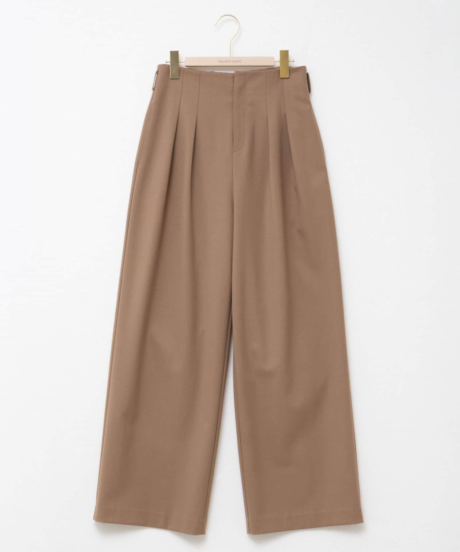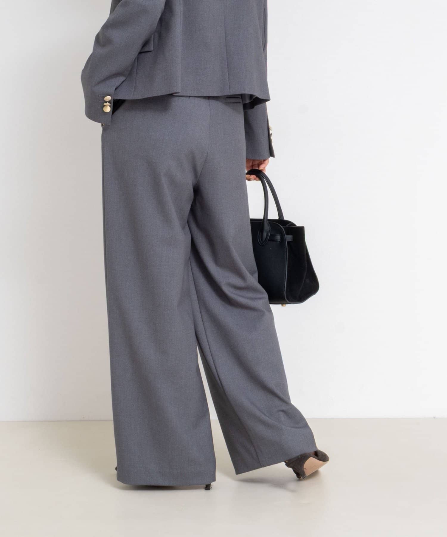 《セットアップ対応》ウォッシャブルウール混ツイルハイウエストワイドパンツ