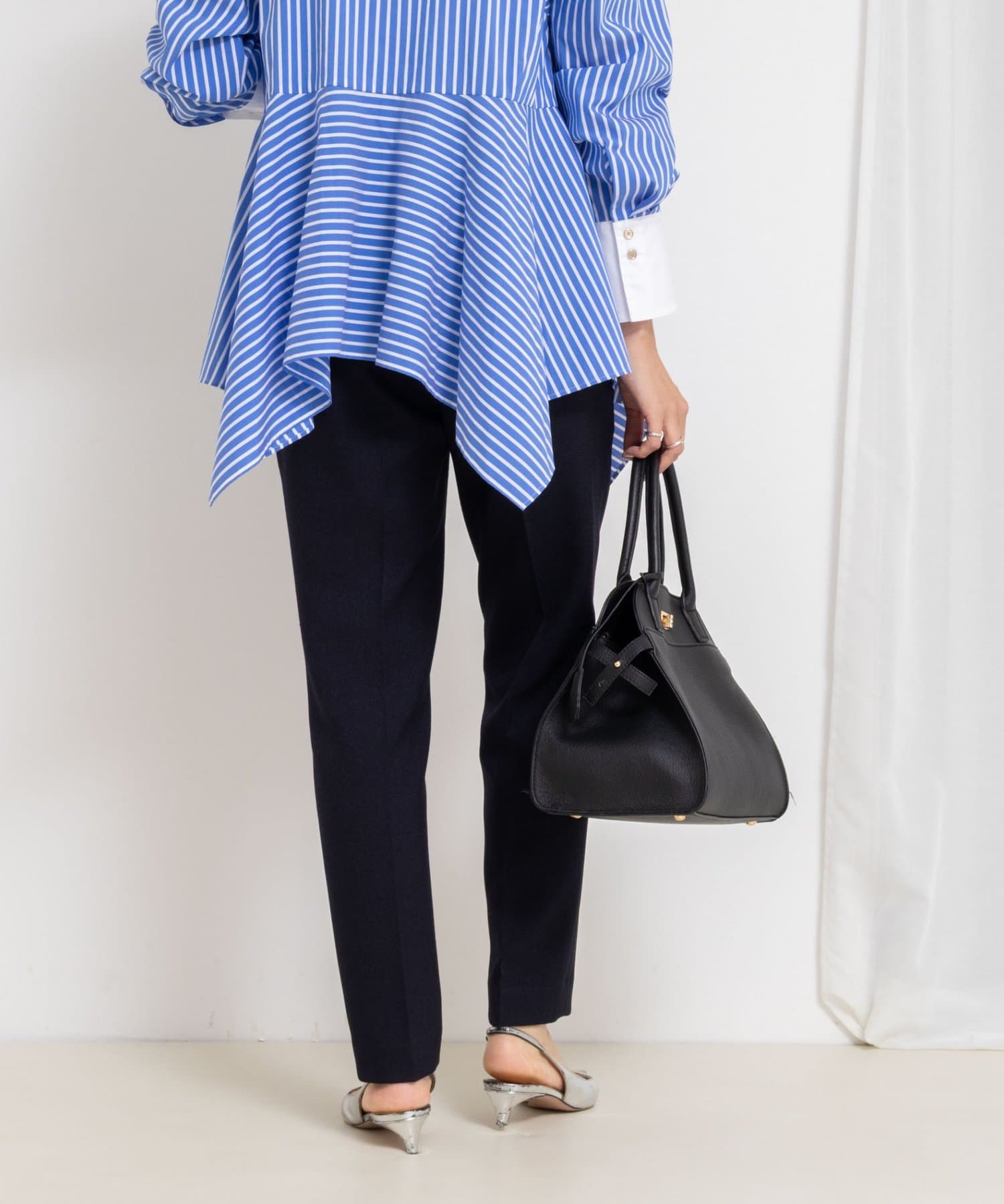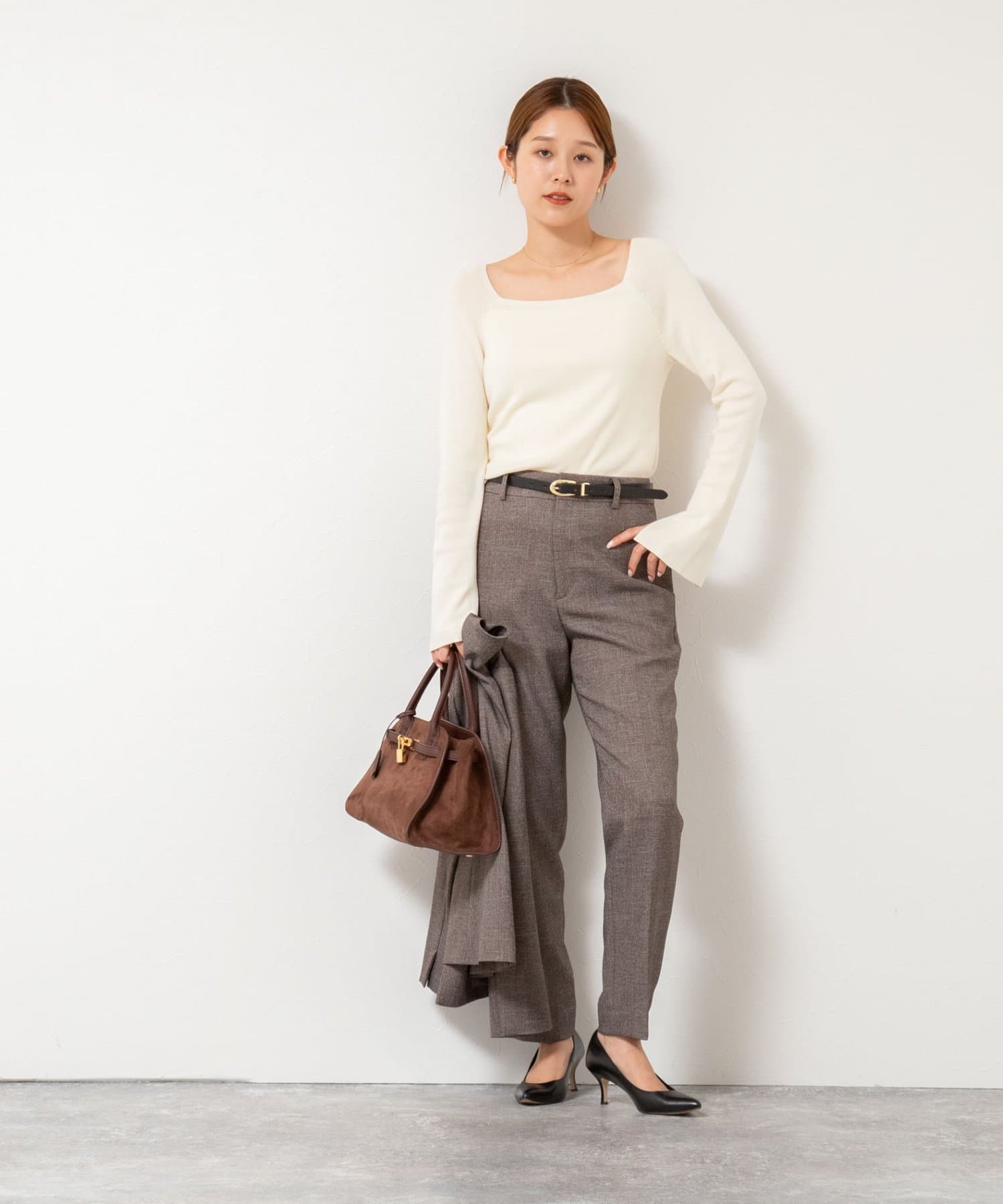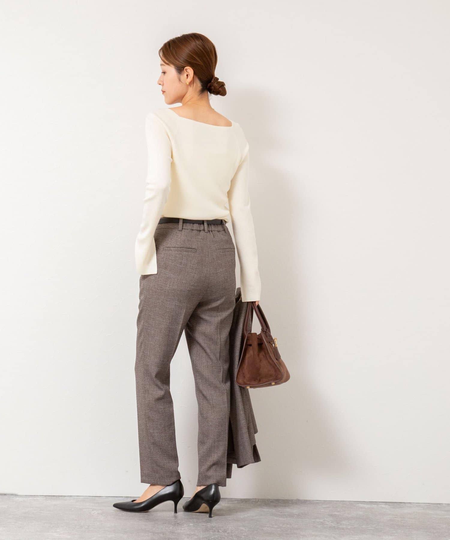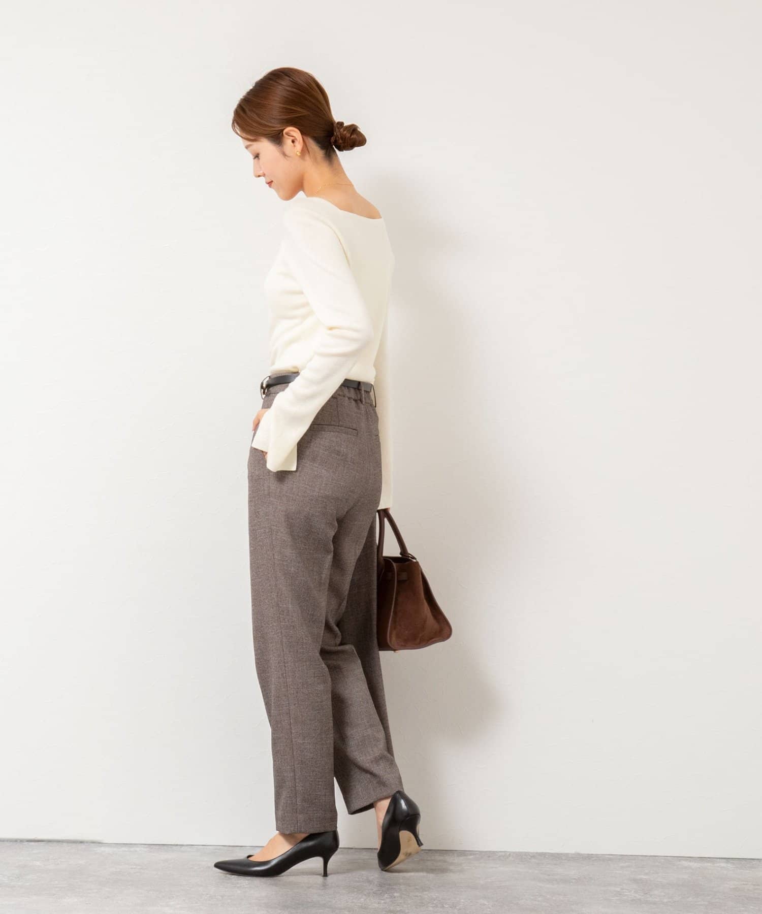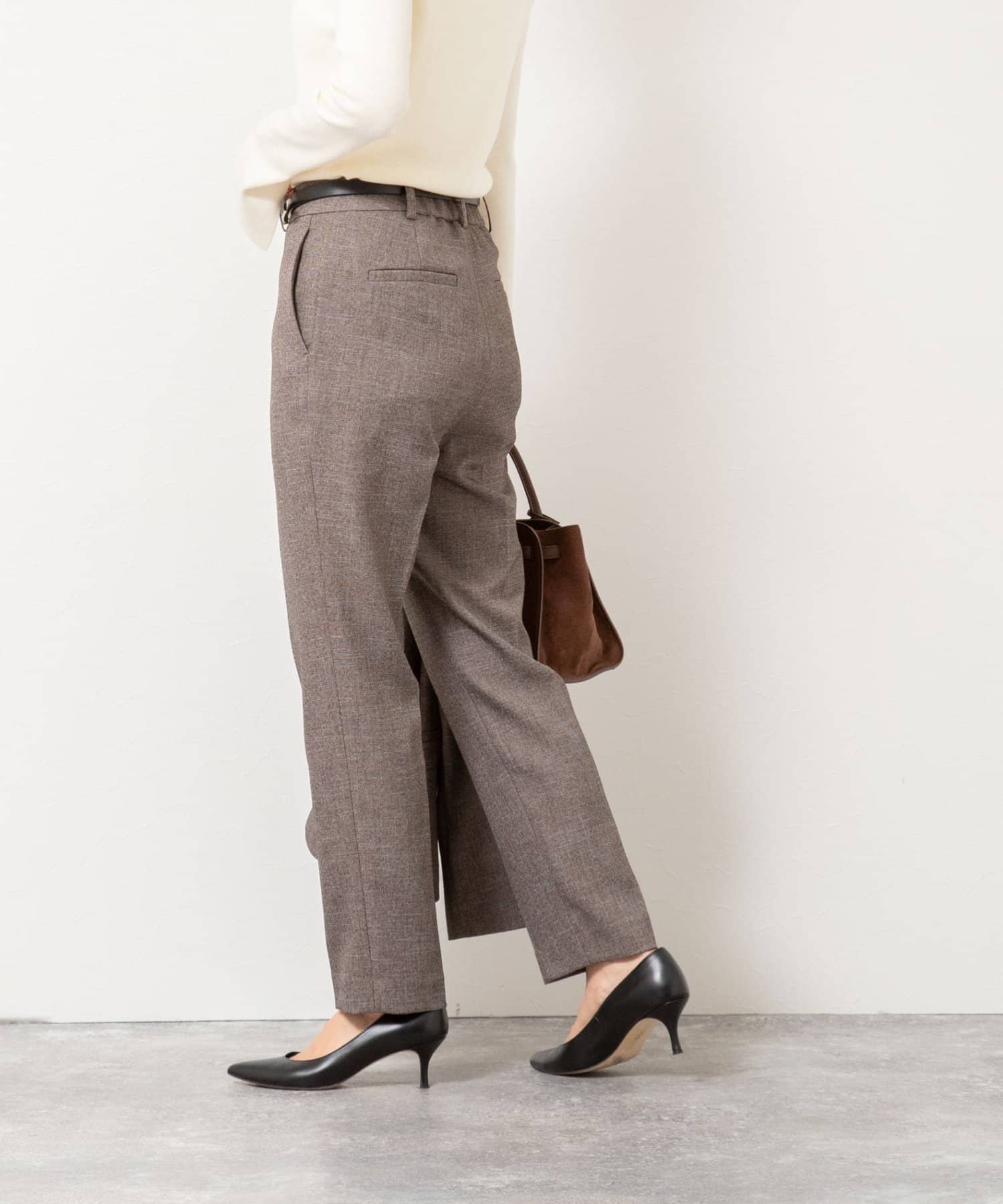 ・合繊素材ながらウールタッチな素材を使用したセンタープレス入りテーパードシルエットパンツ