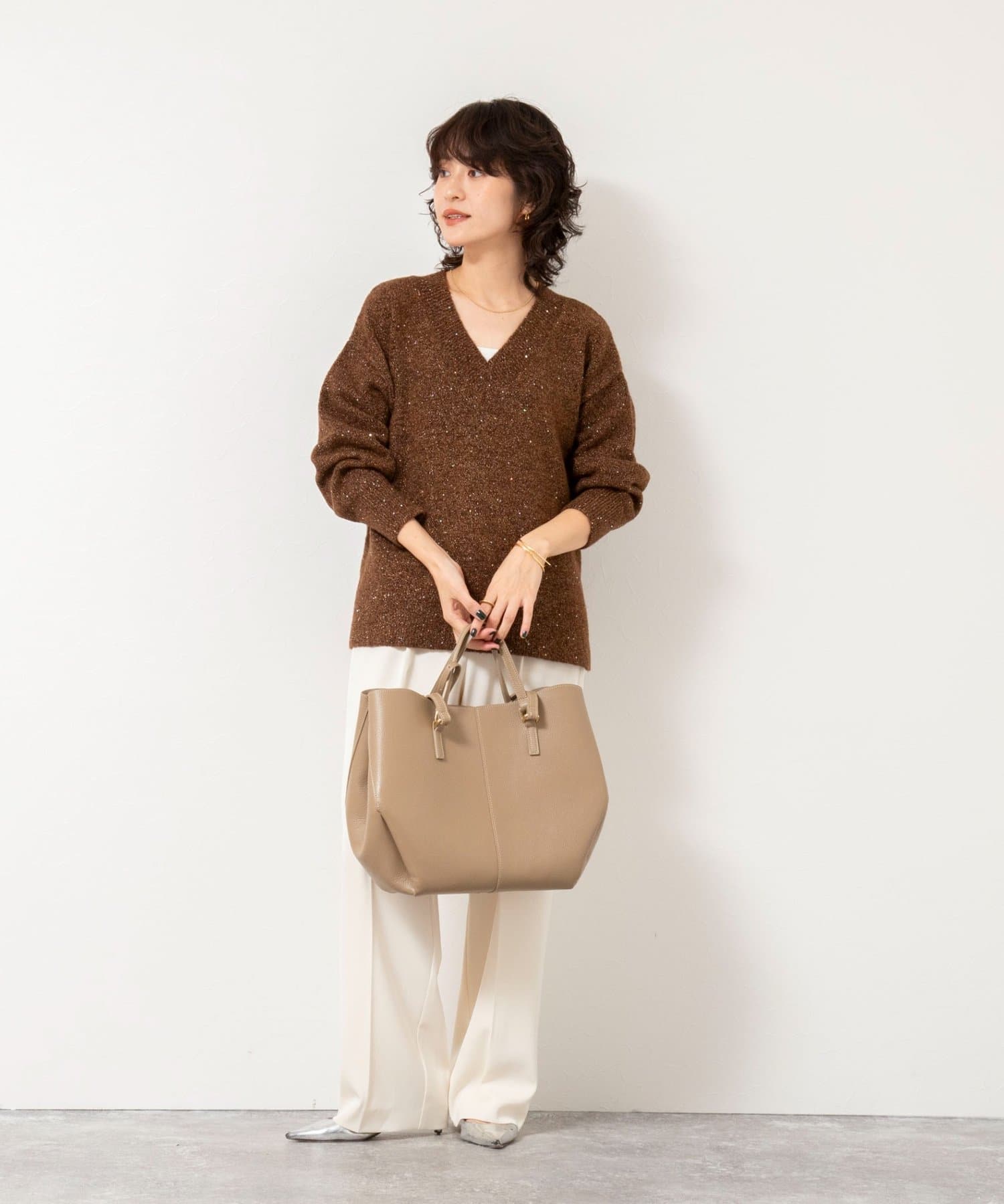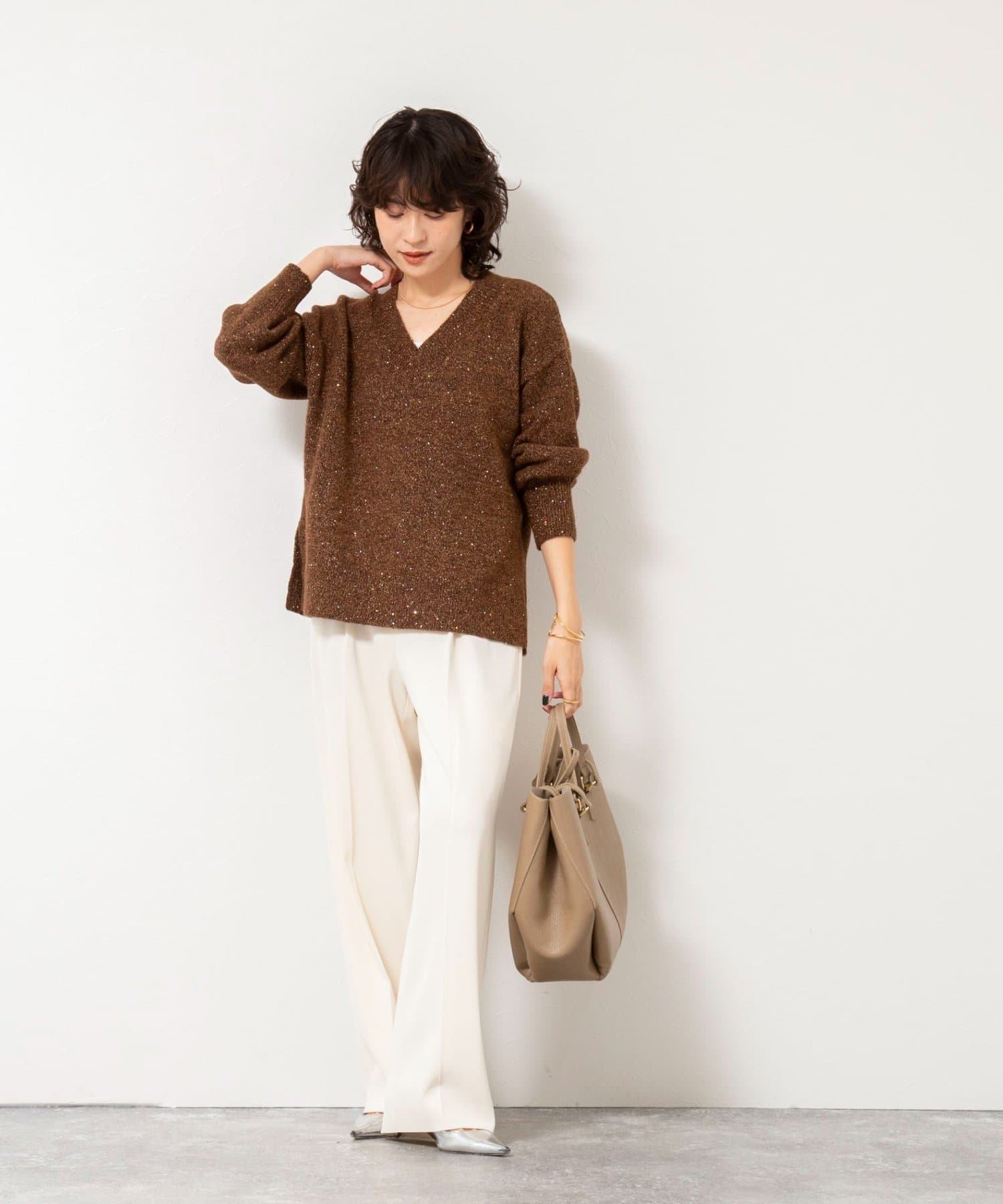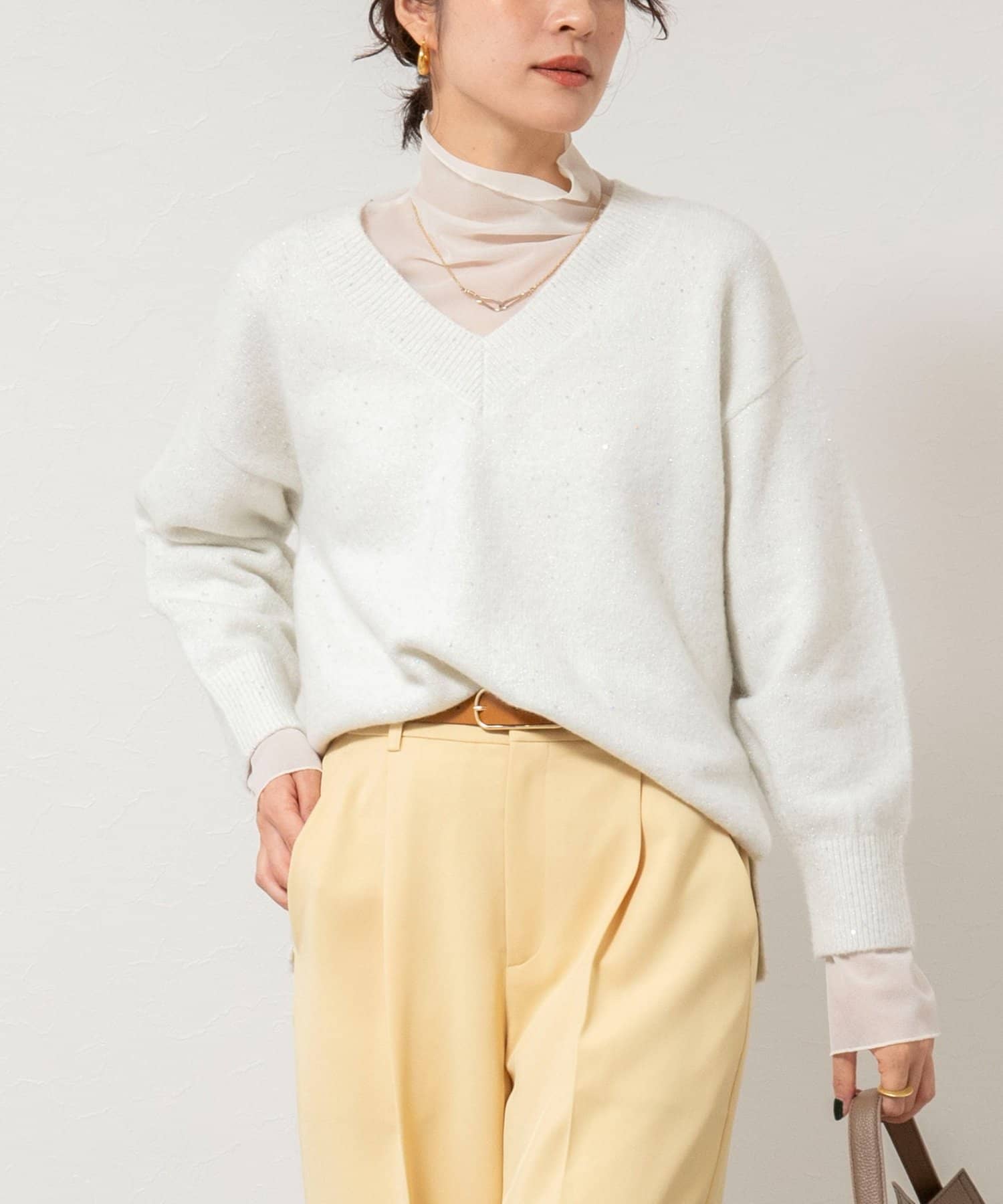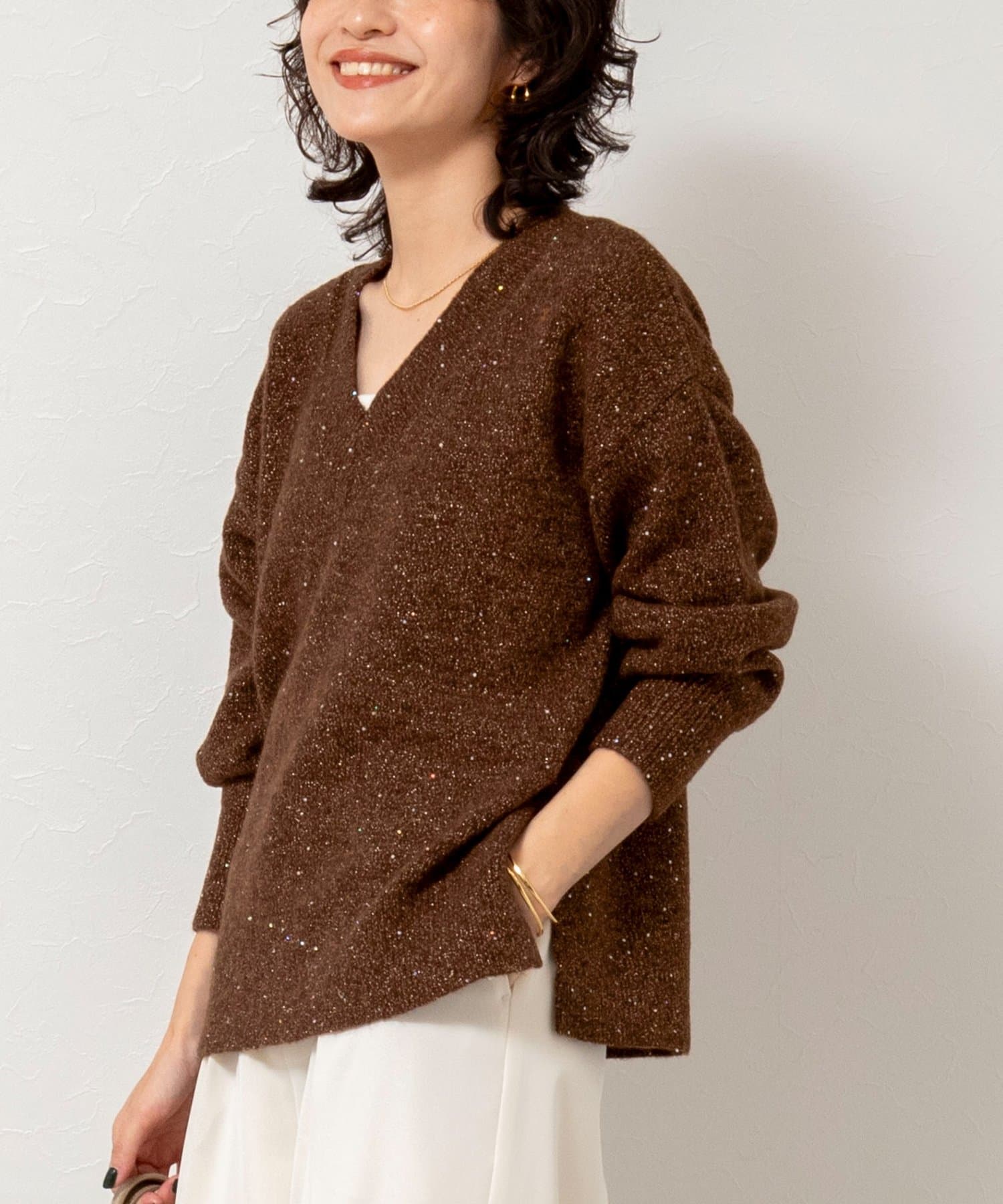 ・程よくゆったりしたサイズ感のVネックプルオーバーは着回し力抜群