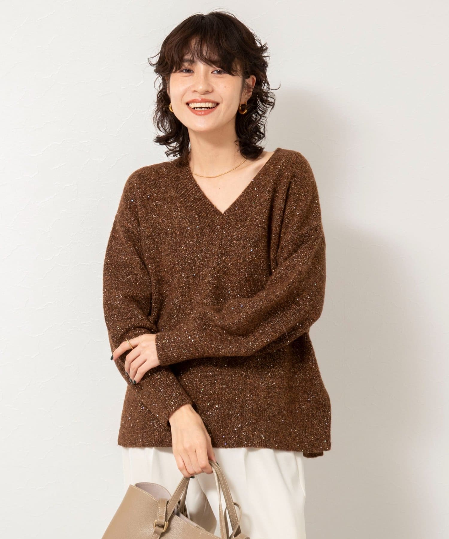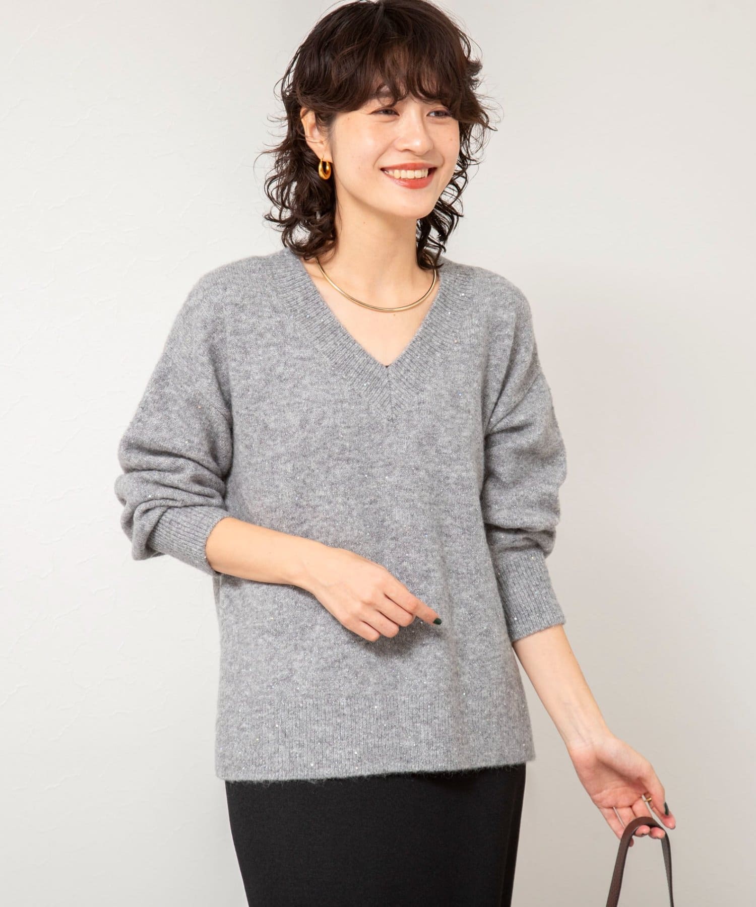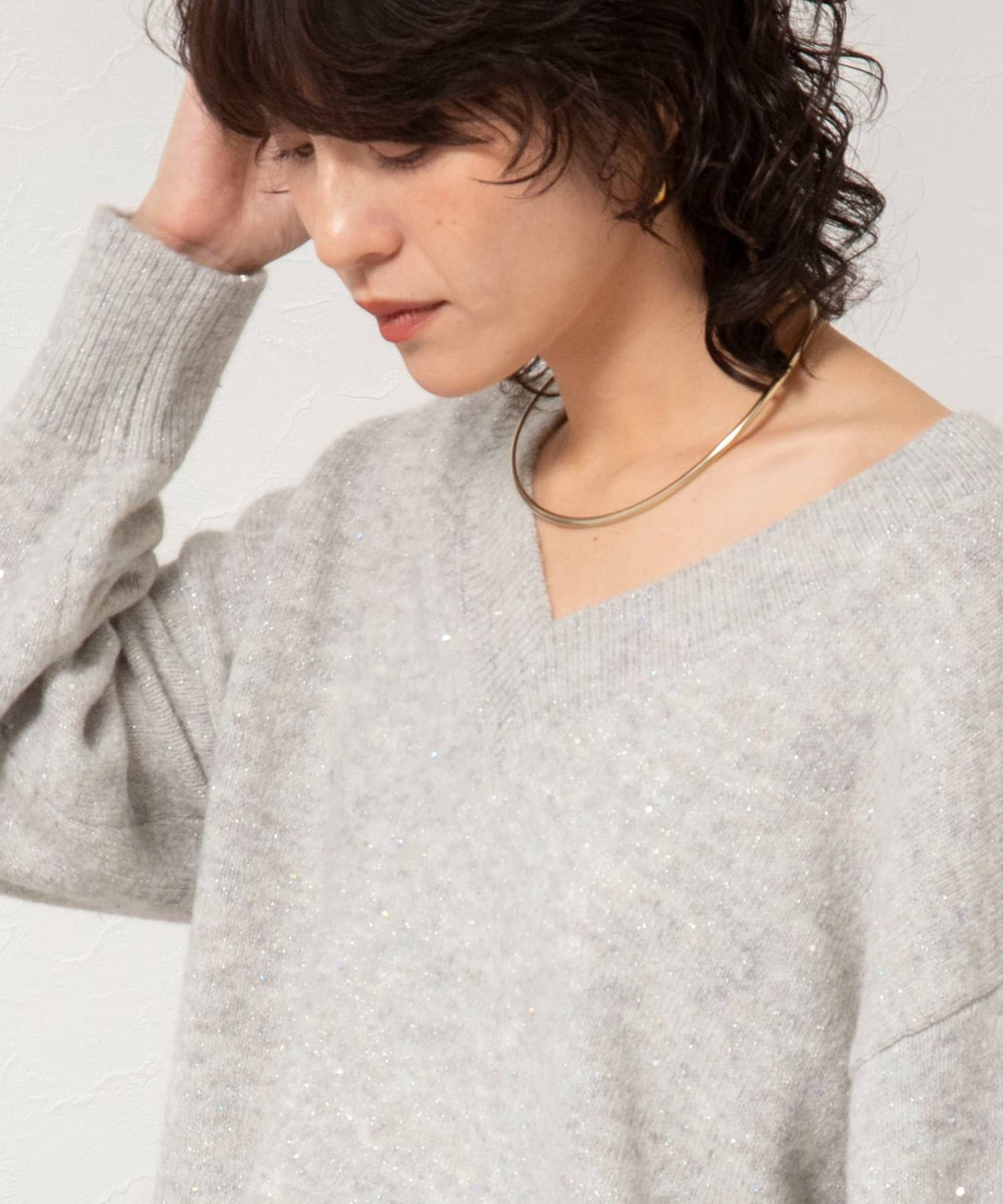《手洗い可能》モヘヤスパンコールVネックプルオーバー