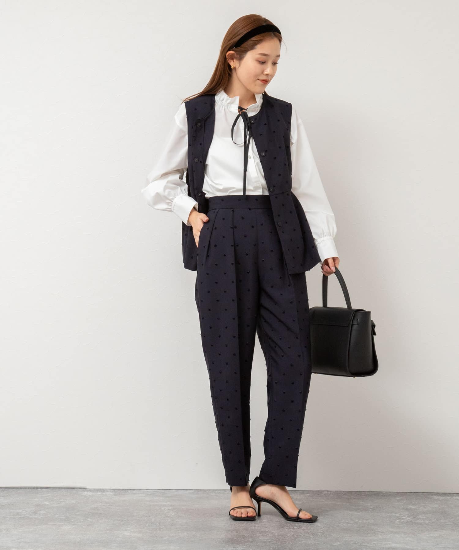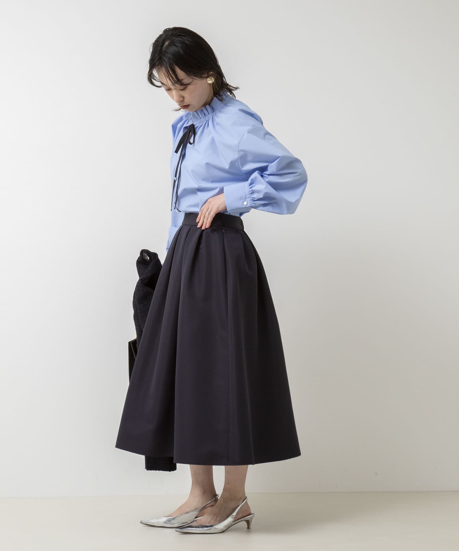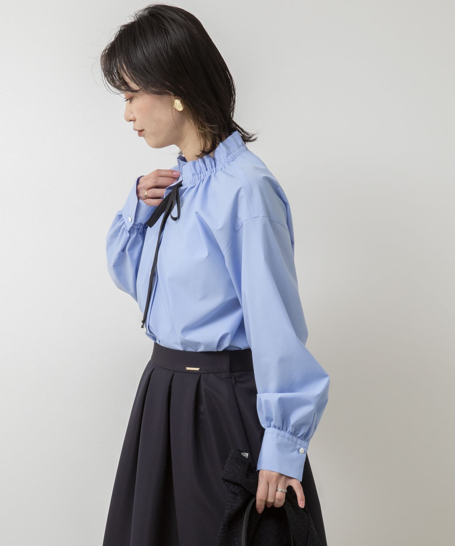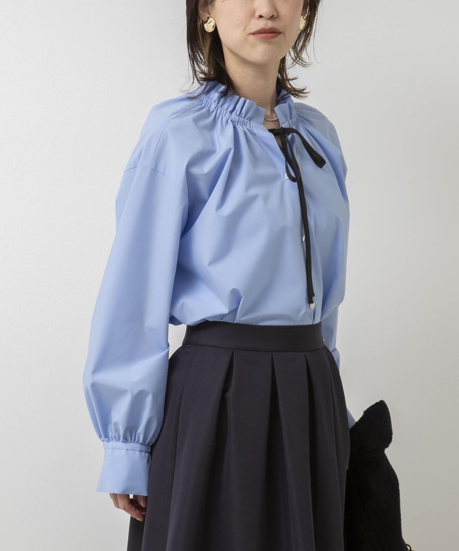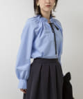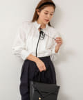 ・フリルディテールと配色のリボンがデザインポイントのブラウス