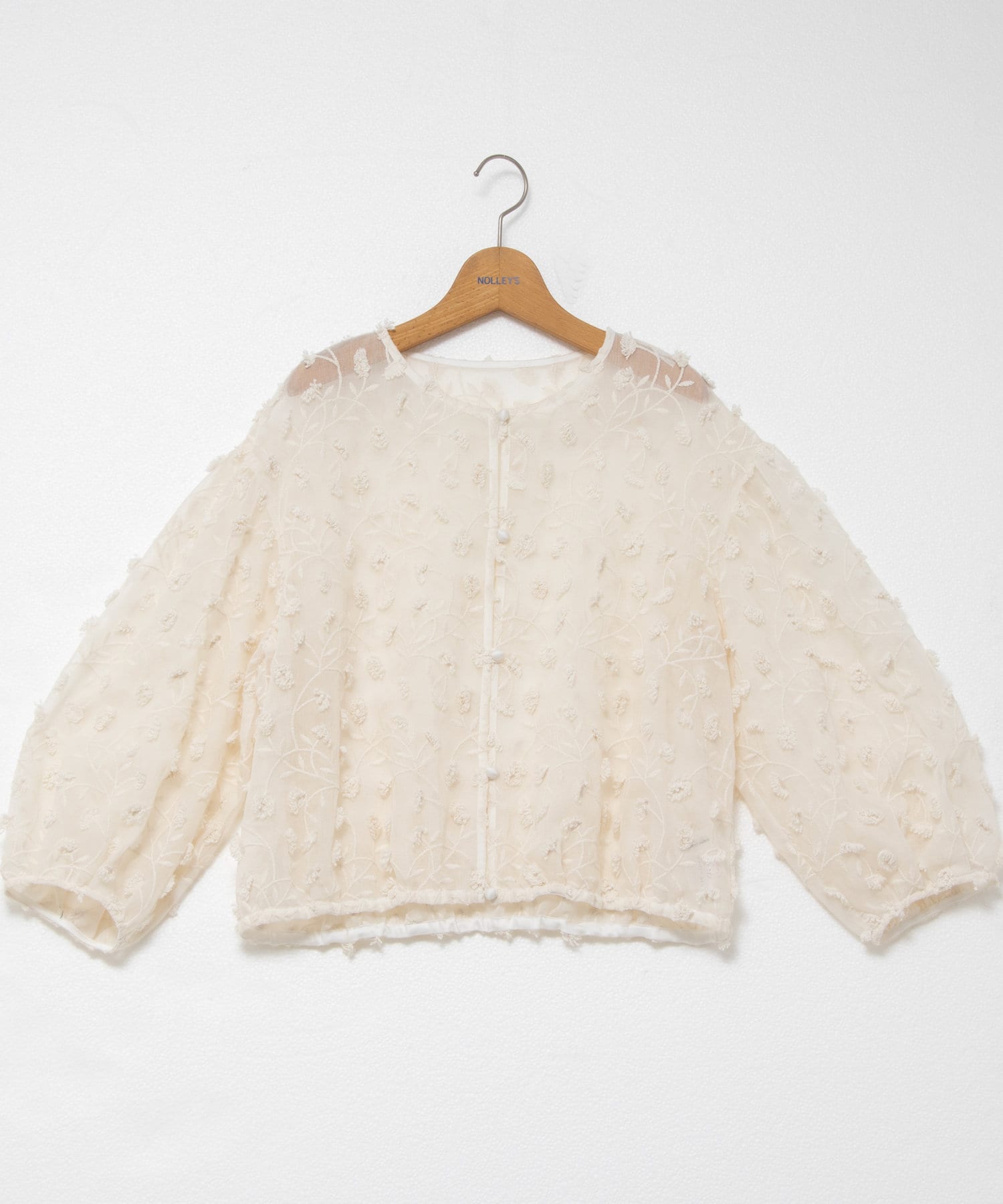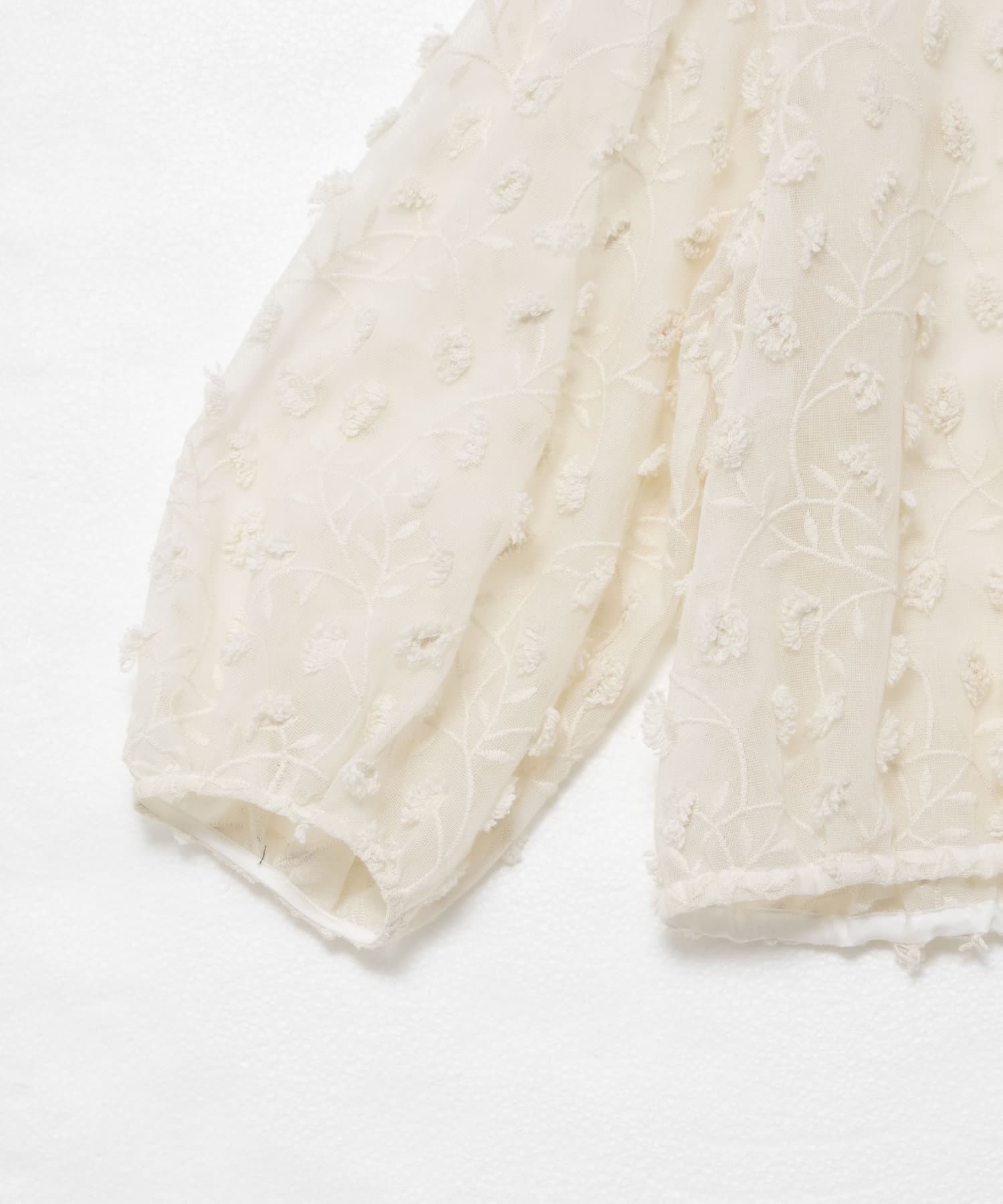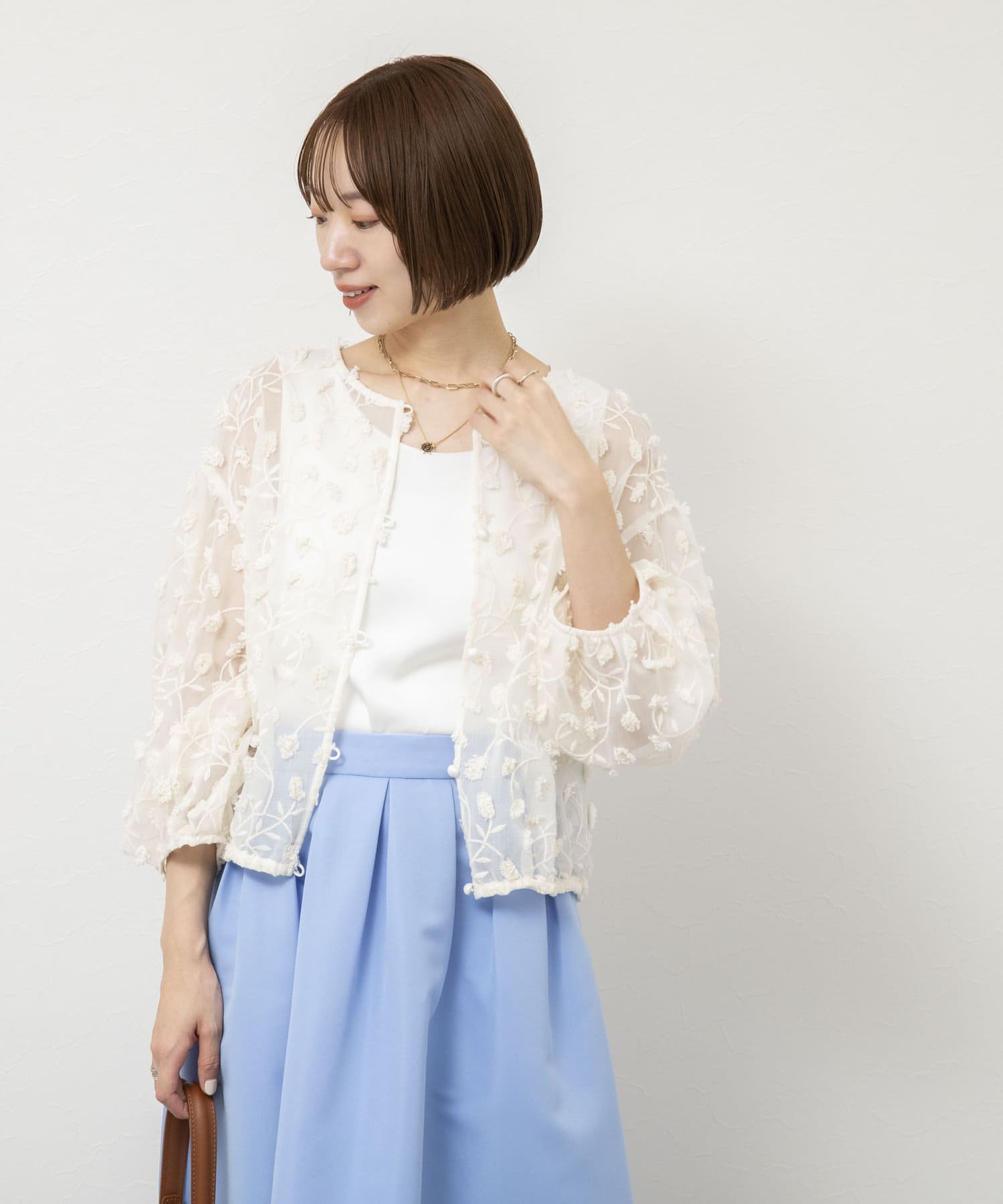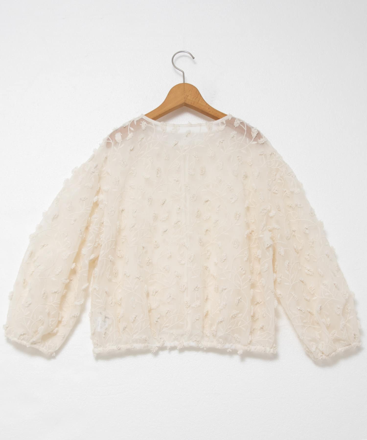 ・丸味のあるフォルムが特徴の華やかな羽織ブラウス