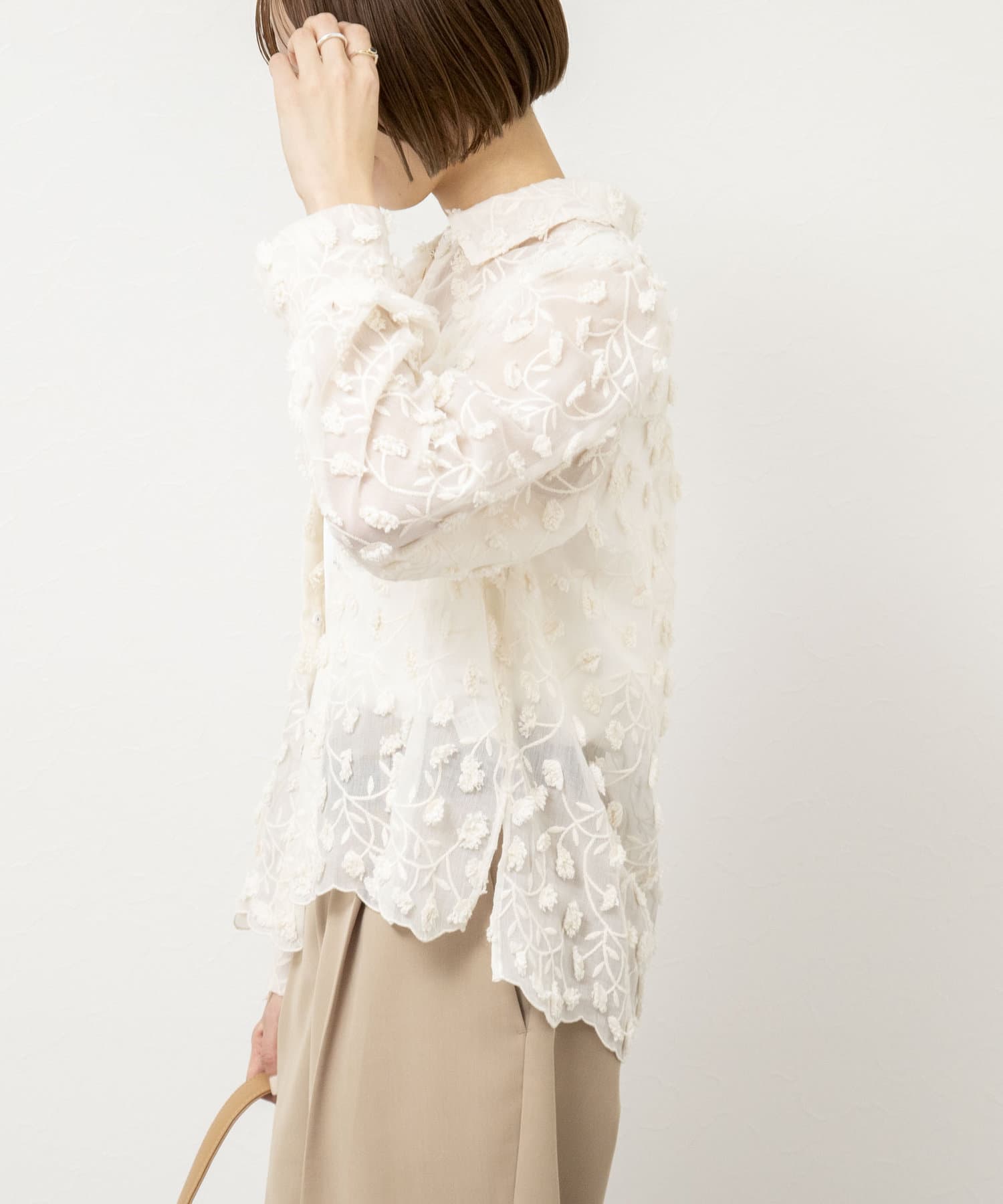 • NOLLEY'S(ノーリーズ) ウォッシャブルチュール刺繍衿付きブラウス