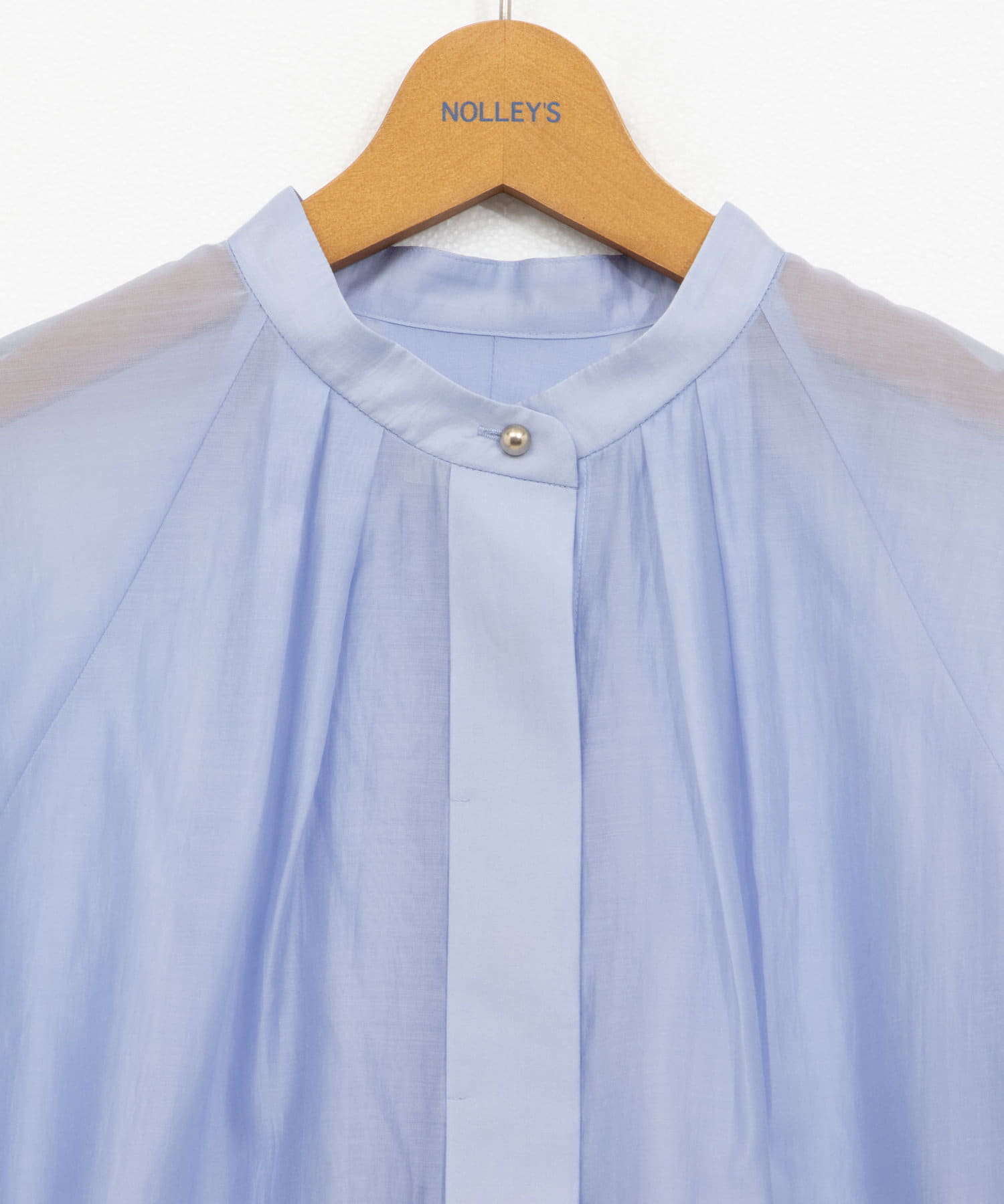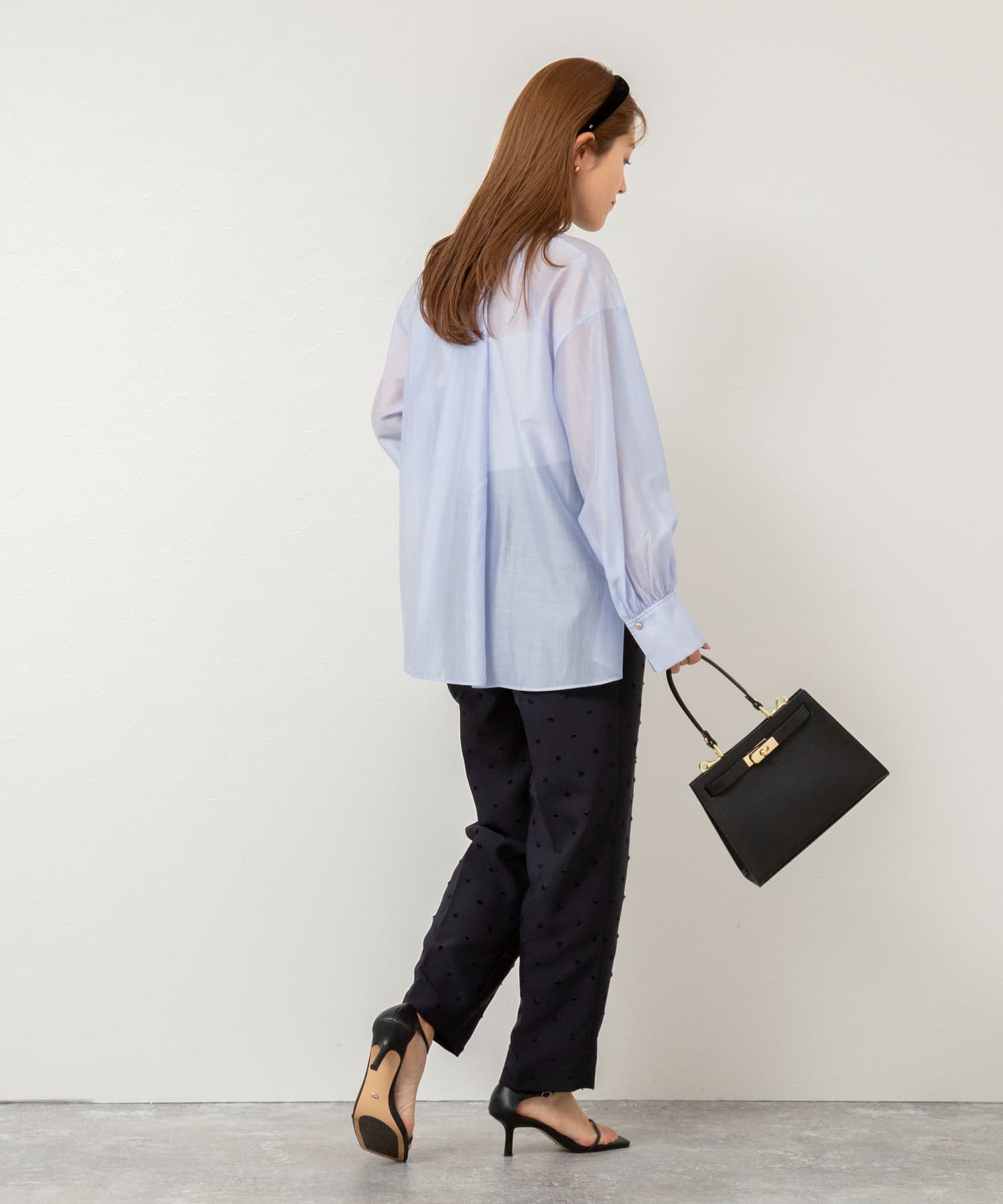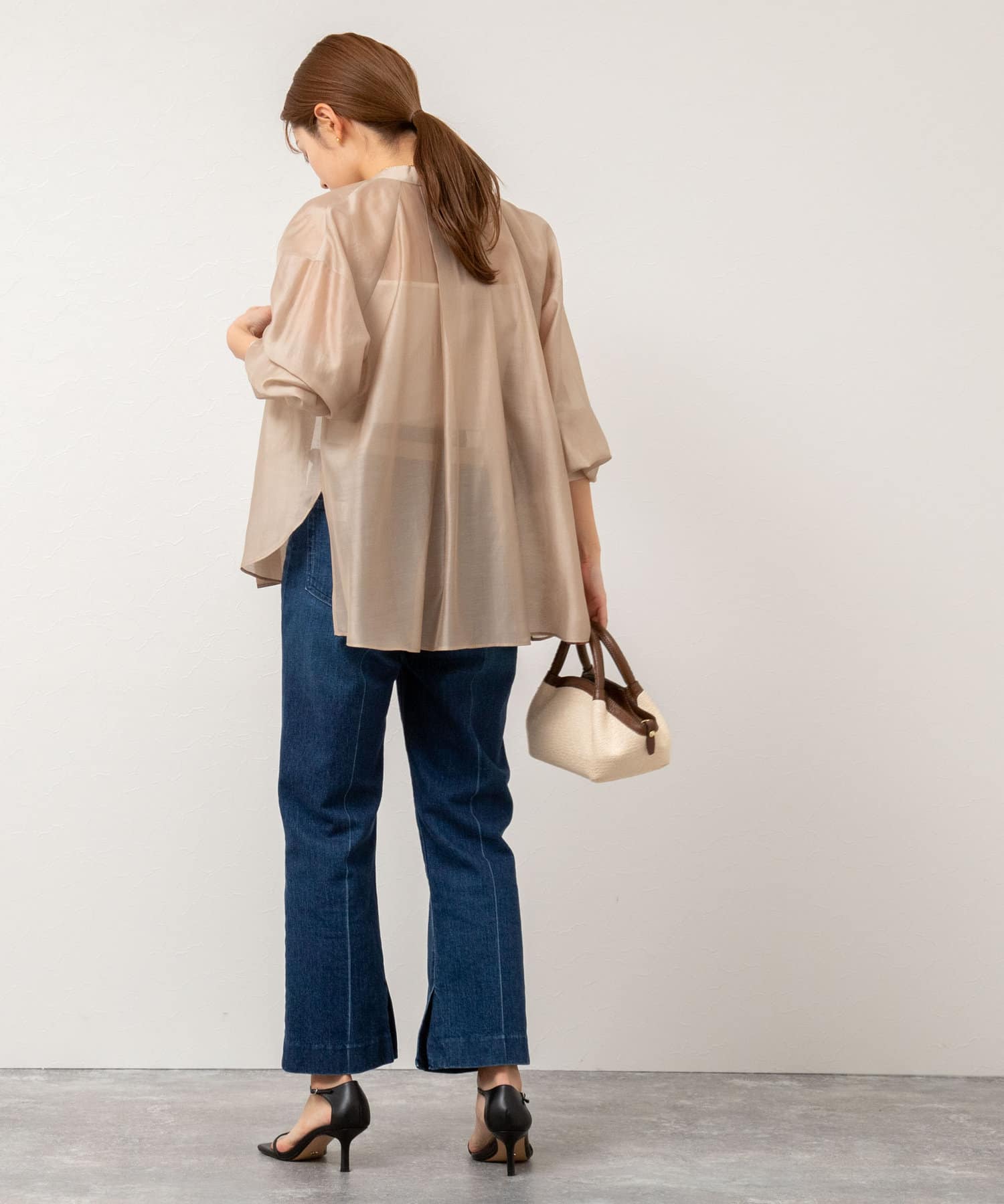 ・シアー素材の特徴でもある重なり部分の色の変化を利用して、前立てやタックの幅、デザイン切り替えを入れるなど細かいディテールにこだわった1枚