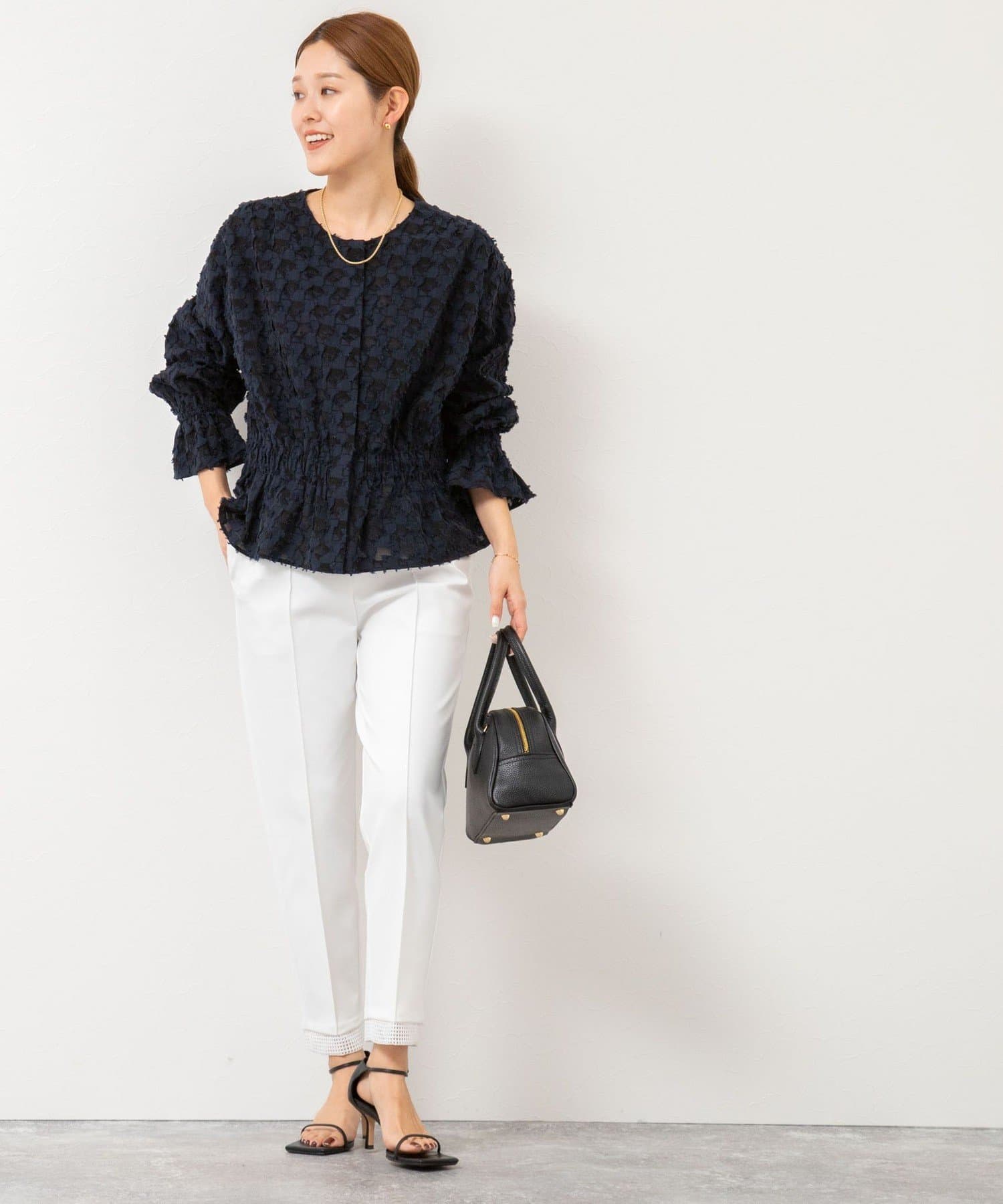 ・釦が隠れたデザインのため、前を閉めて1枚でブラウスとしての着用が可能