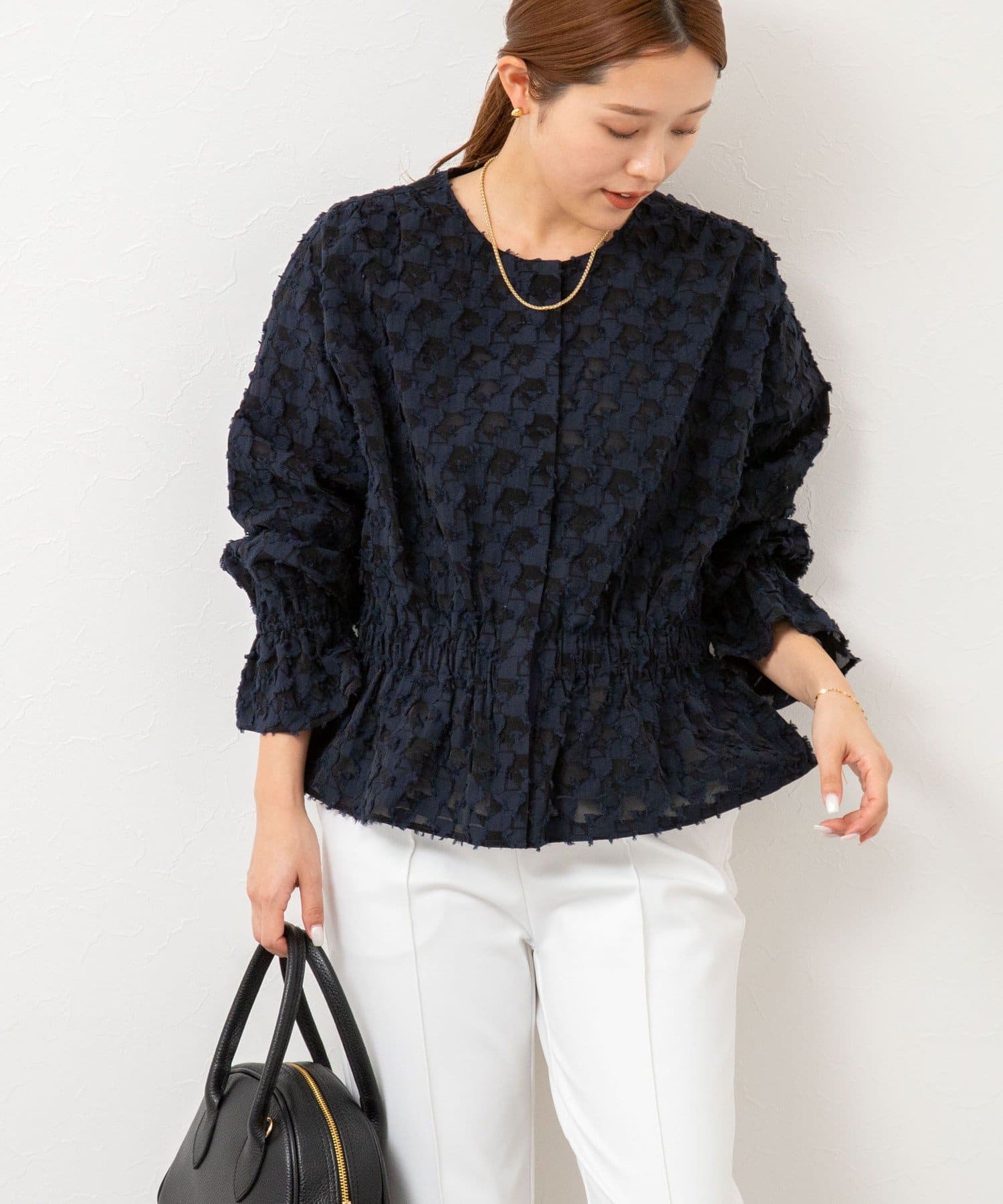 ジオメトリックジャガードブラウス