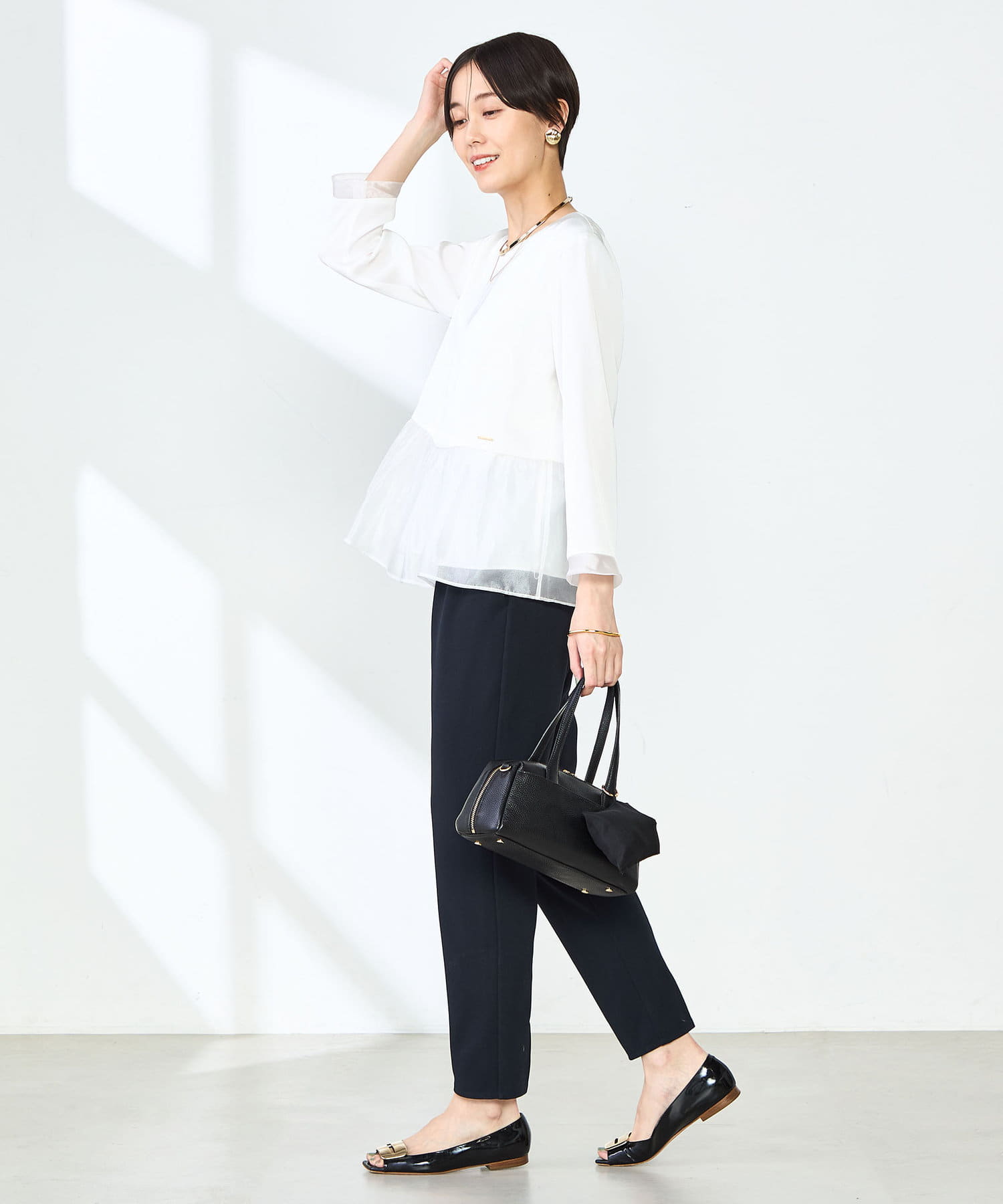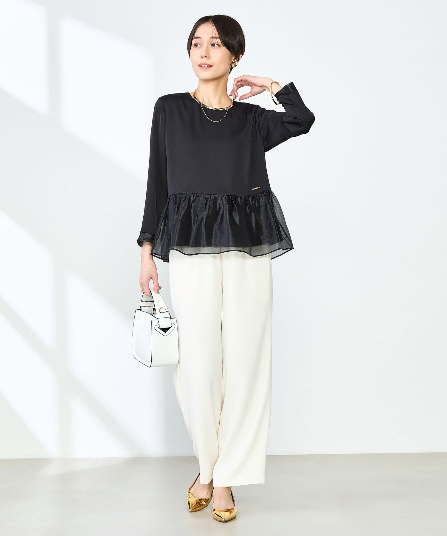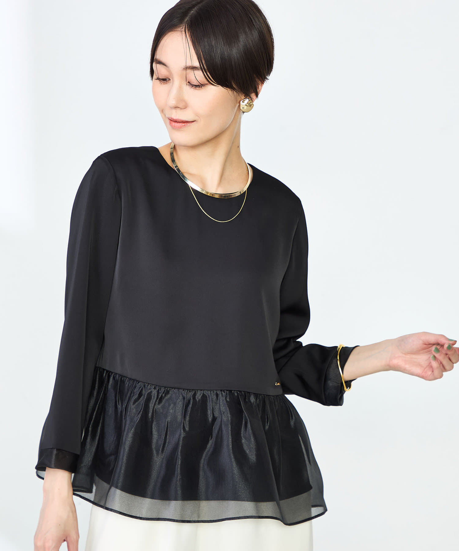 ・オトナサテンにオーガンジーをドッキングさせたブラウス