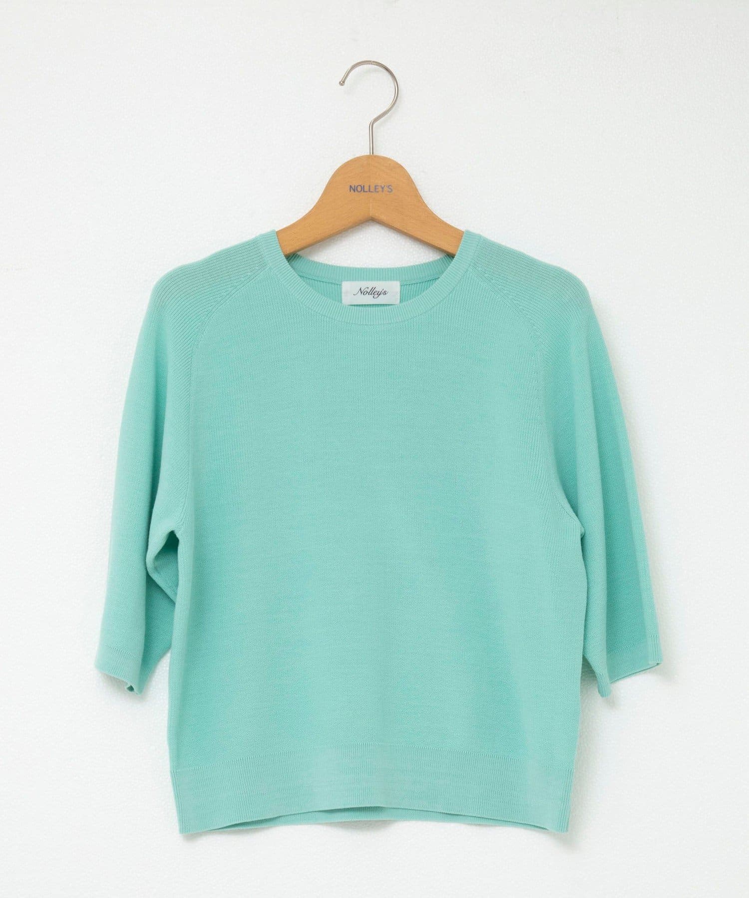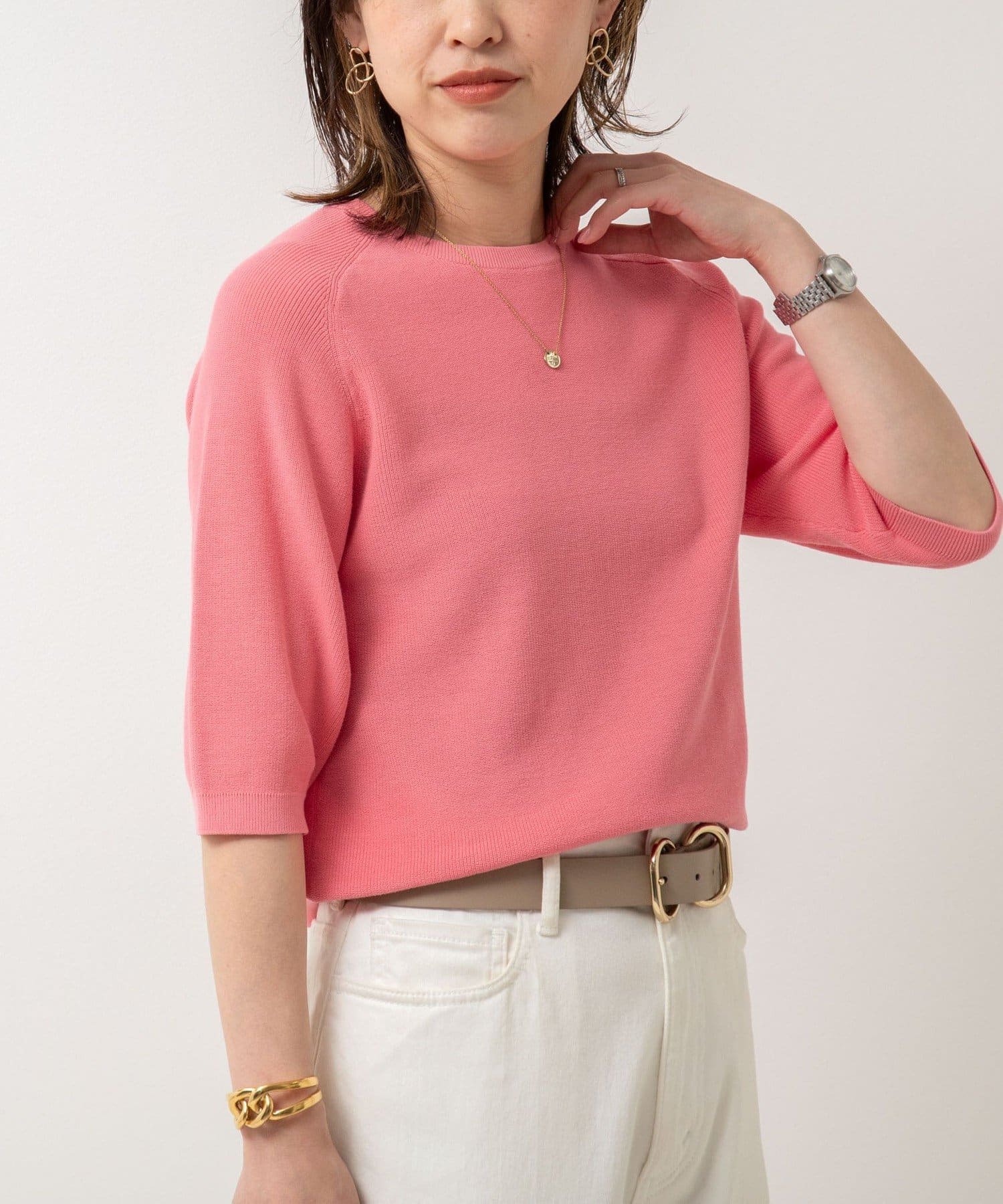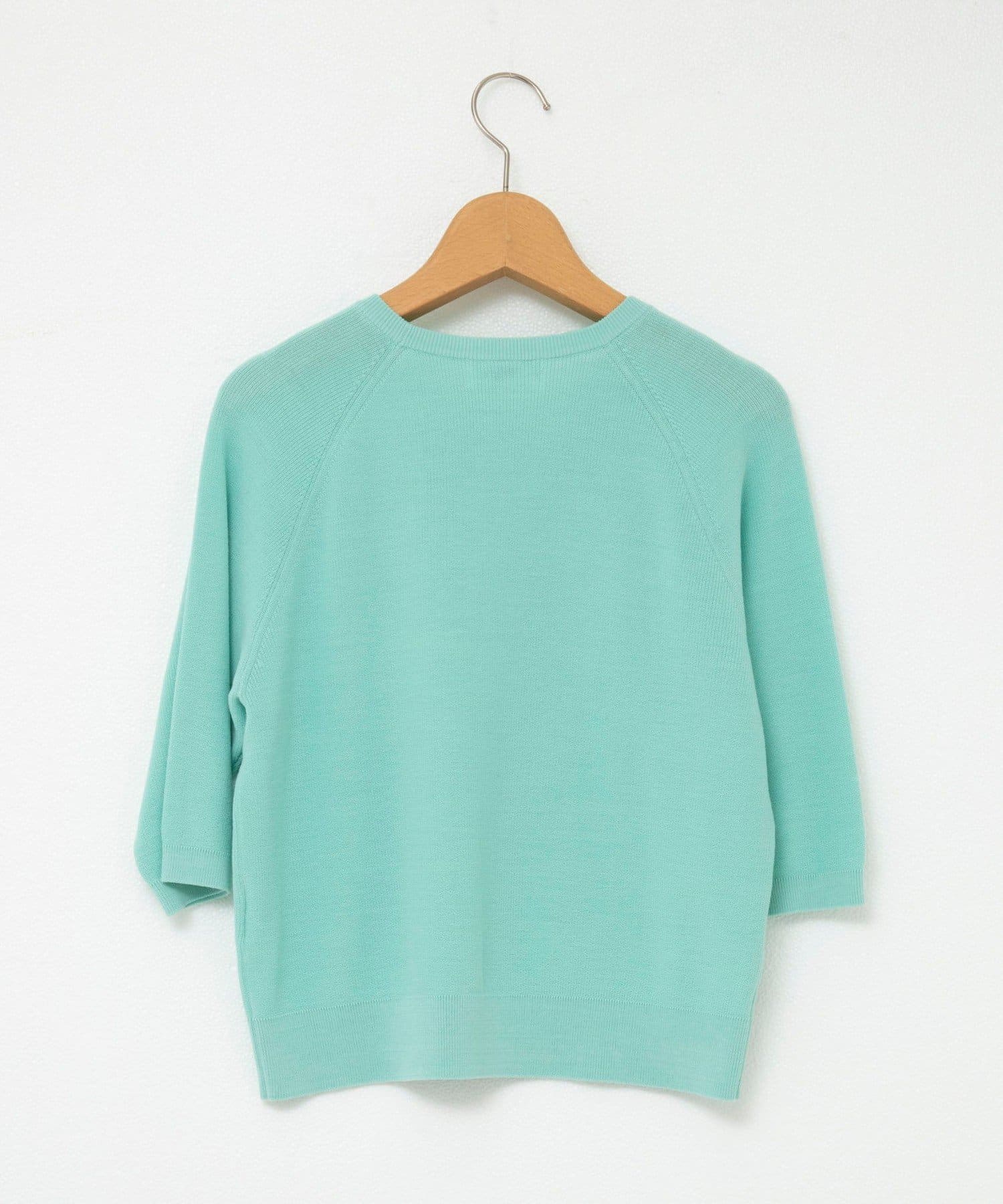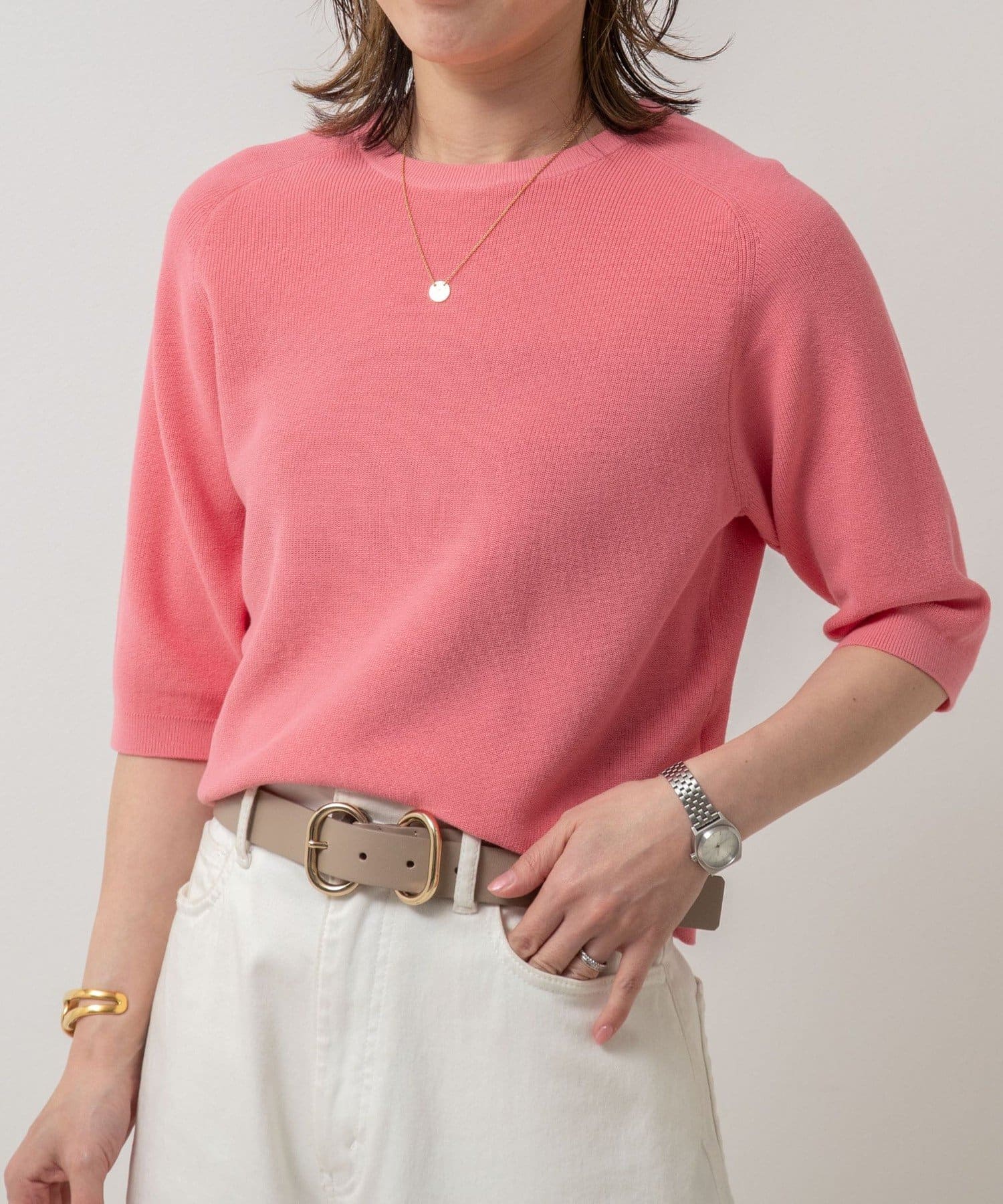 《アンサンブル対応》《手洗い可能》コットン片畦5分袖プルオーバーニット