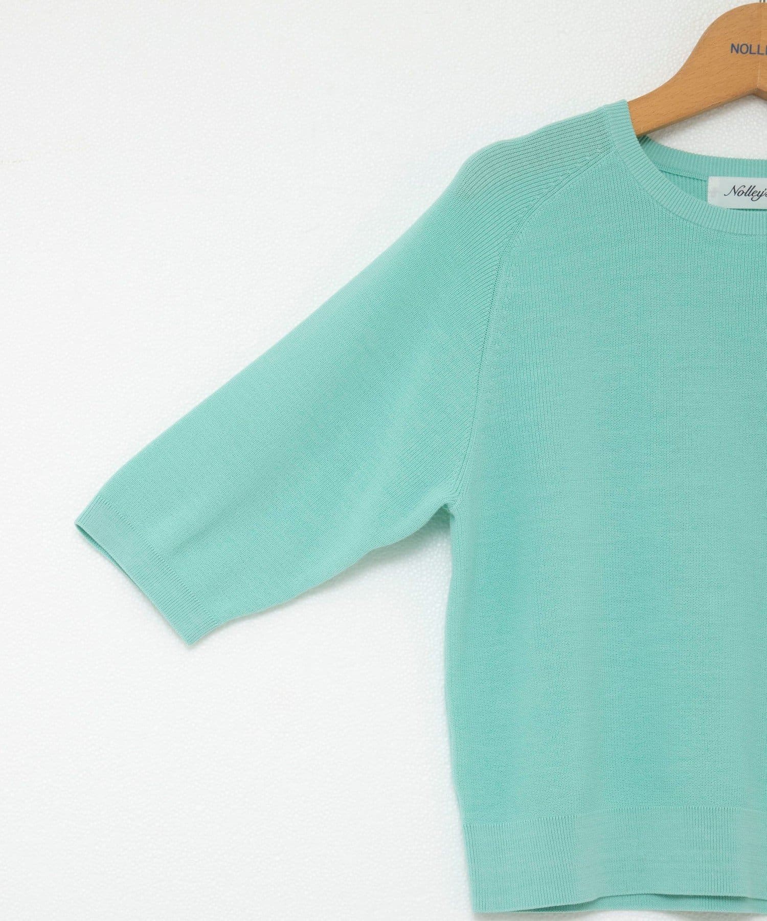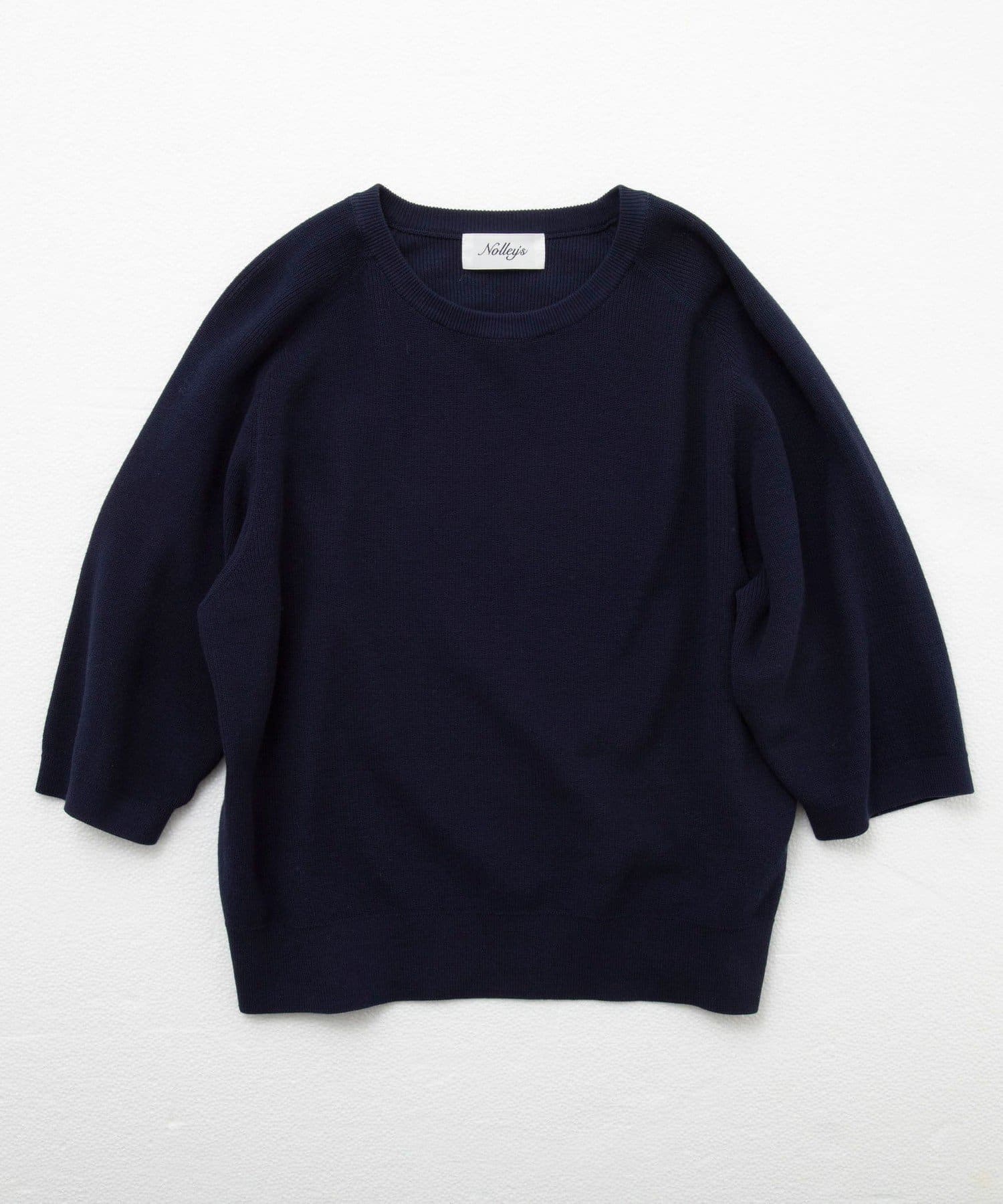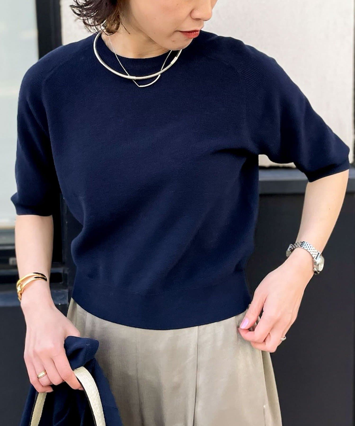 《アンサンブル対応》《手洗い可能》コットン片畦5分袖プルオーバーニット