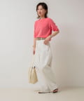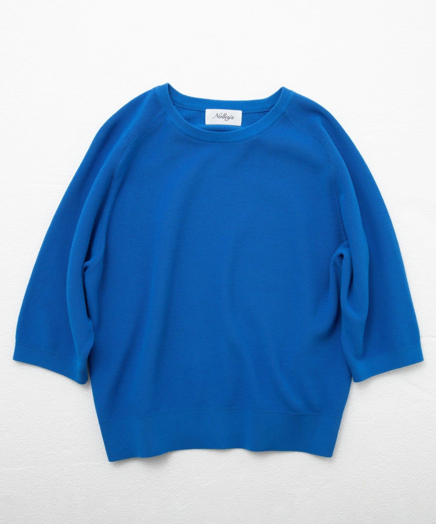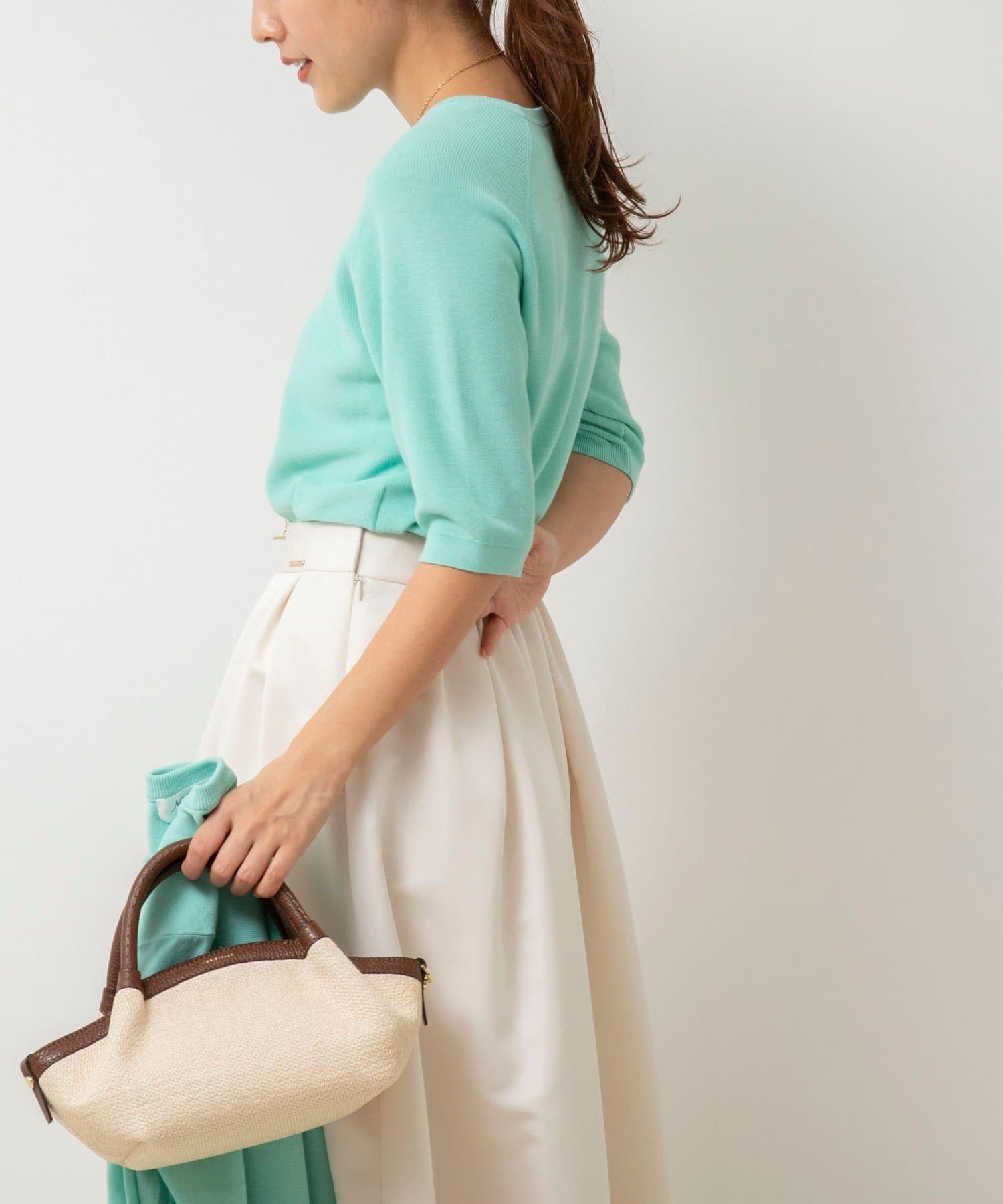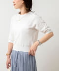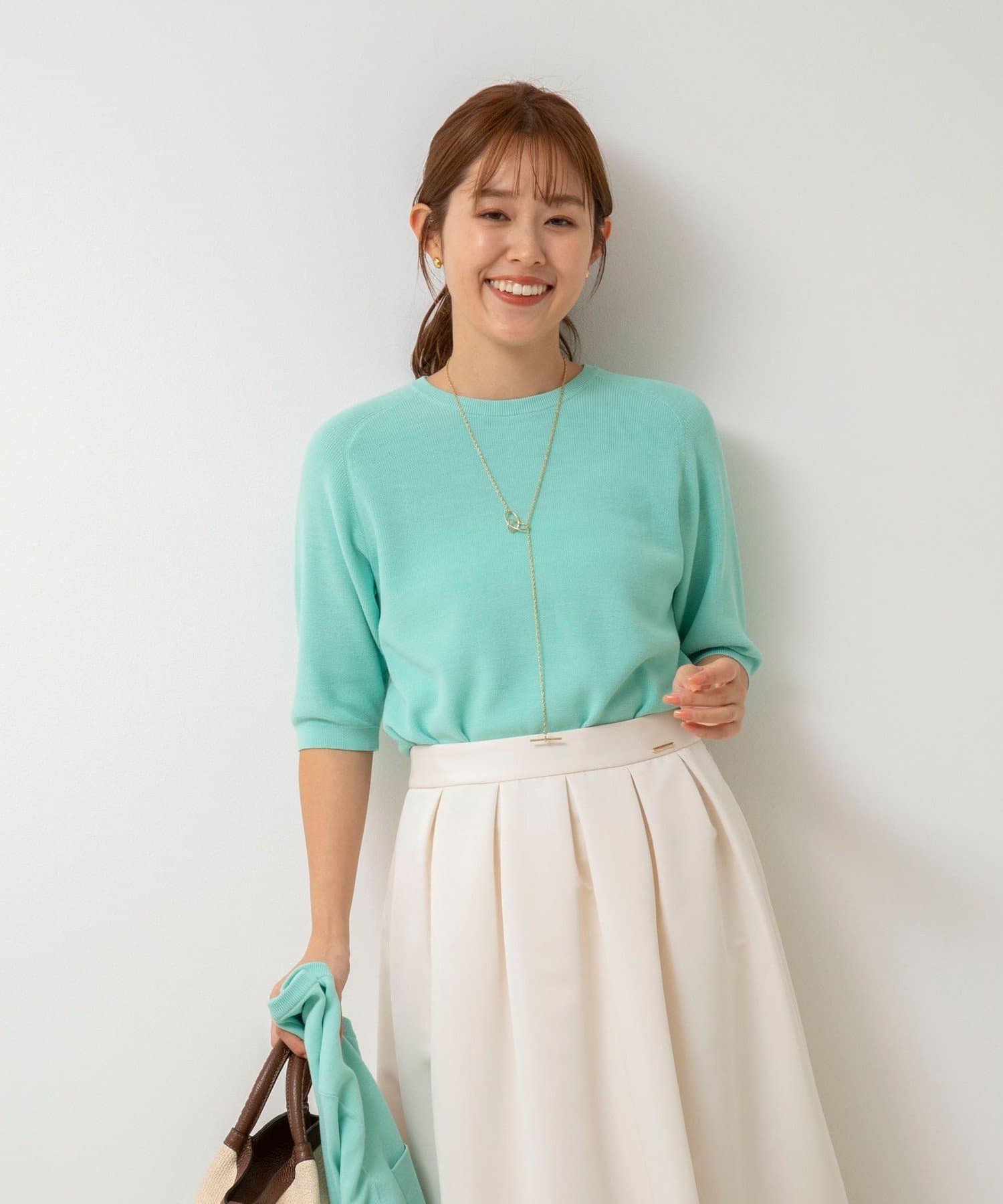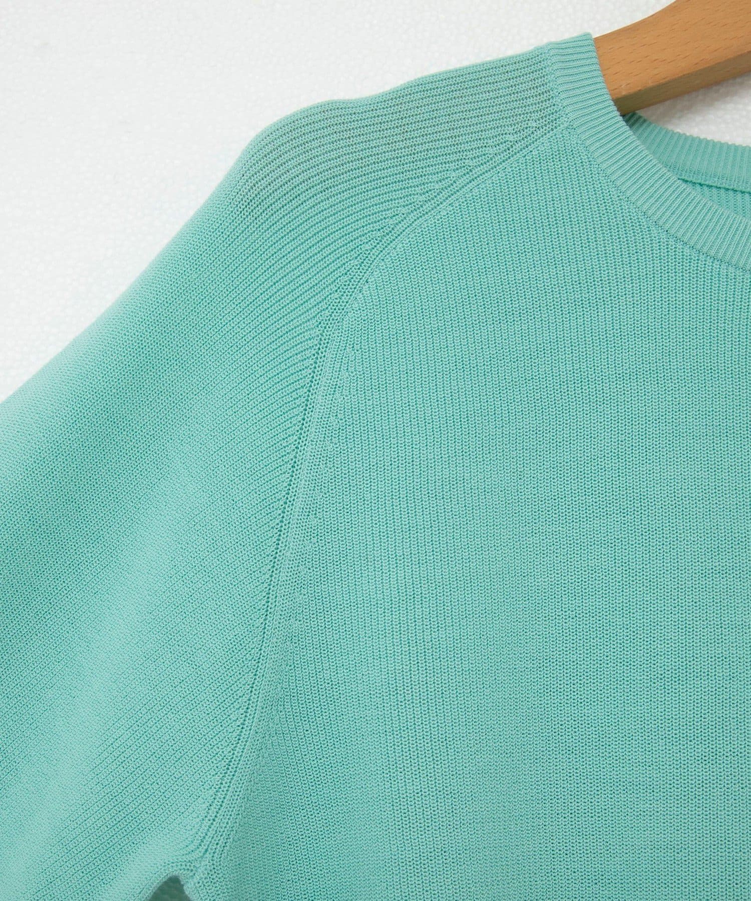 《アンサンブル対応》《手洗い可能》コットン片畦5分袖プルオーバーニット