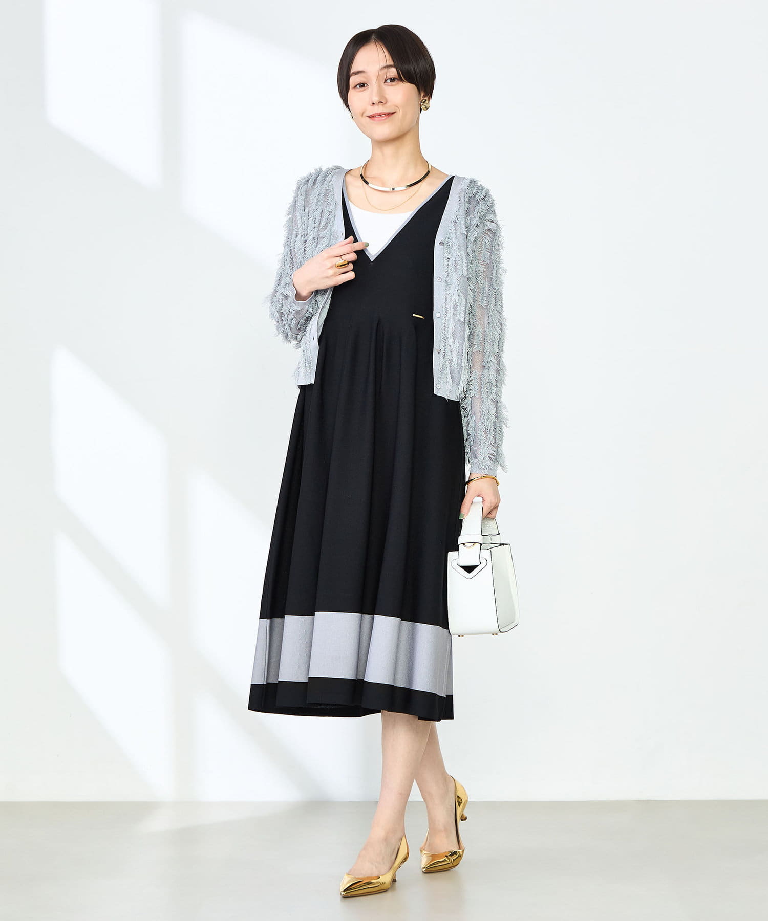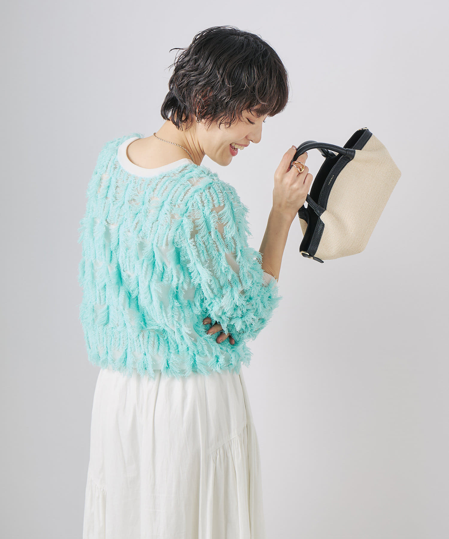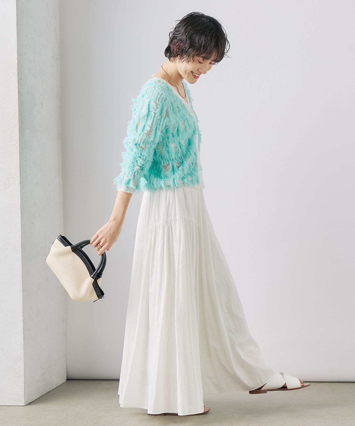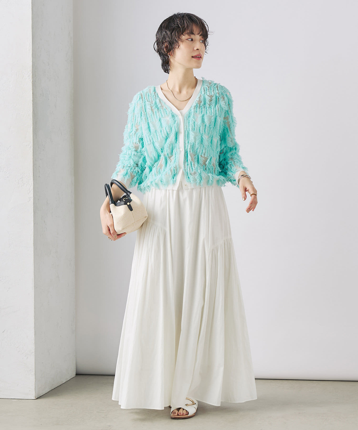 ・爽やかさと華やかさのあるカットフリンジのVネックカーディガン