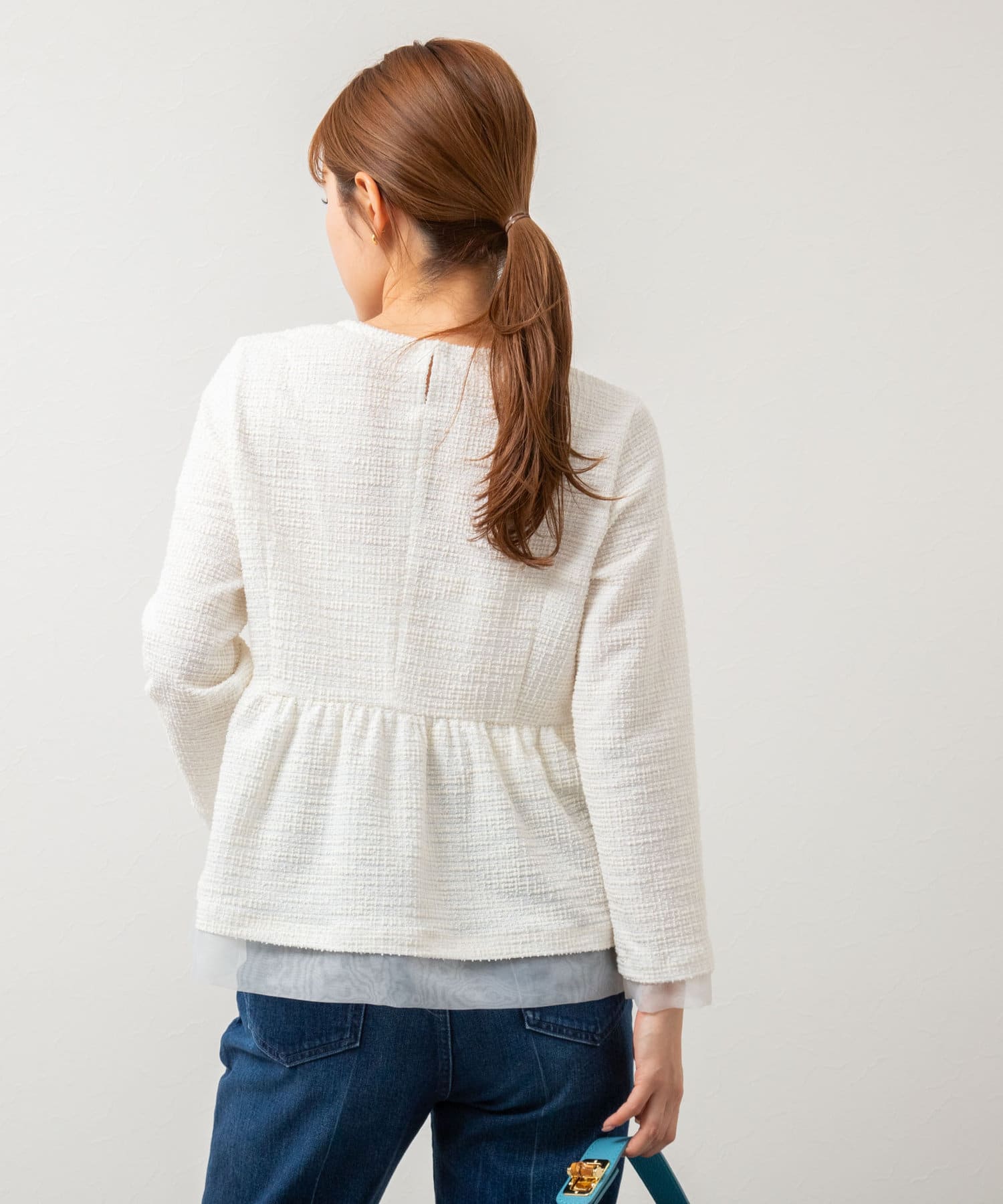 ・袖口と裾をオーガンジーで切り替えてより軽やかさを演出