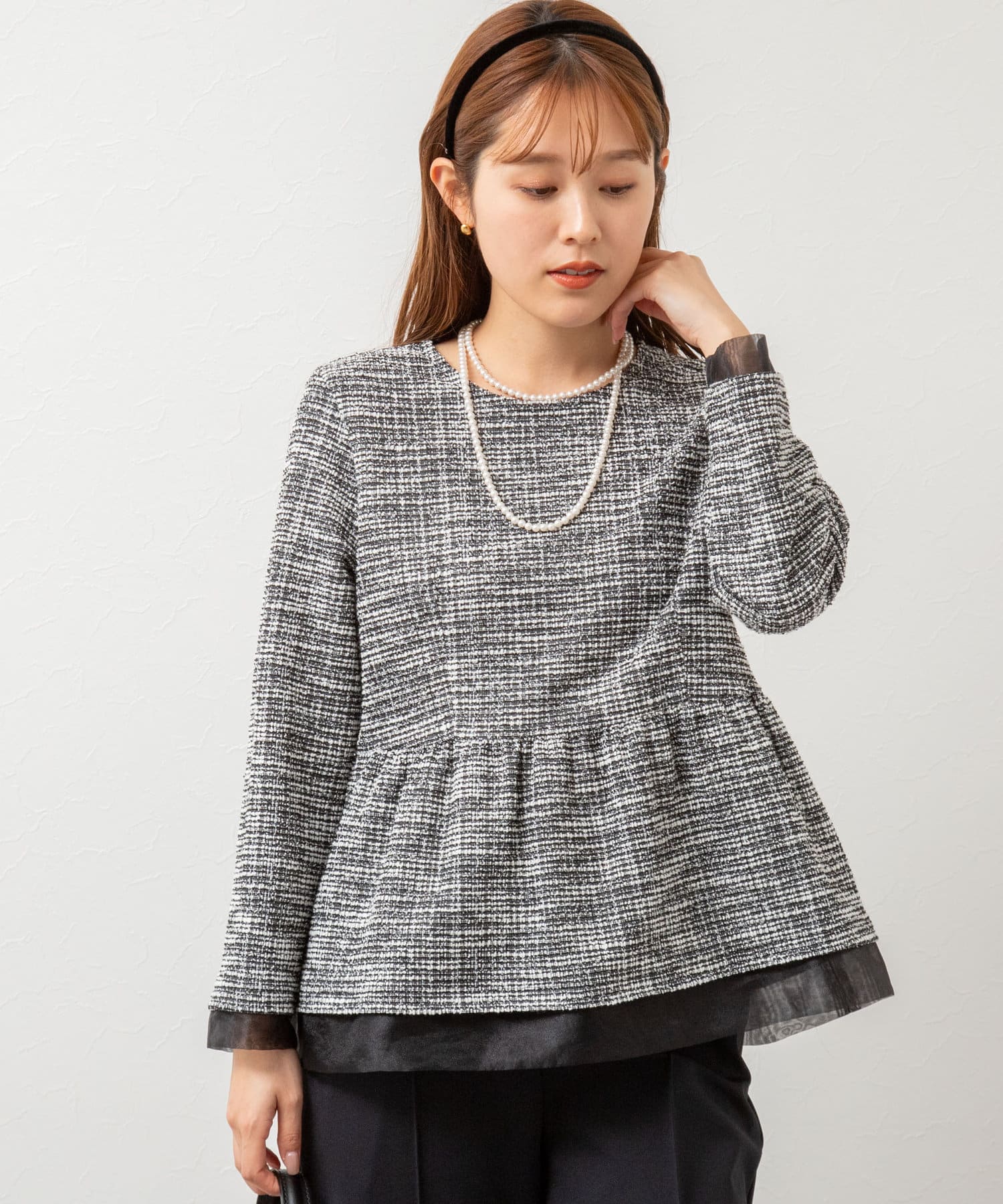 ・ツイードのような表面感のジャージを使用したきれいめプルオーバー