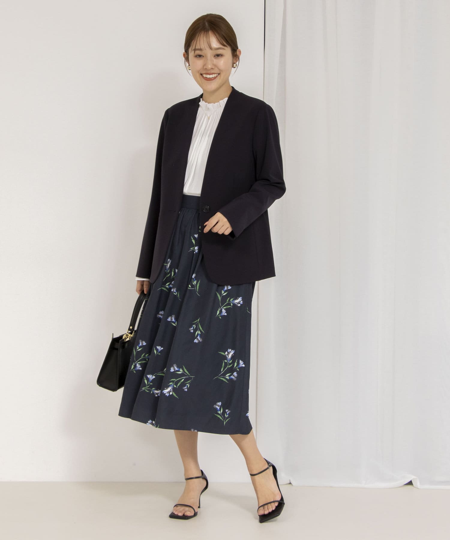 ・パンツスタイルに合わせやすいよう、少し長めの着丈に