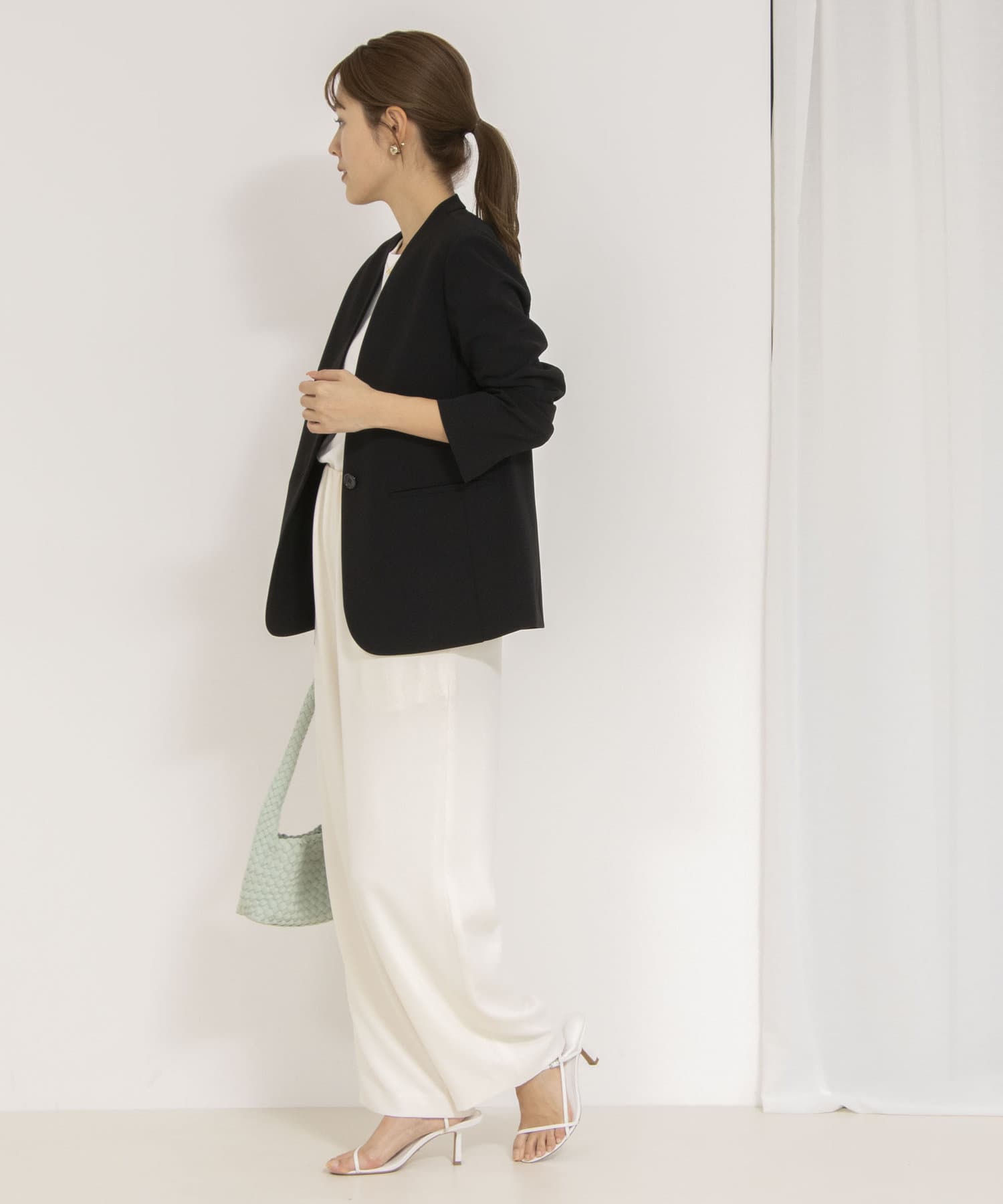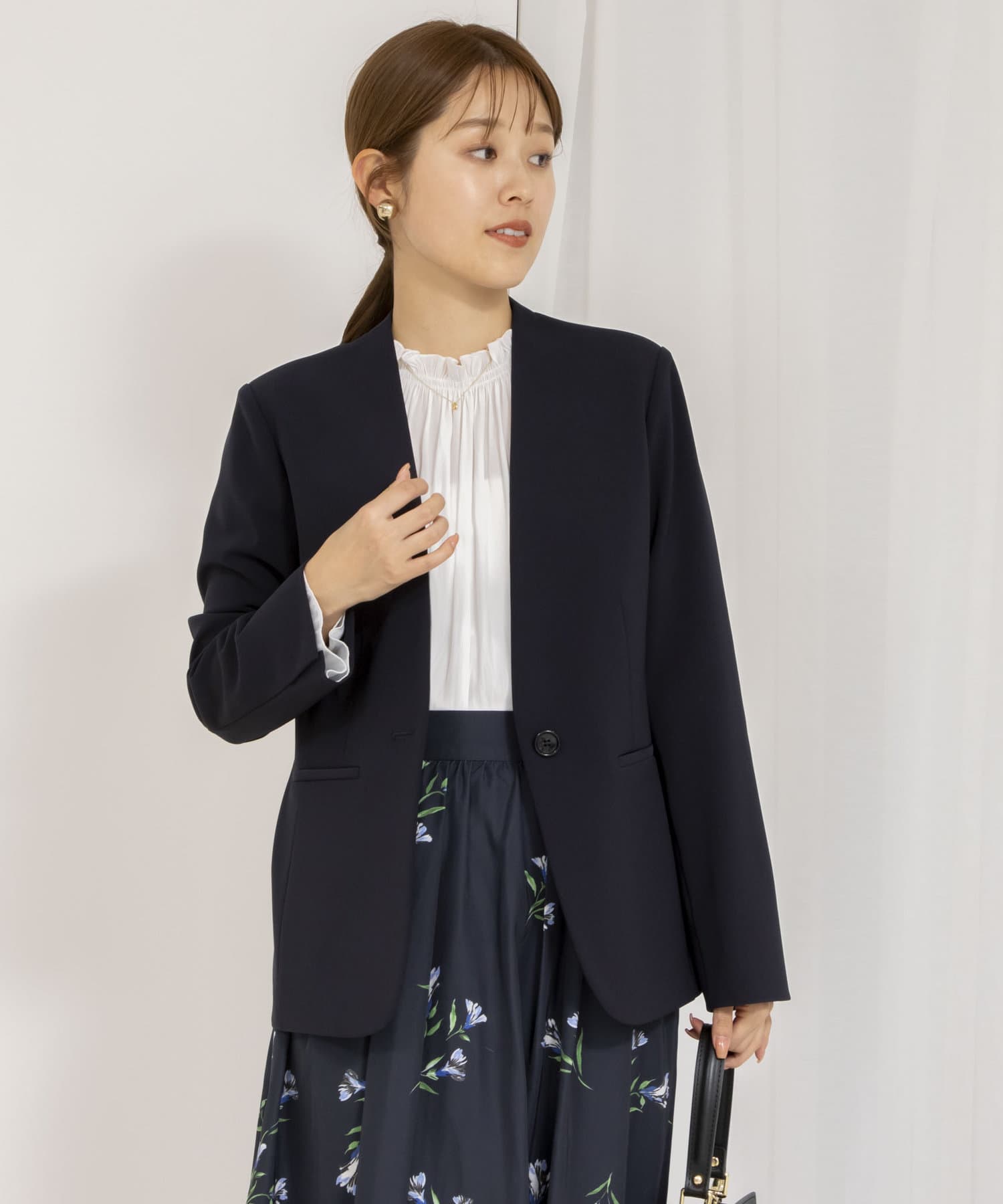 ・衿腰を付けたことにより、ジャケットのVラインがよりシャープに映えるデザインに