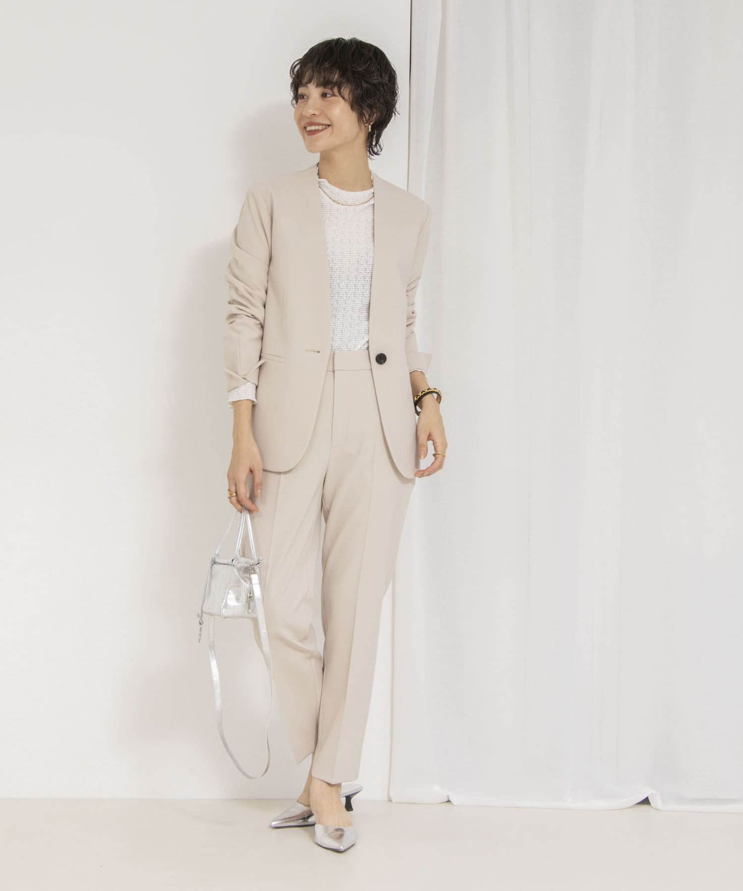 ・同シリーズのスリムパンツとセットアップ着用可能