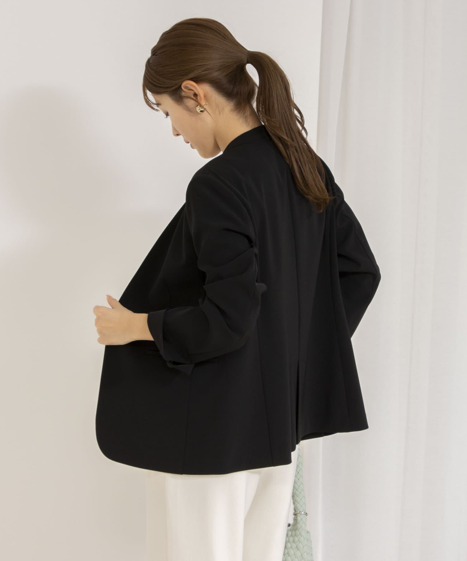 ・ストレッチ性に富んだ着心地抜群のダブルクロスシリーズのノーカラージャケット