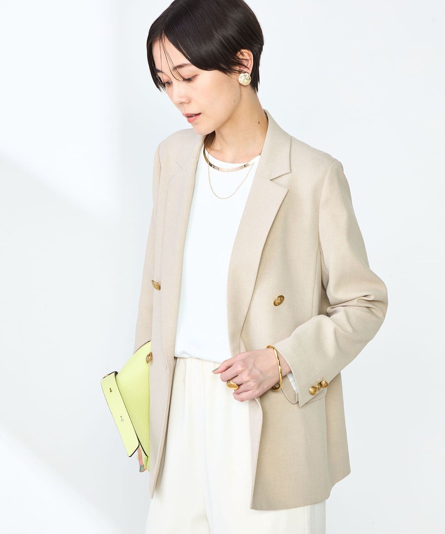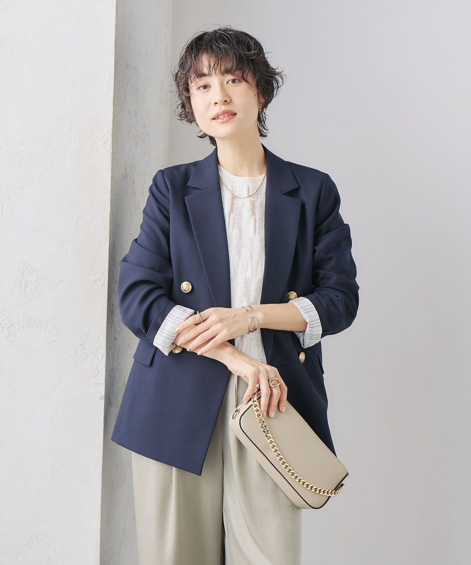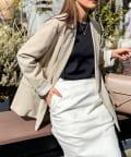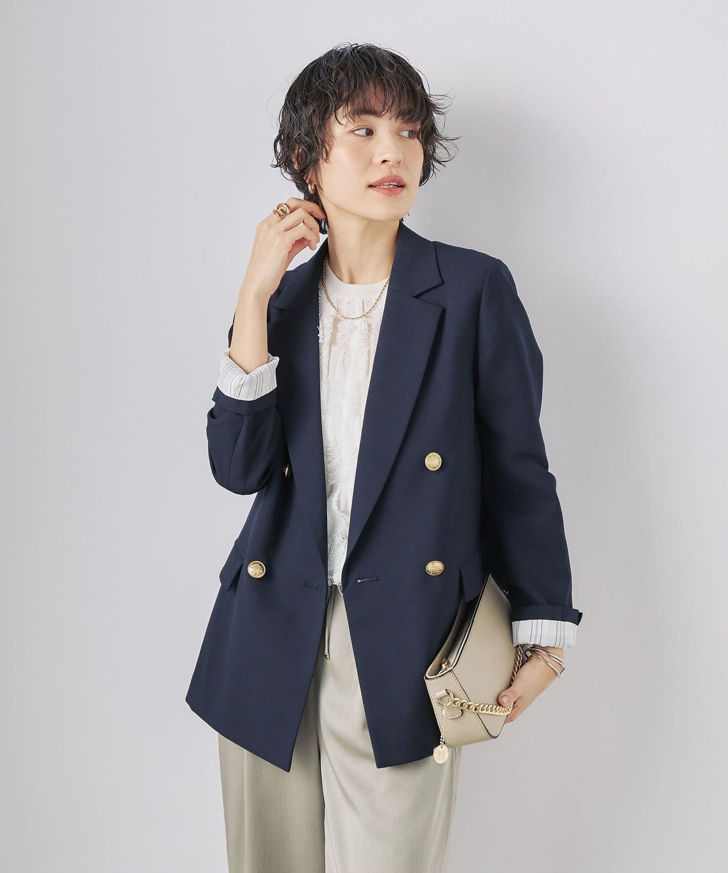 ・袖裏、背抜きの裏地付きで滑りも良く、素材自体にストレッチが効いているため、ストレスなくさらっと羽織れる1着