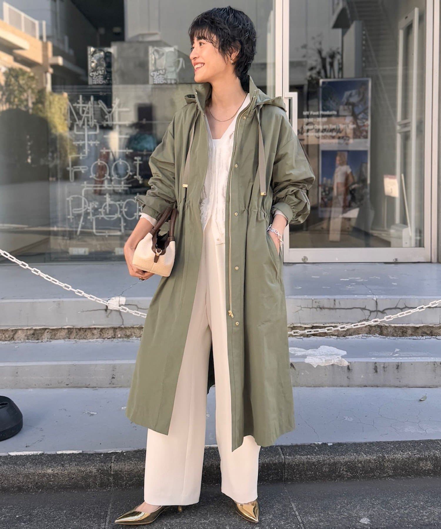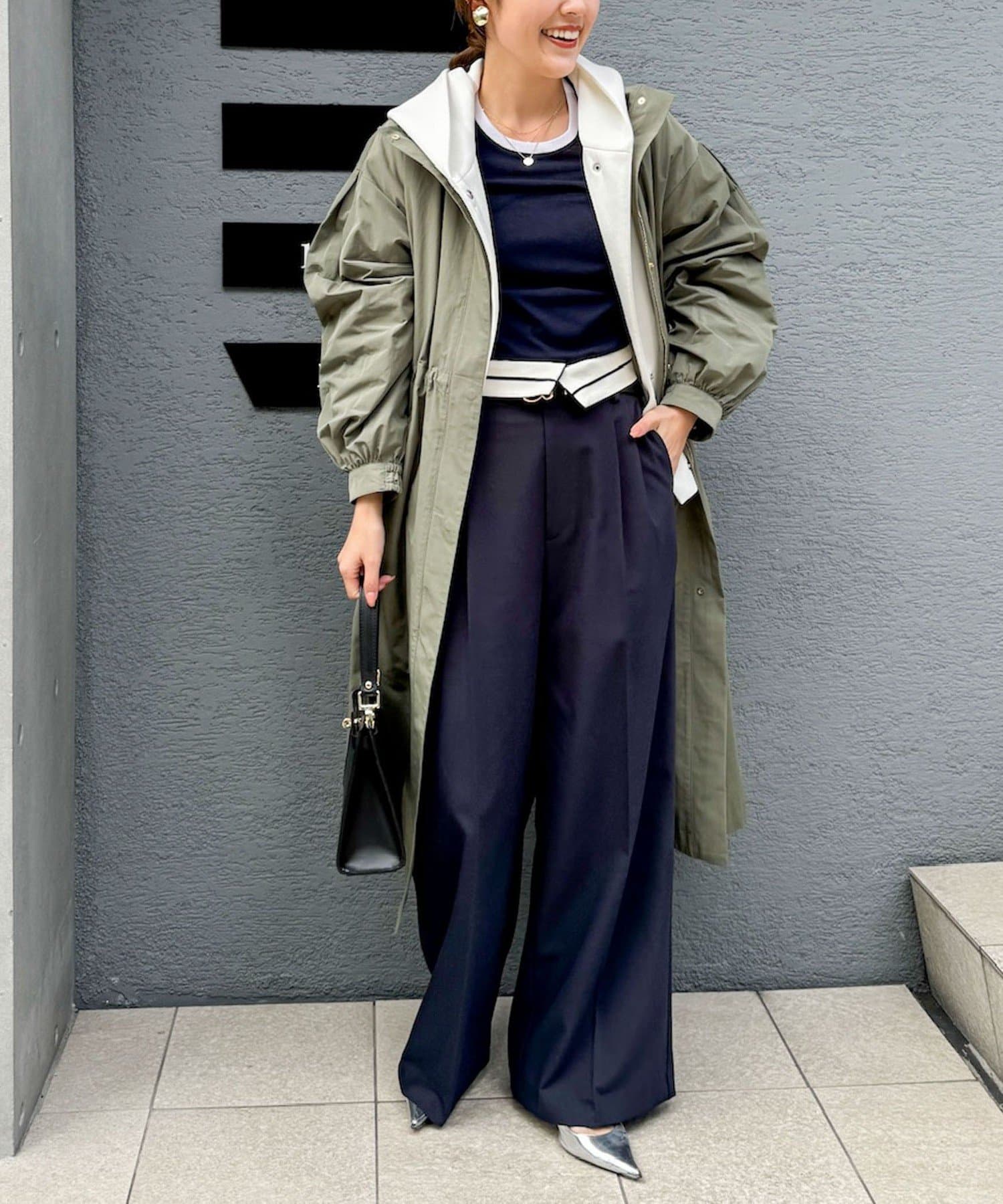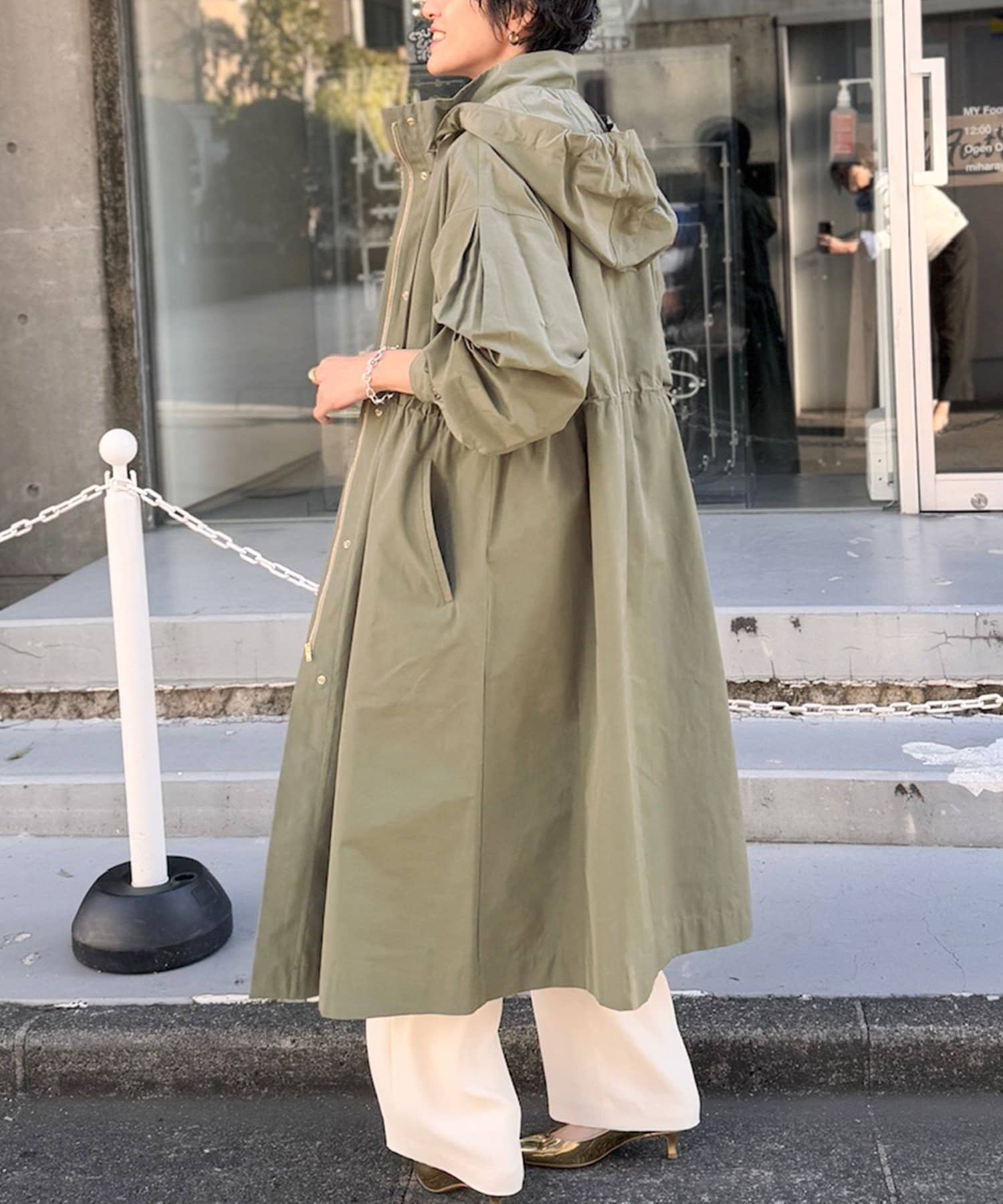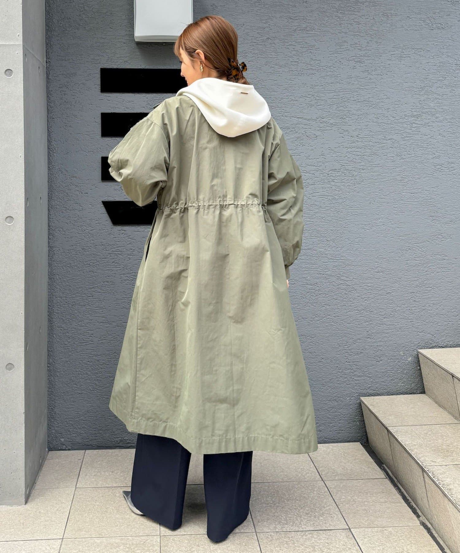 ・適度なハリ感でフォルムを出したフーテッドコート