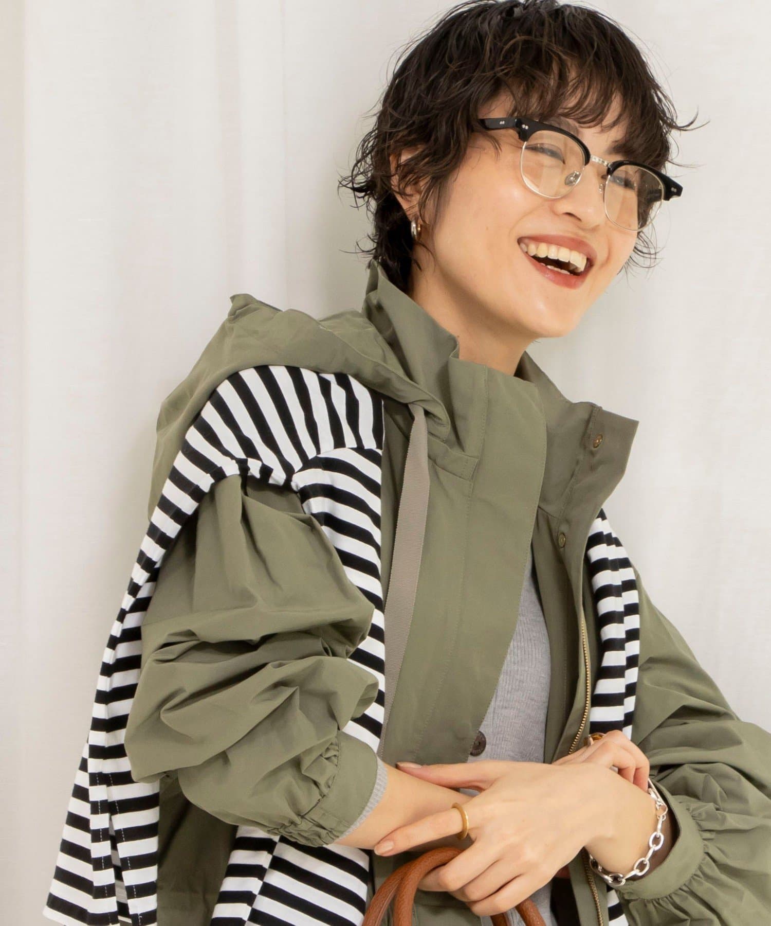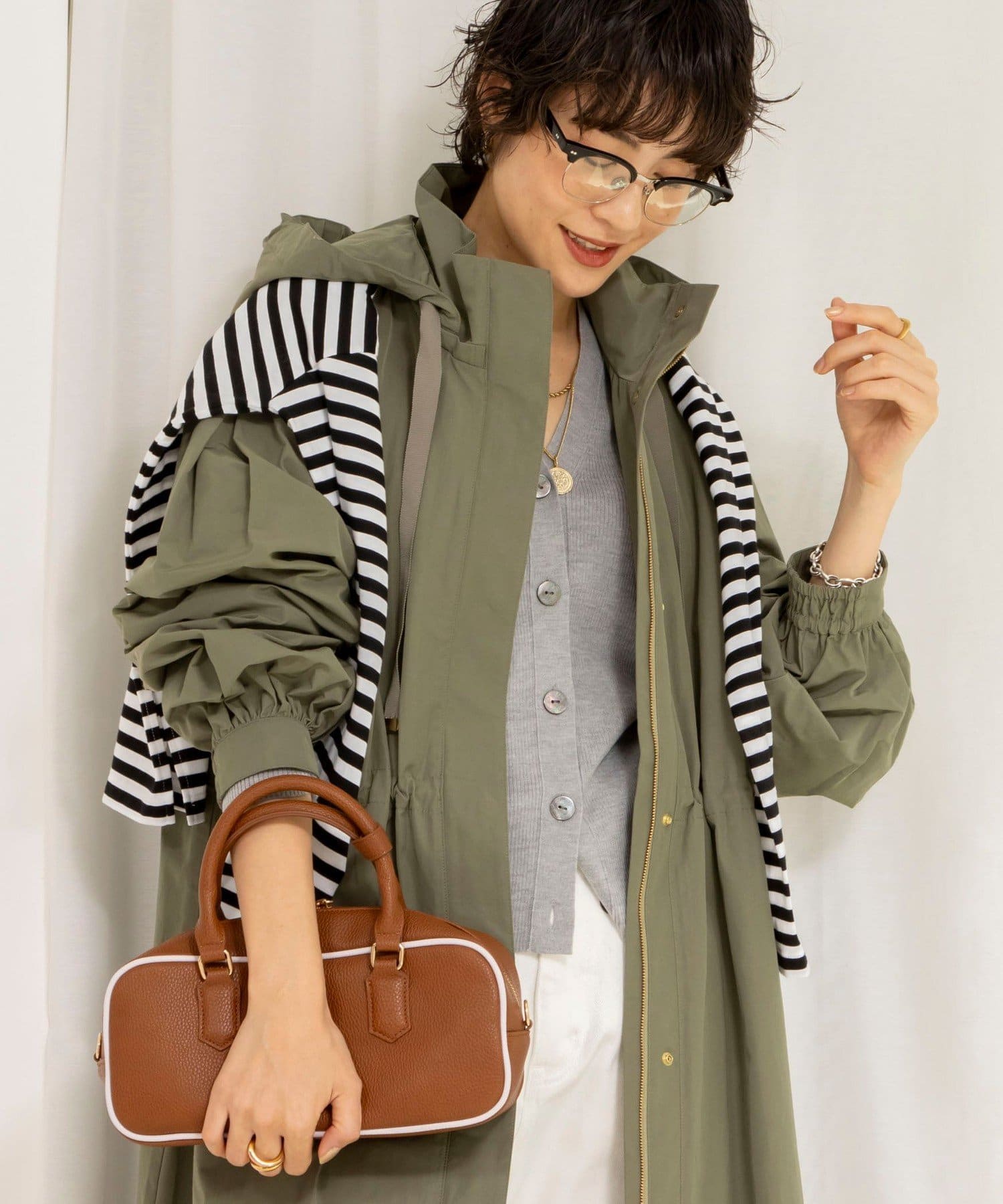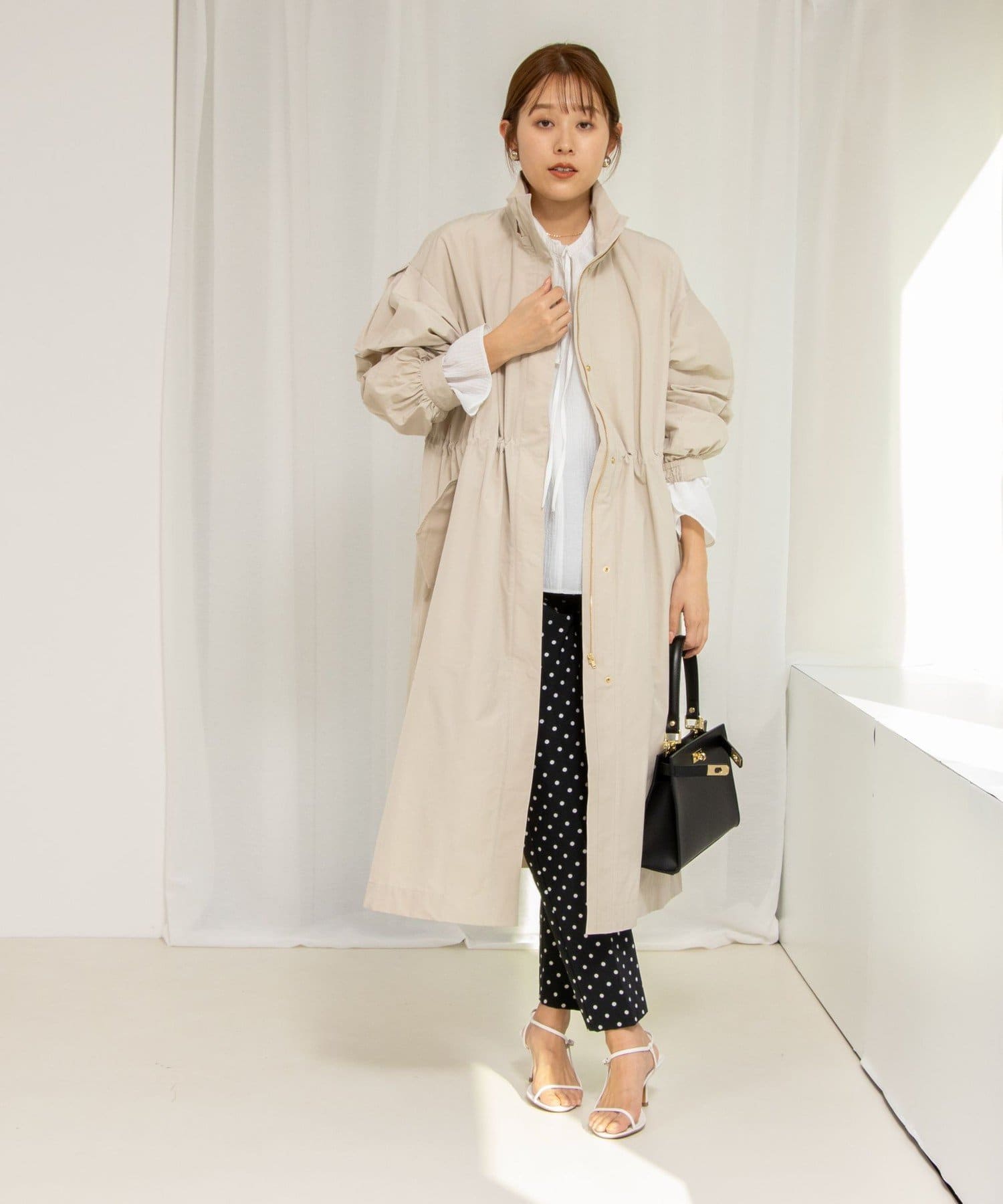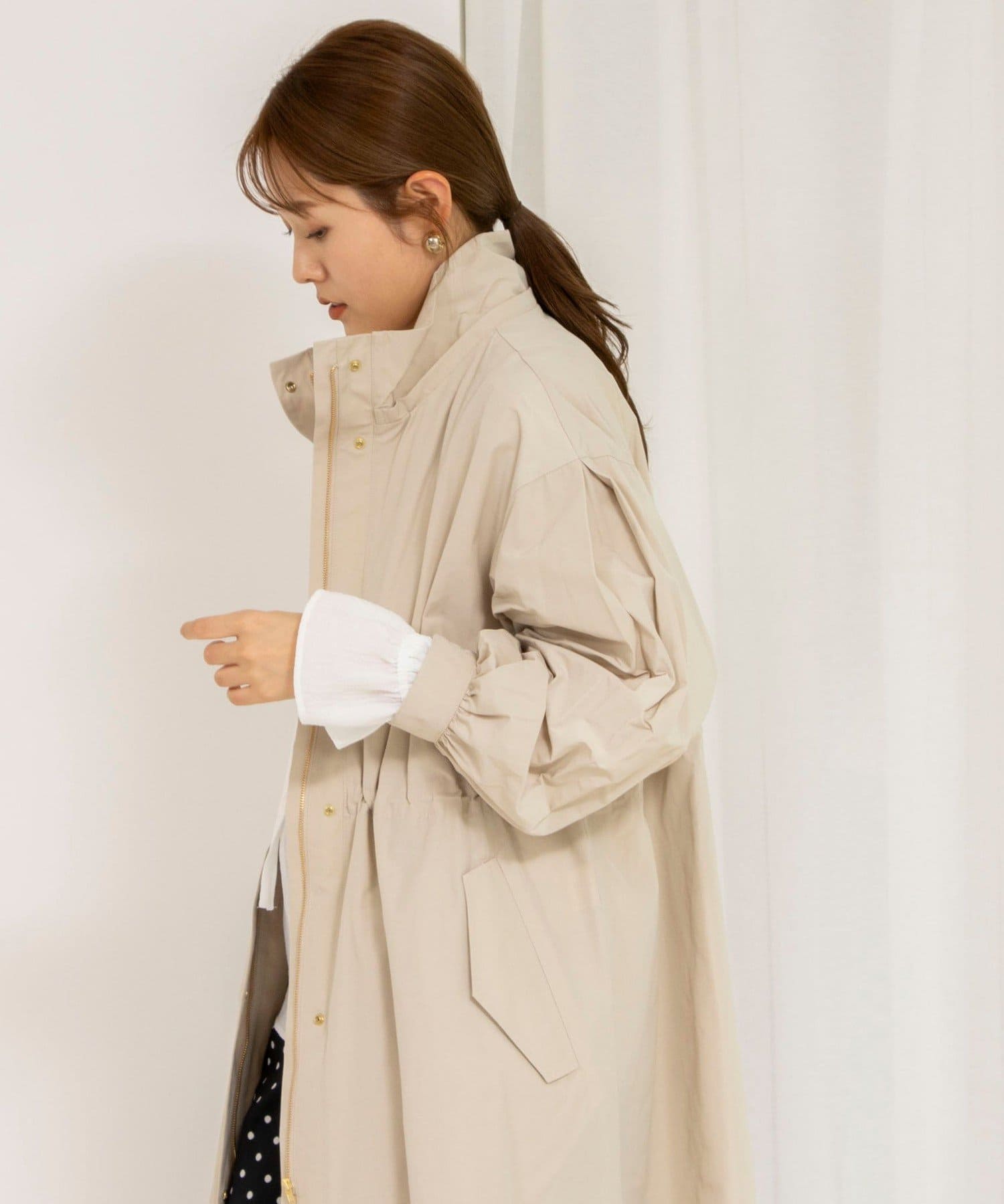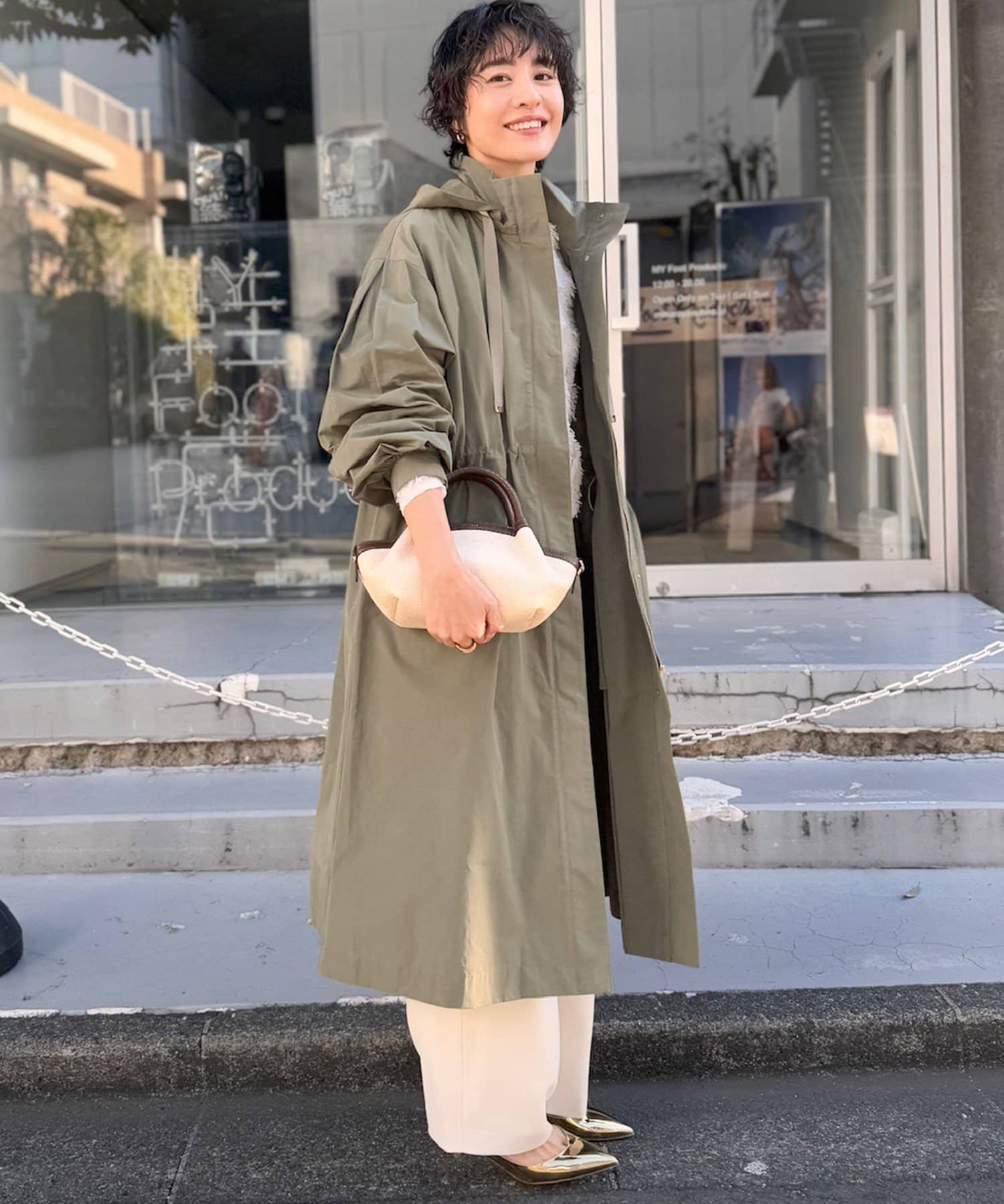 ・適度なハリ感でフォルムを出したフーテッドコート