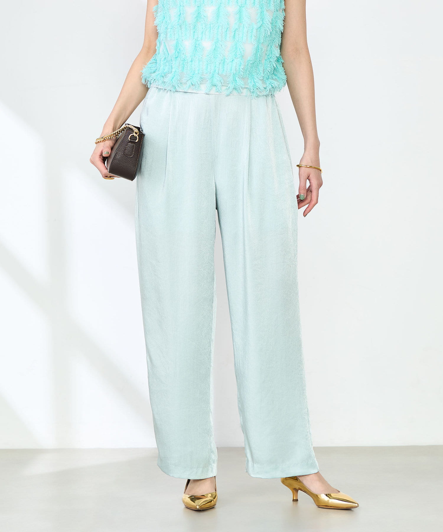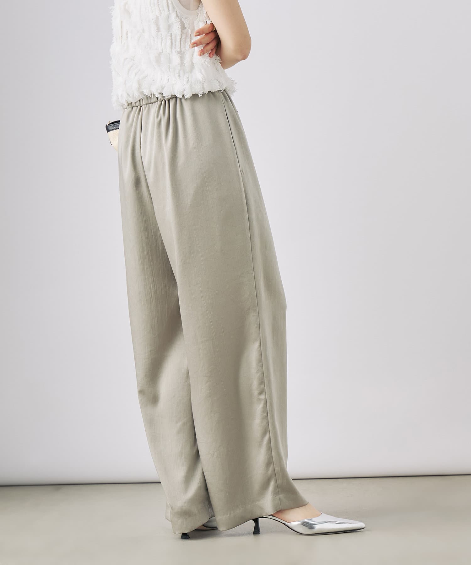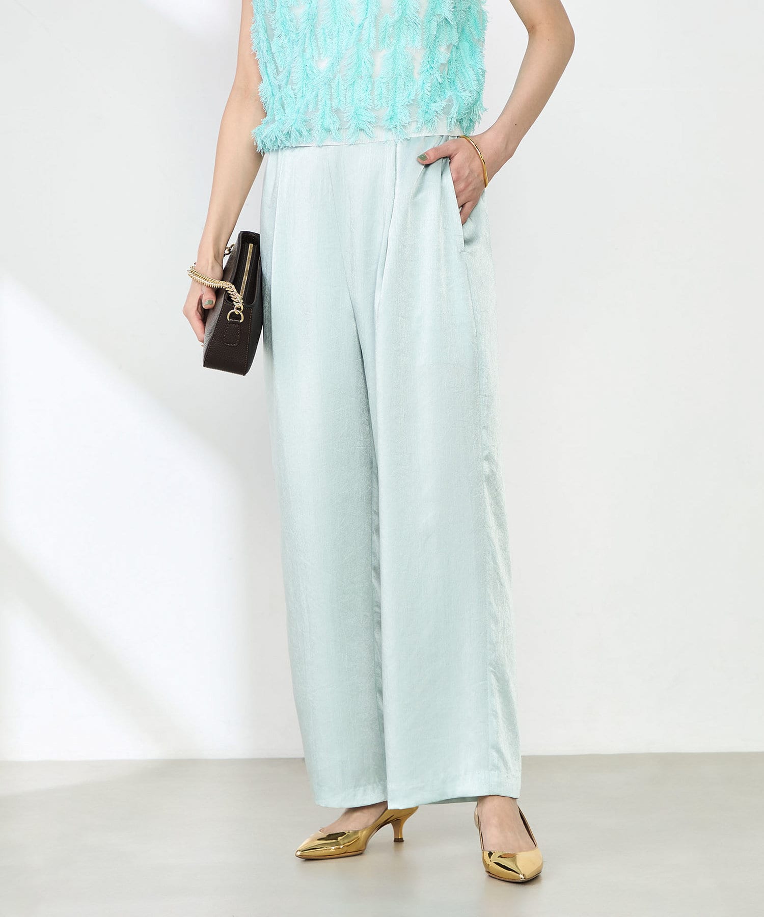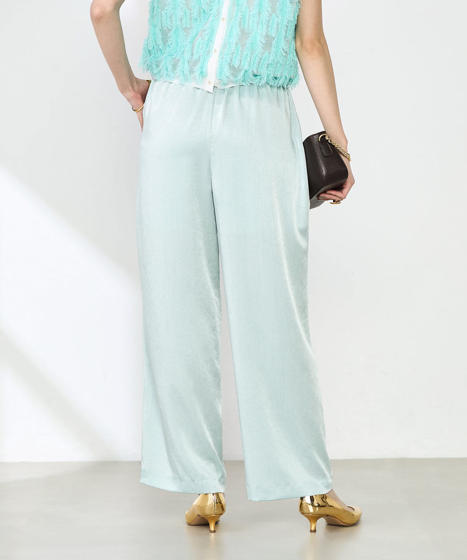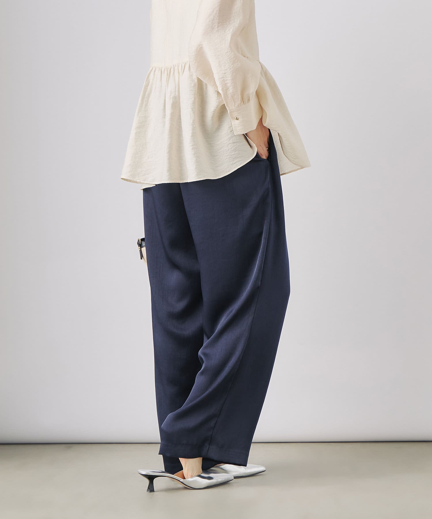 ・特殊縦シワ加工されたヴィンテージサテンを使用したセミワイドシルエットパンツ