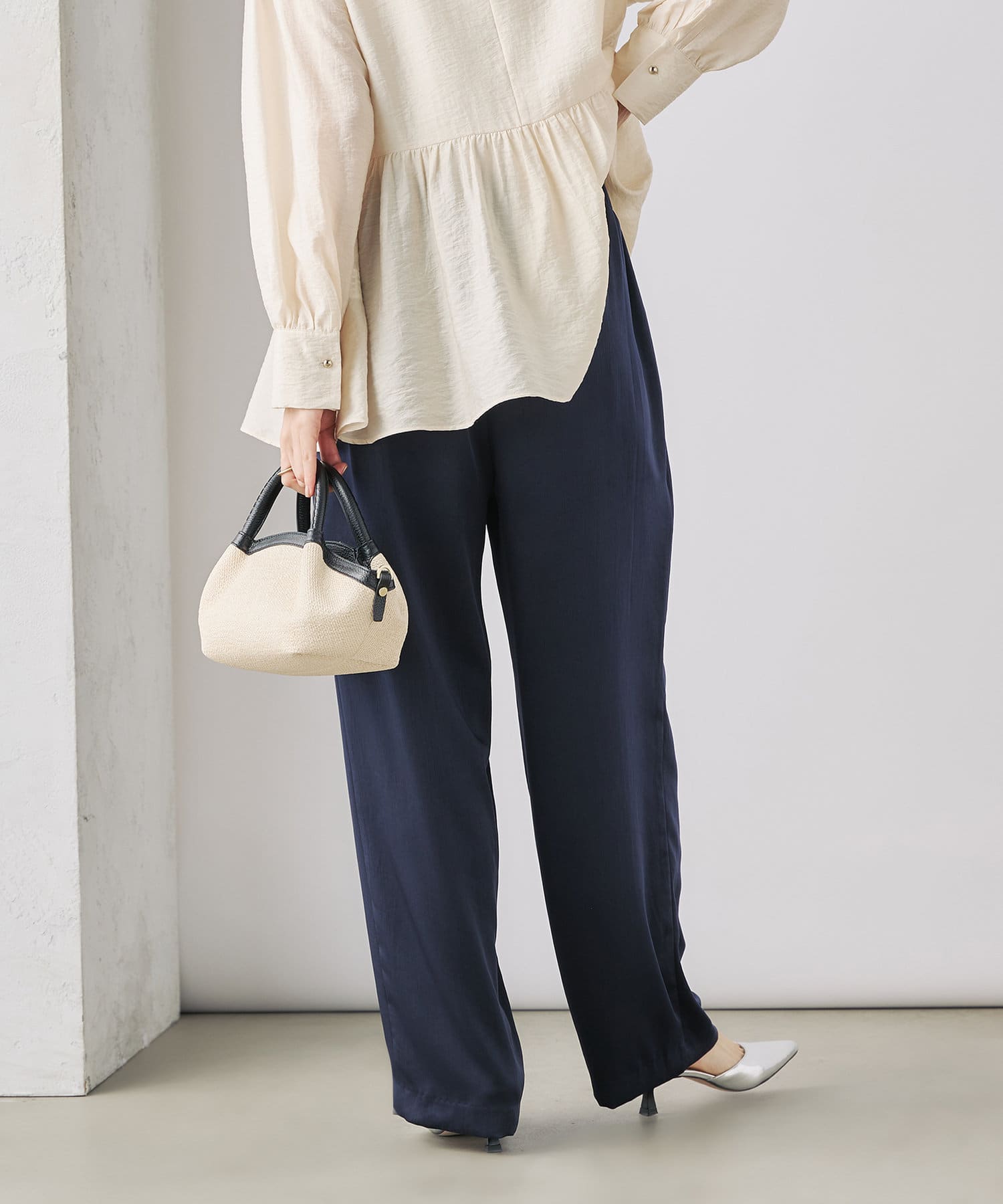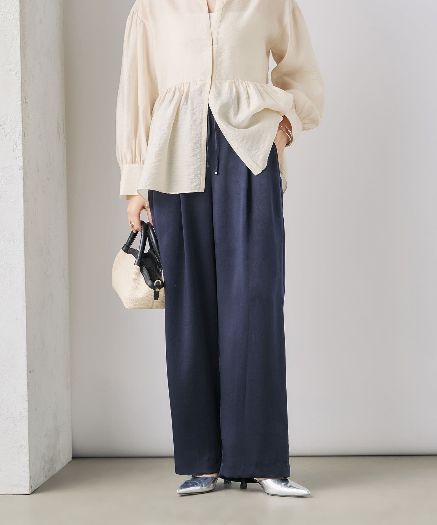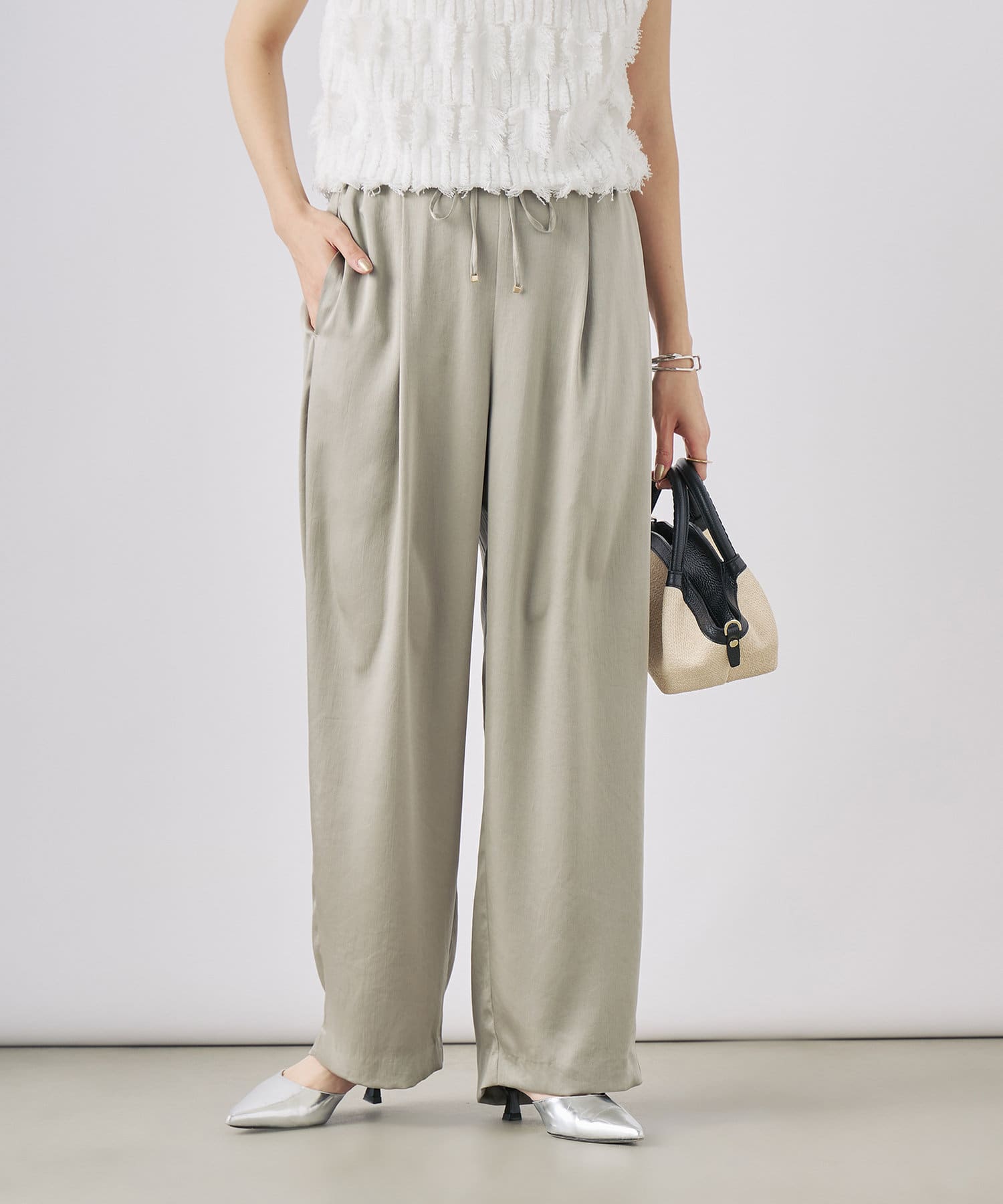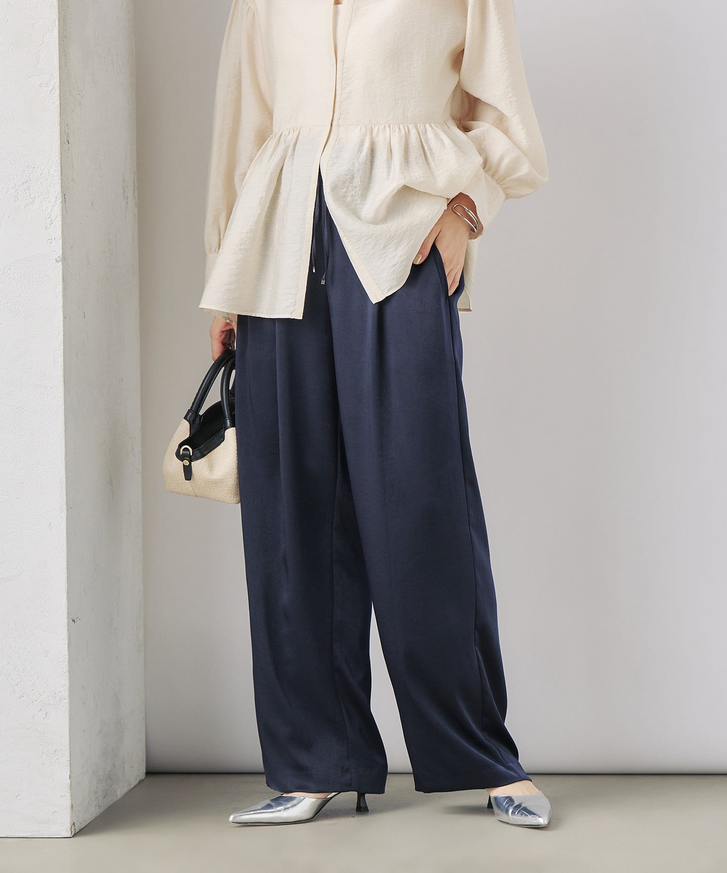 ・特殊縦シワ加工されたヴィンテージサテンを使用したセミワイドシルエットパンツ