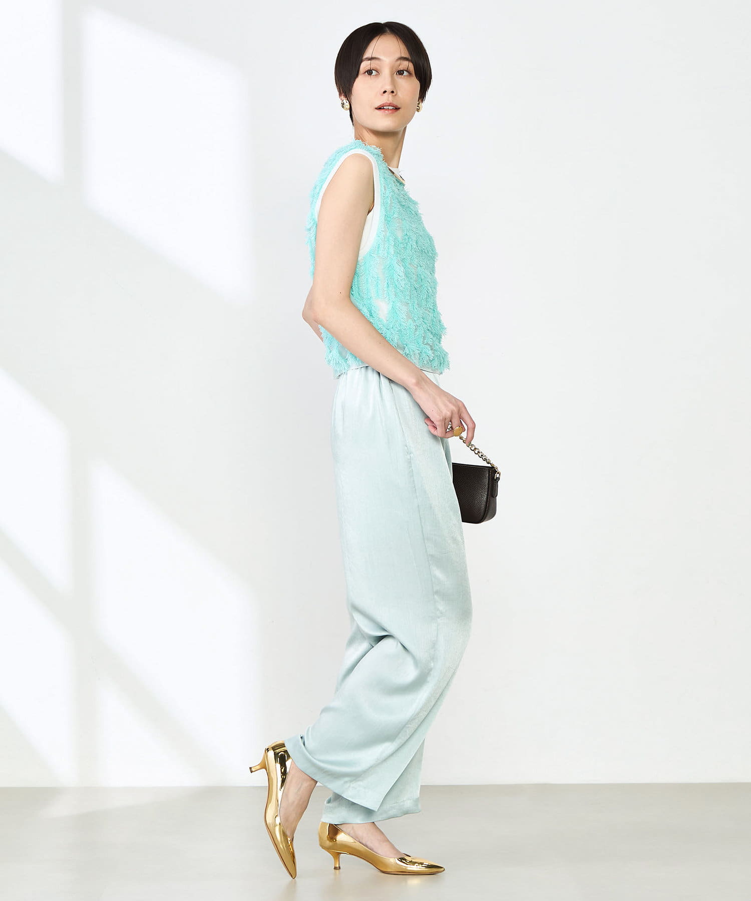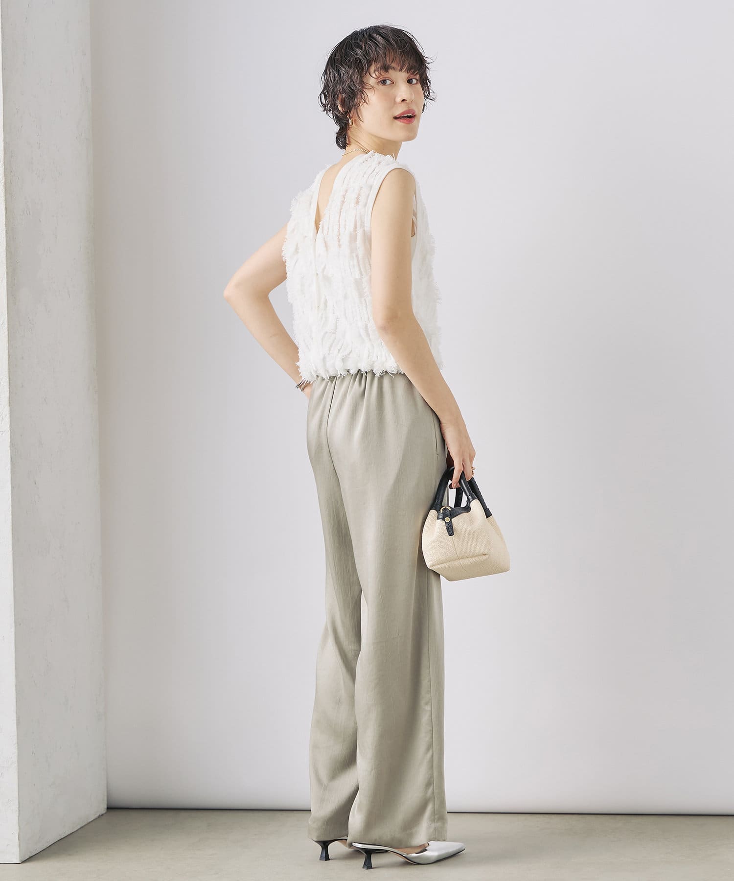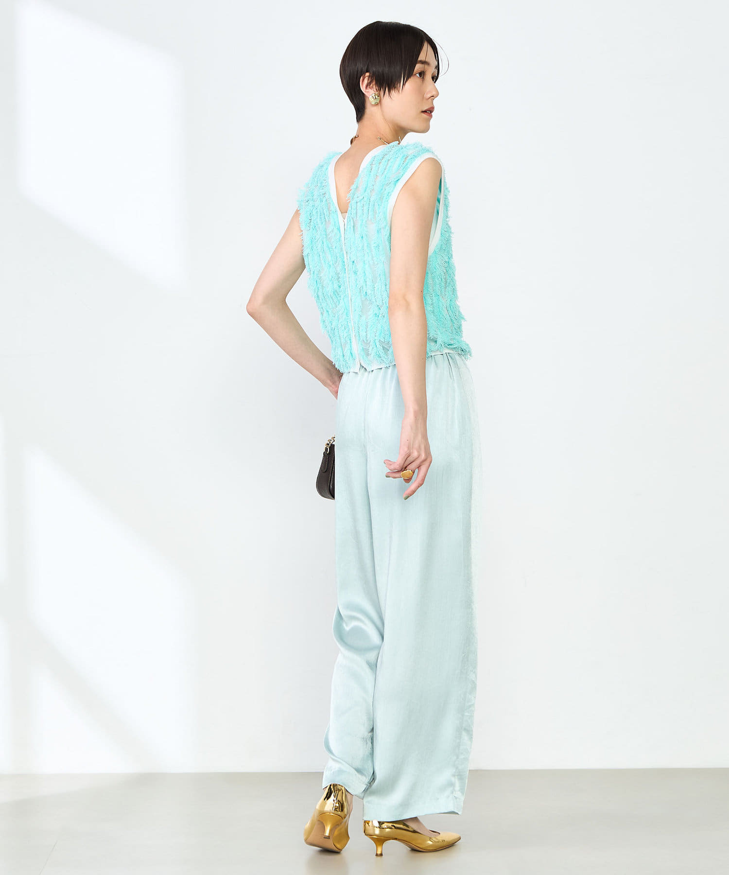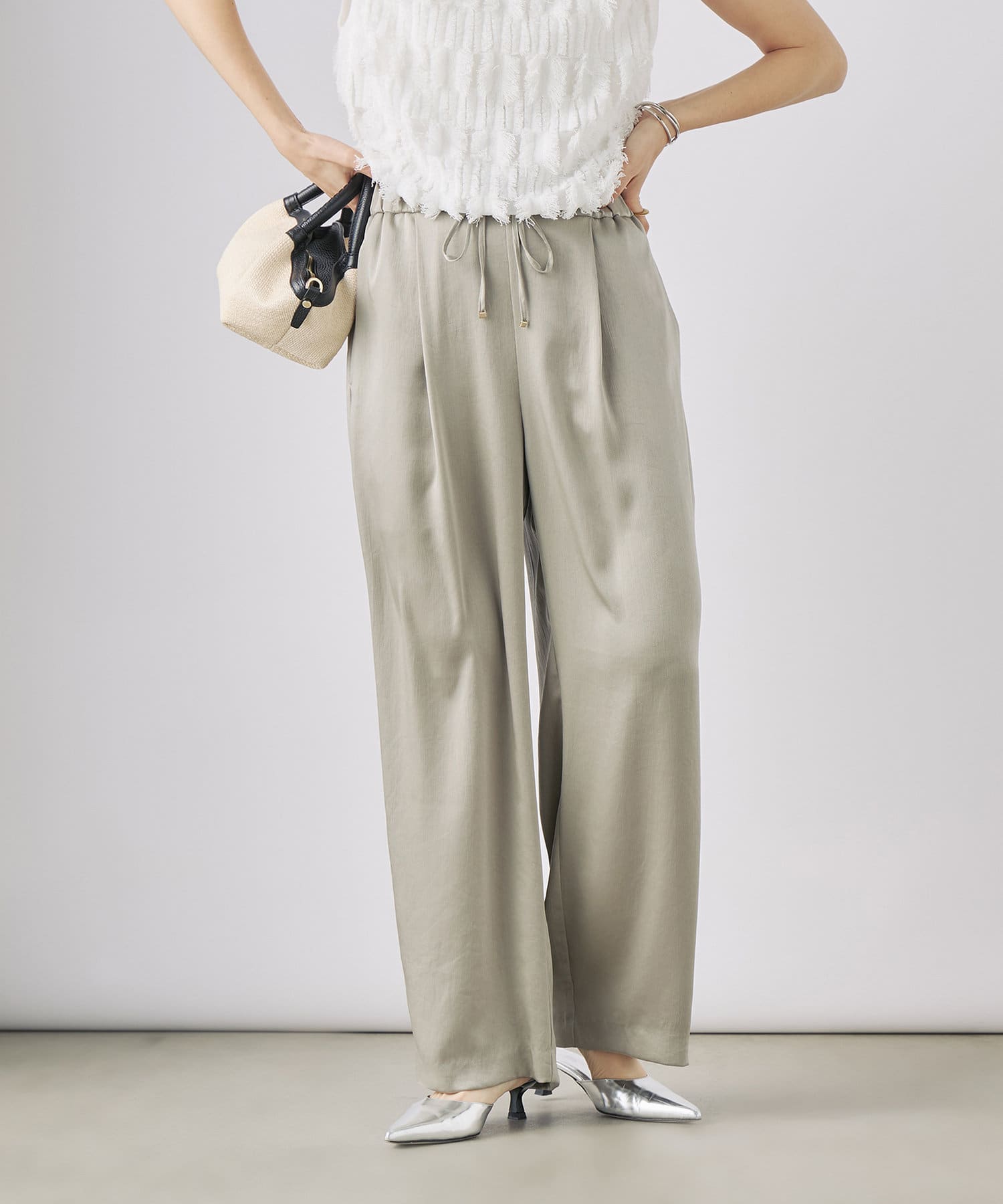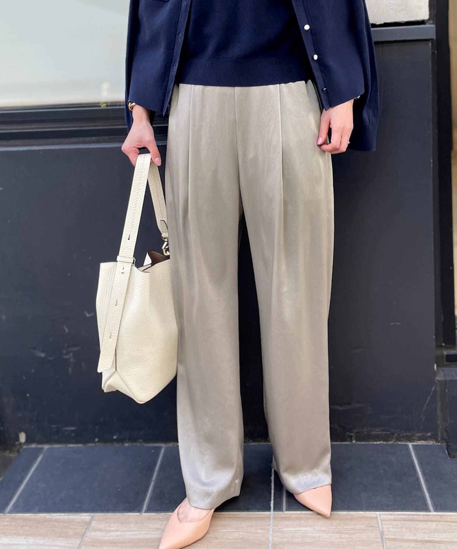 ・特殊縦シワ加工されたヴィンテージサテンを使用したセミワイドシルエットパンツ