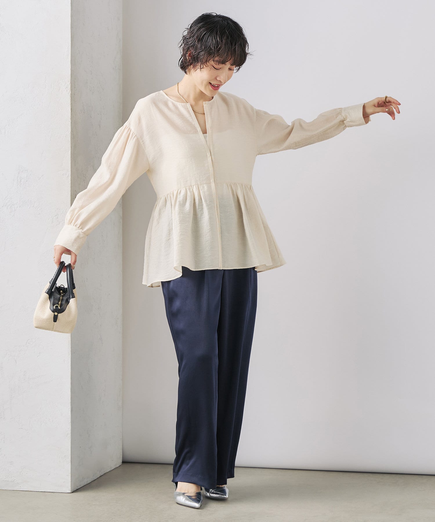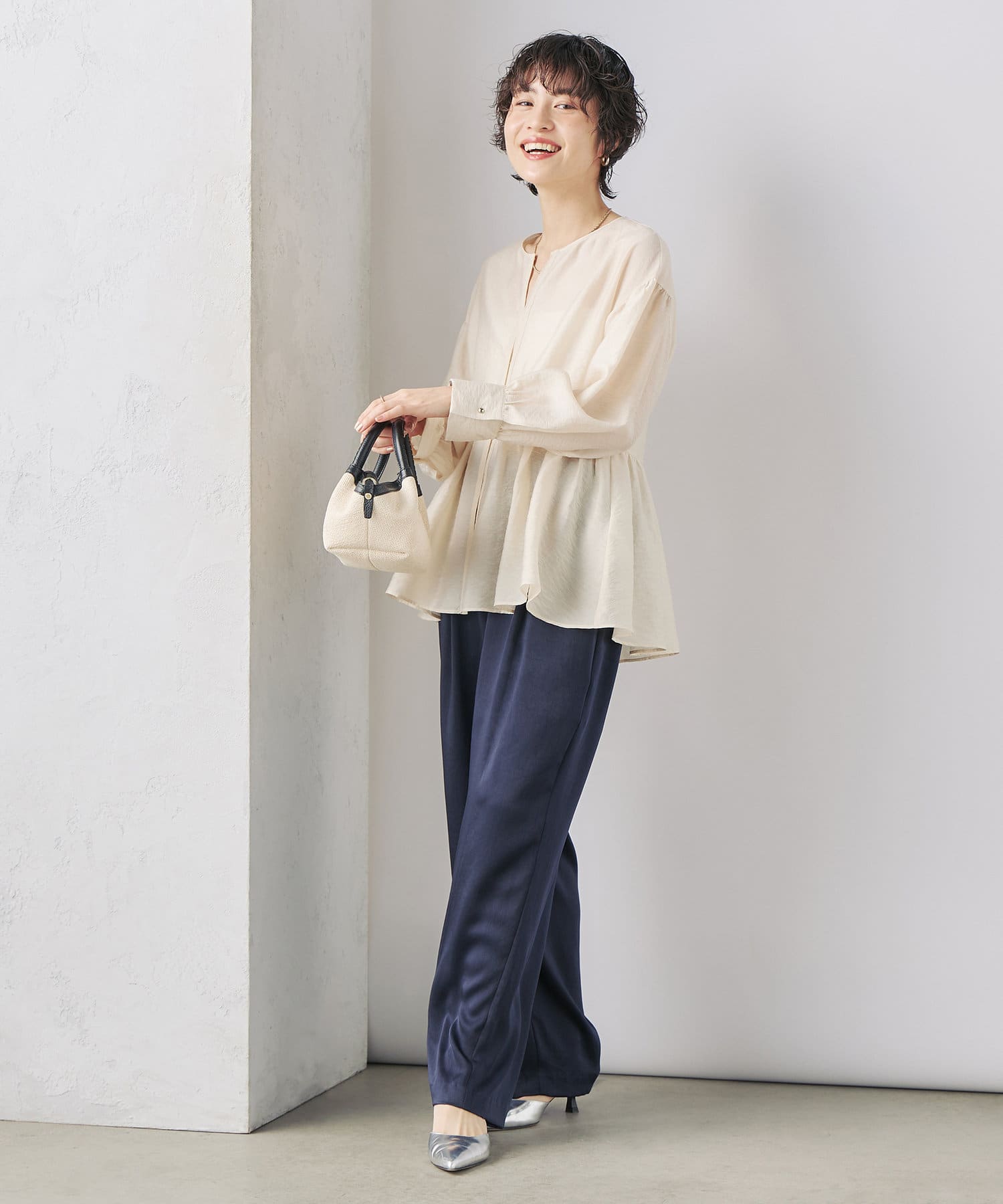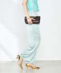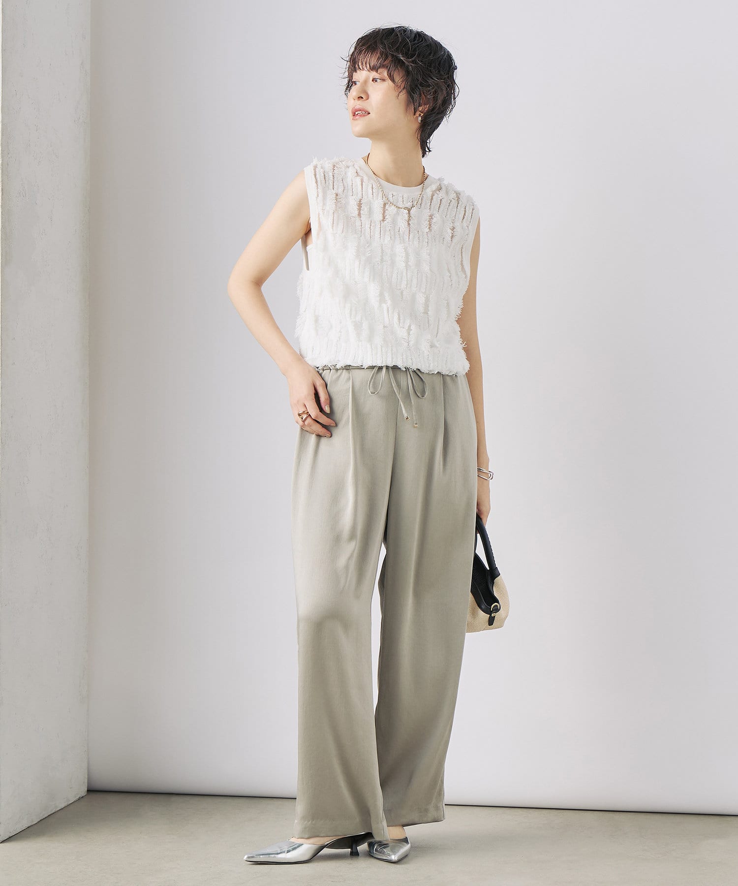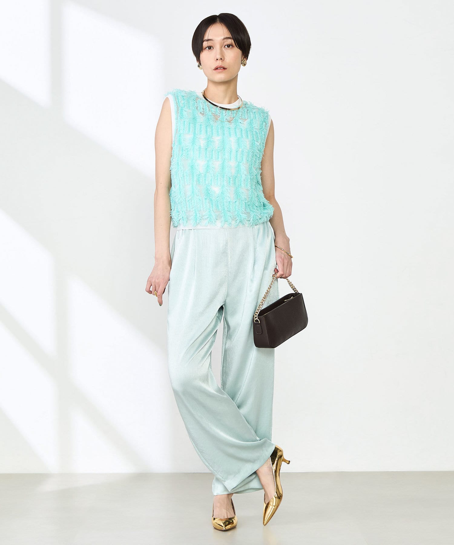 ・特殊縦シワ加工されたヴィンテージサテンを使用したセミワイドシルエットパンツ