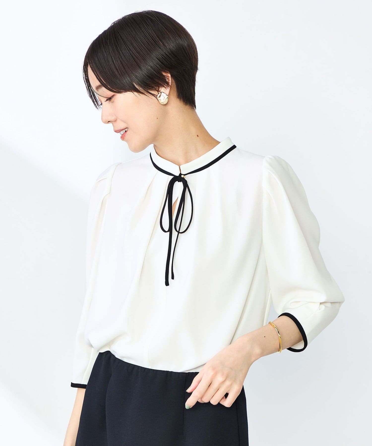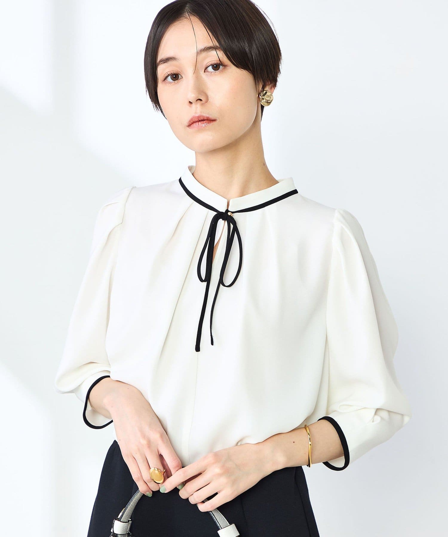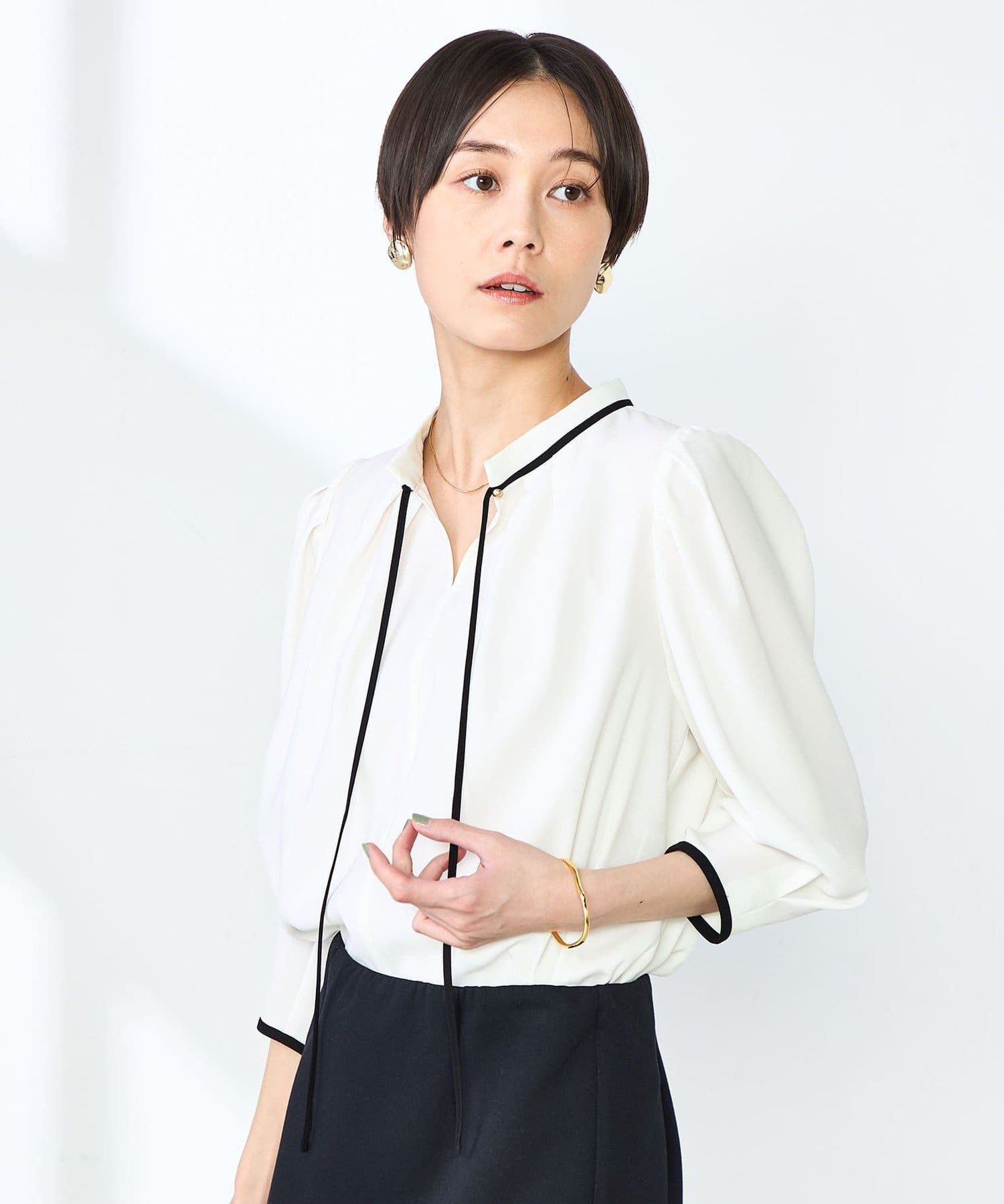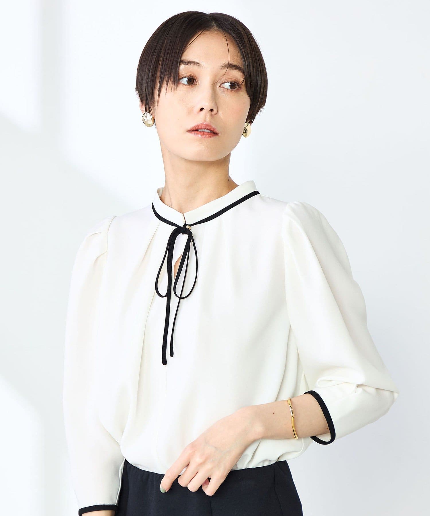 ・定番人気のきちんと感と上品さのあるリボン付きブラウス